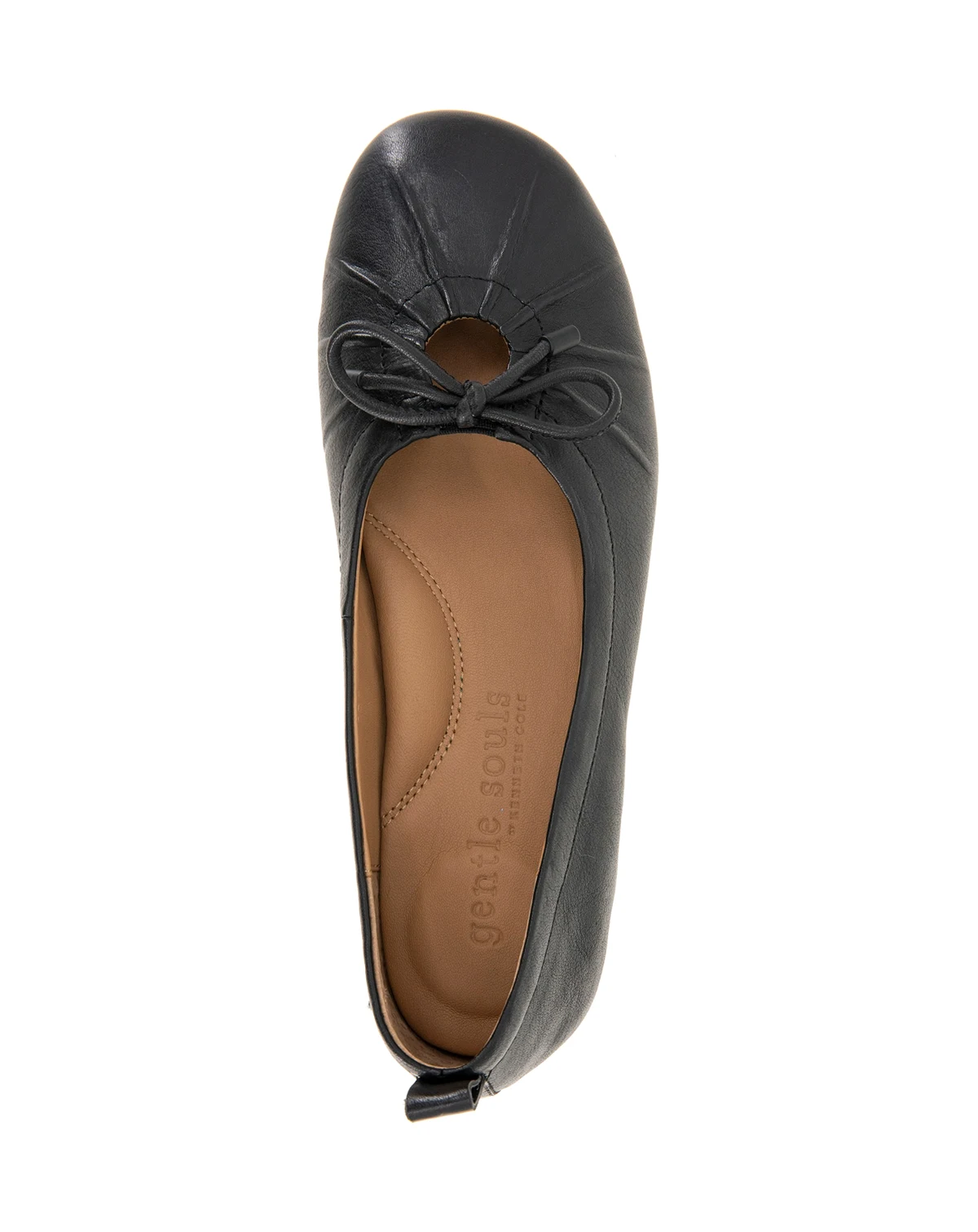 Subtle pleats and bows accent square toes adding updated dimension to a timeless classic in the Gentle Souls Marilyn ballet flats.