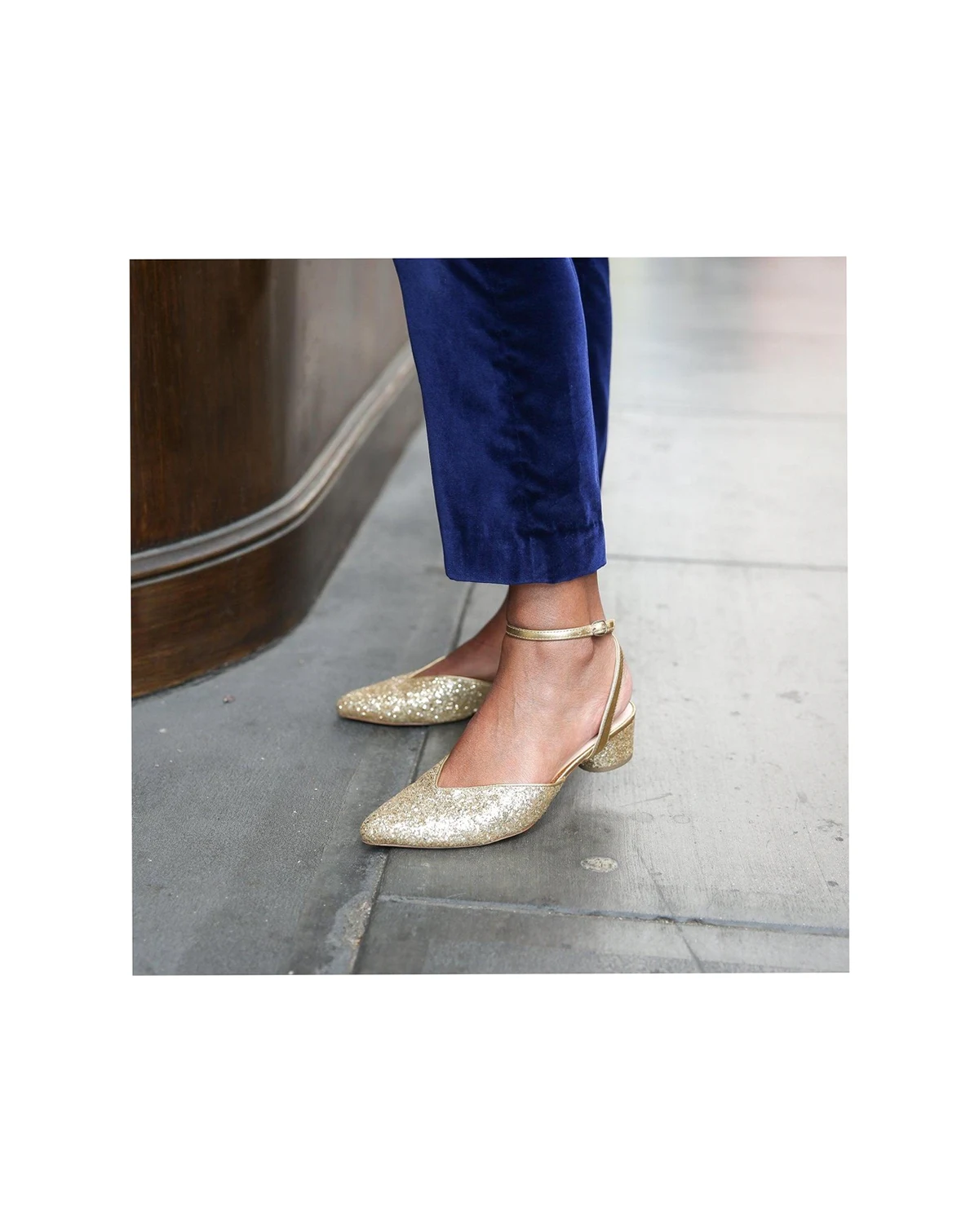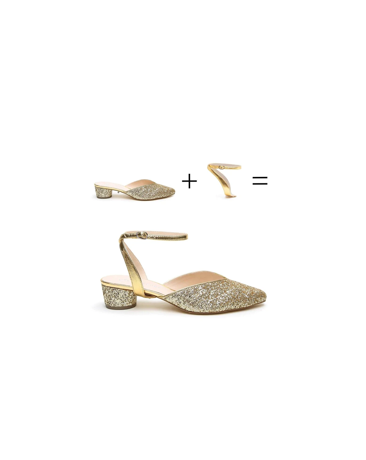 Whether it's a dinner party or an extravaganza hosted by Jay Gatsby, these glittering gold slides are the most comfortable party shoes. Customize these shoes by removing the detachable Marilyn strap for any other Alterre strap (sold separately).