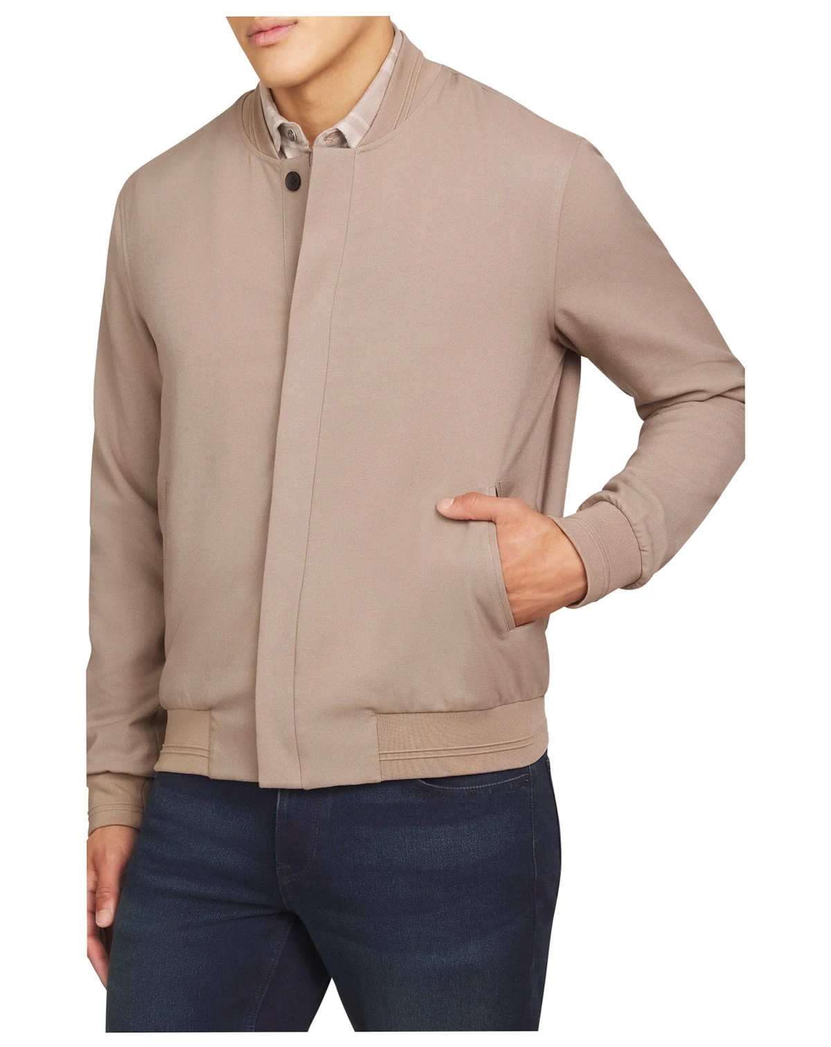 The DKNY Men's Cooper Bomber Jacket is crafted with Micro Twill suiting fabric for a polished effect, while its sleek hidden button front and ribbed cuffs help add warmth and style. This jacket creates an elevated, yet relaxed look that's perfect for many occasions from office to sporting events to dinner.
