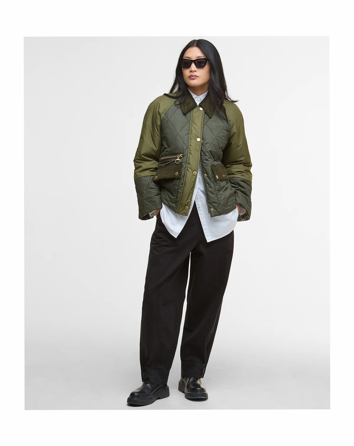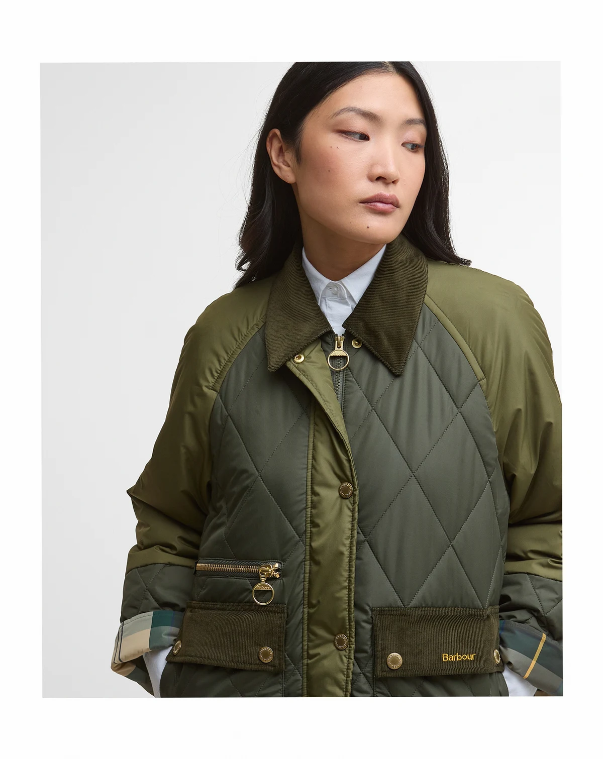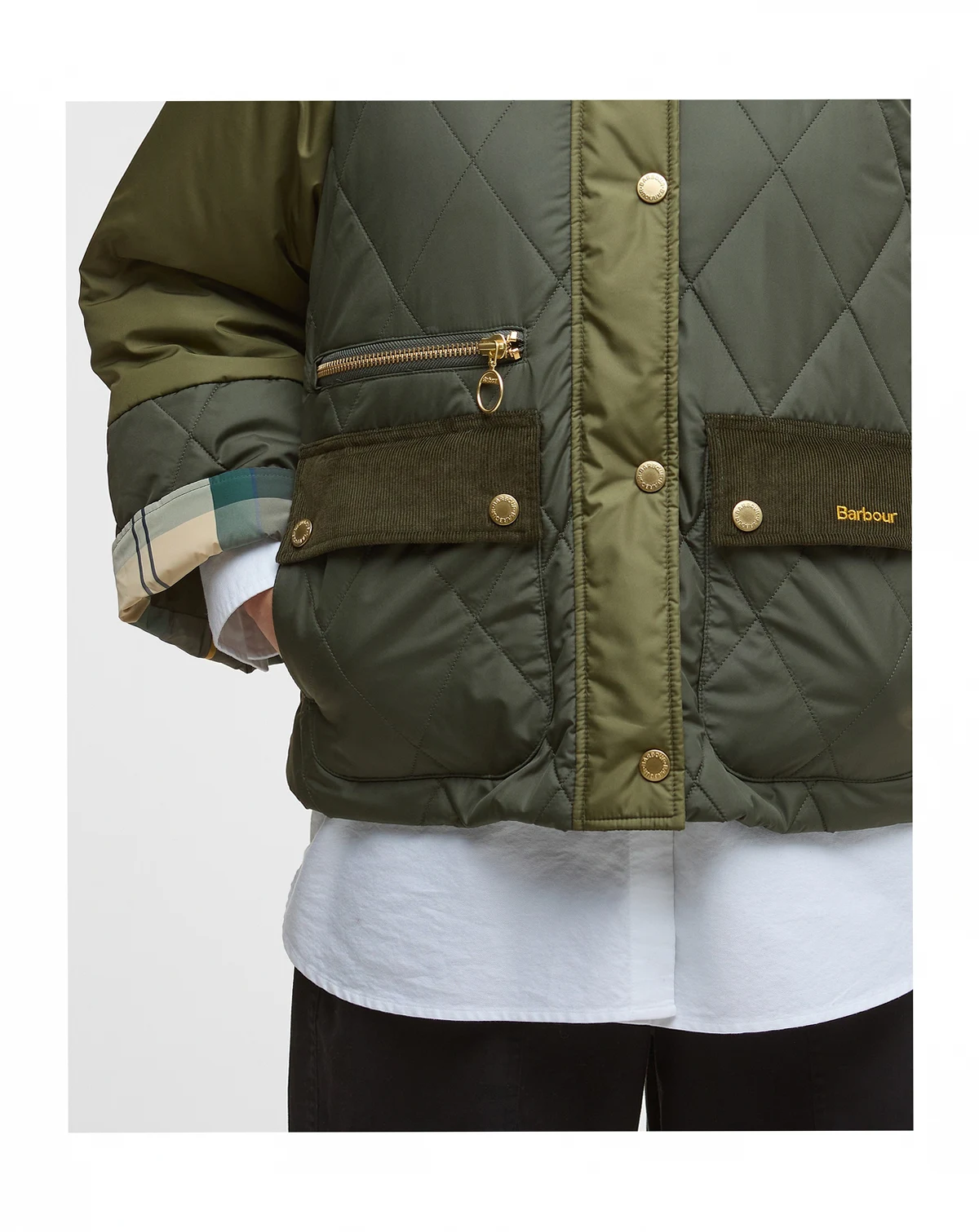 Classic corduroy detail highlights the collar and pockets on this beautifully quilted jacket from Barbour.