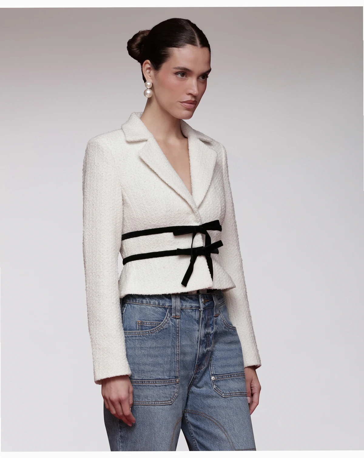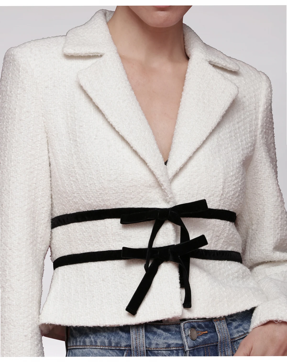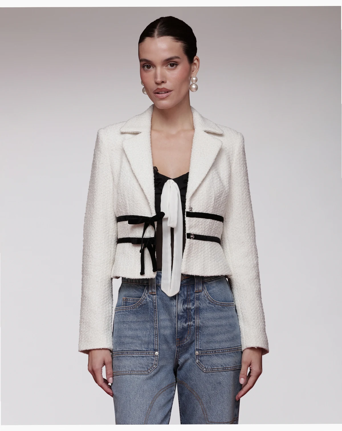 Adorned with delicate bow accents, this lady jacket from Avec Les Filles blends a tailored fit with charming details. A notch lapel collar and long sleeves offer a refined look suitable for various occasions.