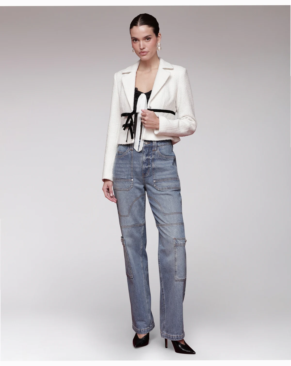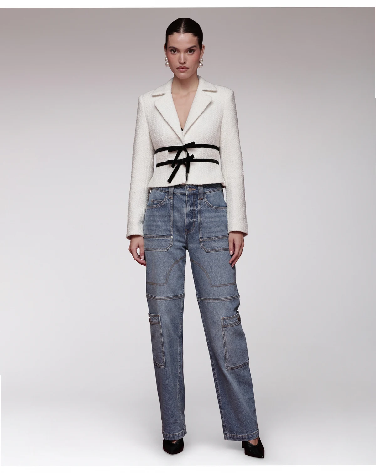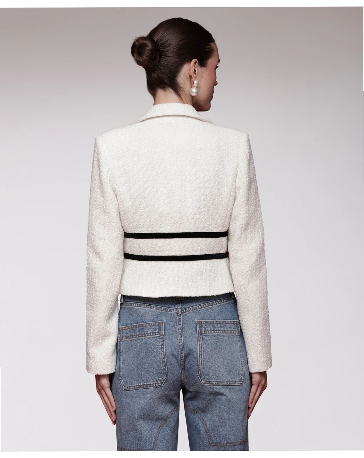 Adorned with delicate bow accents, this lady jacket from Avec Les Filles blends a tailored fit with charming details. A notch lapel collar and long sleeves offer a refined look suitable for various occasions.