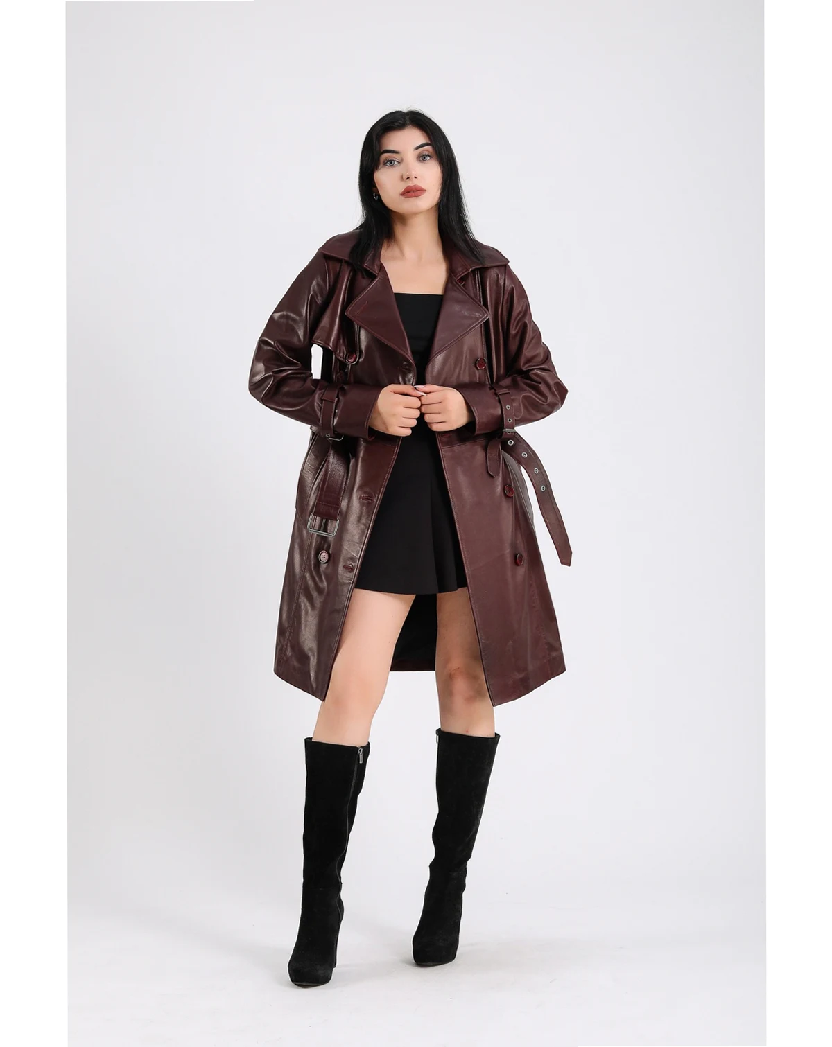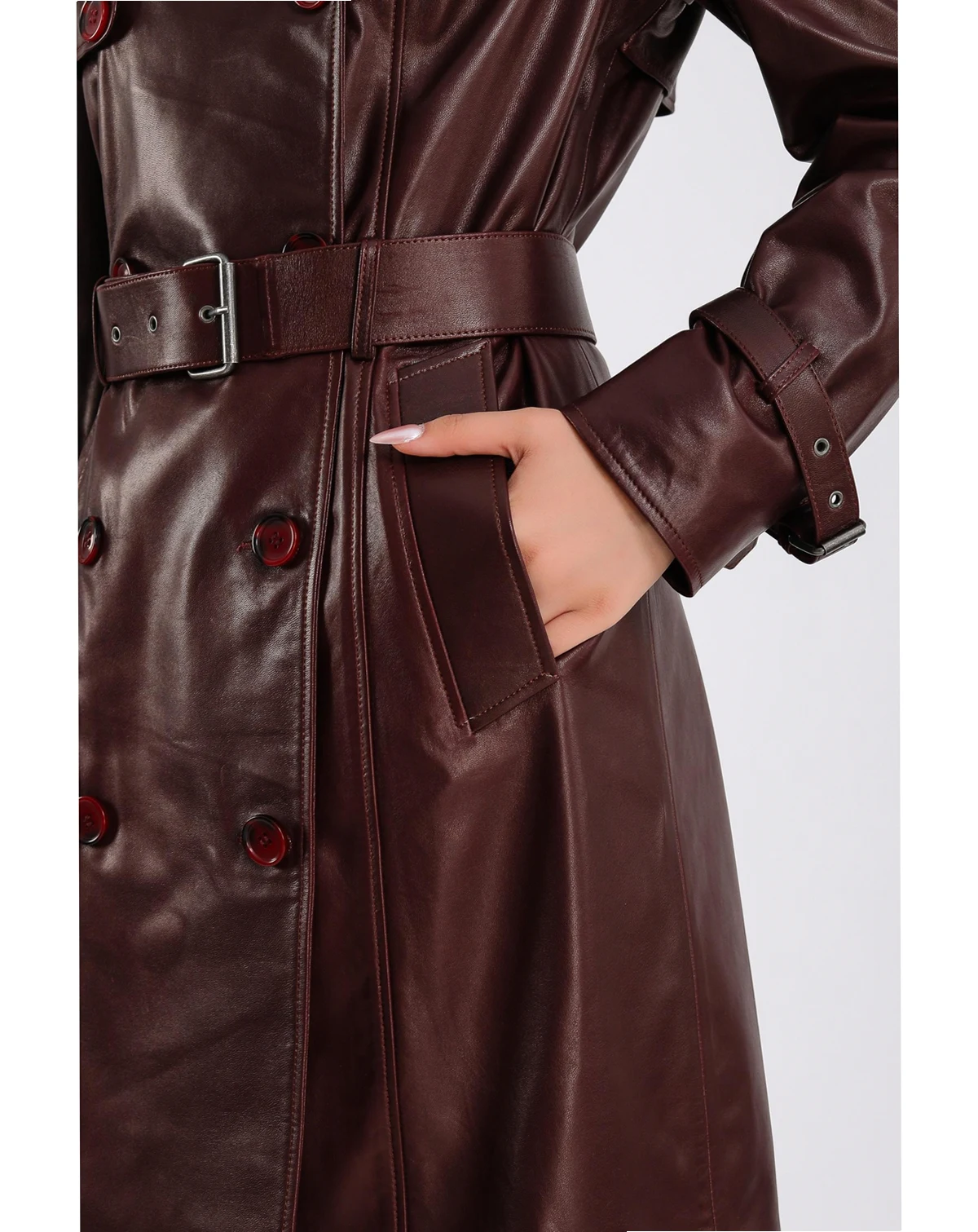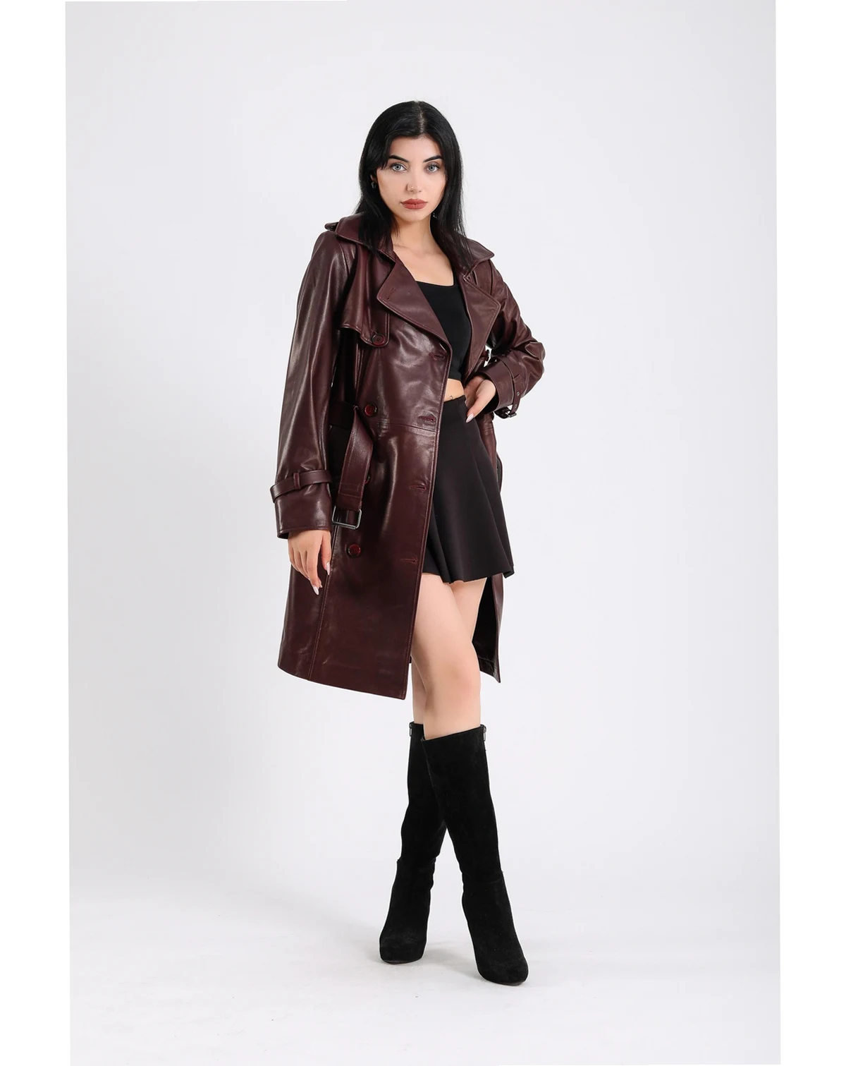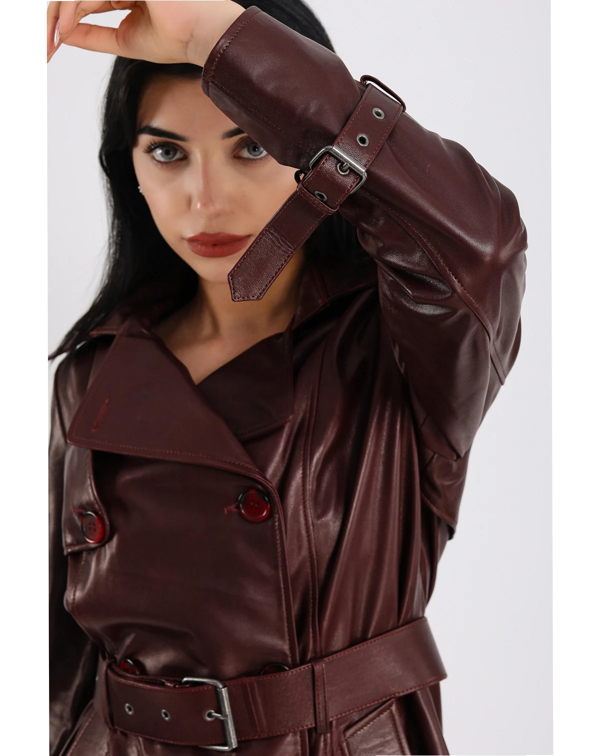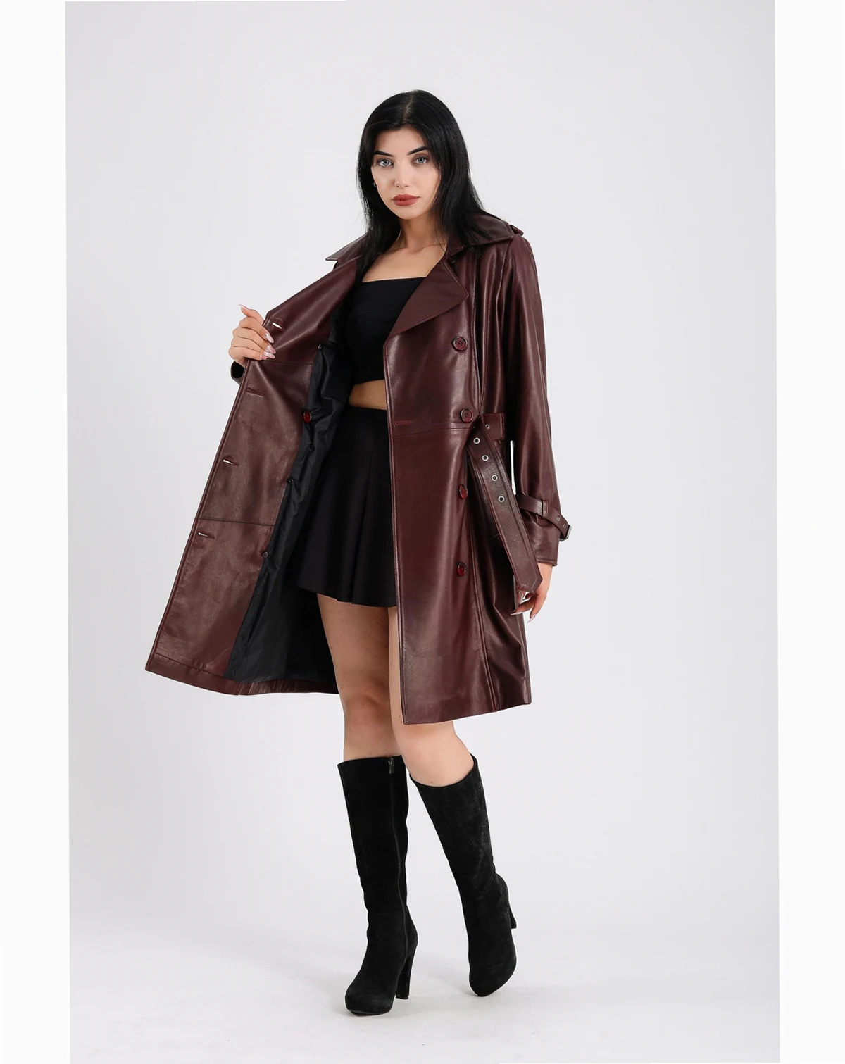 Indulge in the luxury of 100% British Sheepskin Leather with this exquisitely handcrafted trench coat. Designed for both style and comfort, the deep burgundy outer layer offers an unmatched feel. Elevate your wardrobe with this timeless piece.