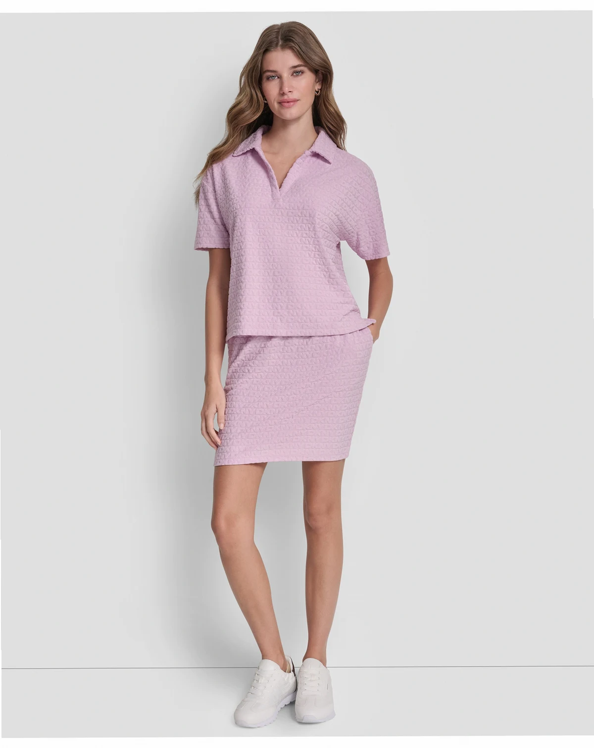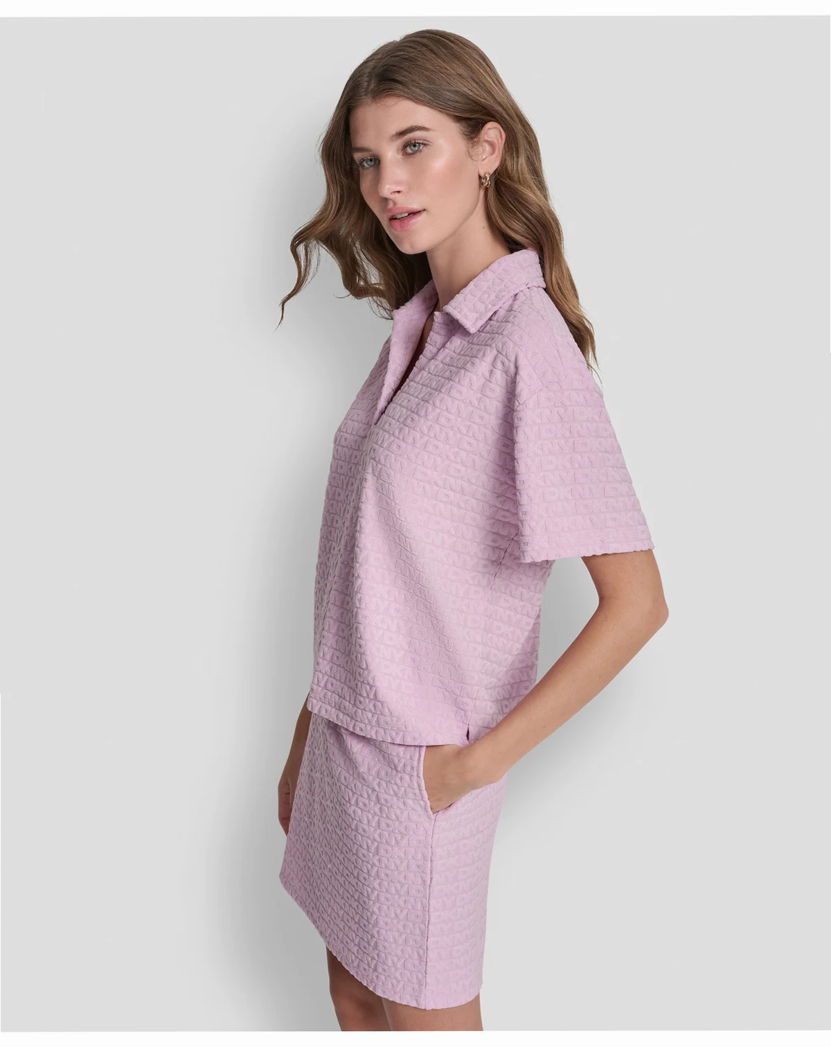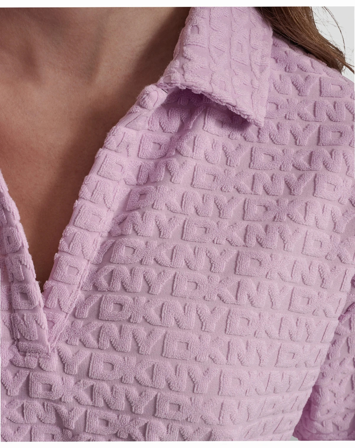 Embrace a laid-back, sporty look with this DKNY Jeans T-shirt, styled in a boxy polo silhouette. short-sleeves and an open placket add to its cool, casual appeal.