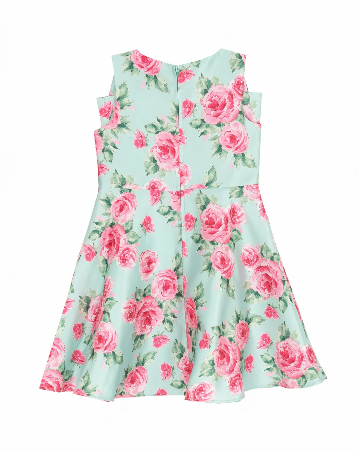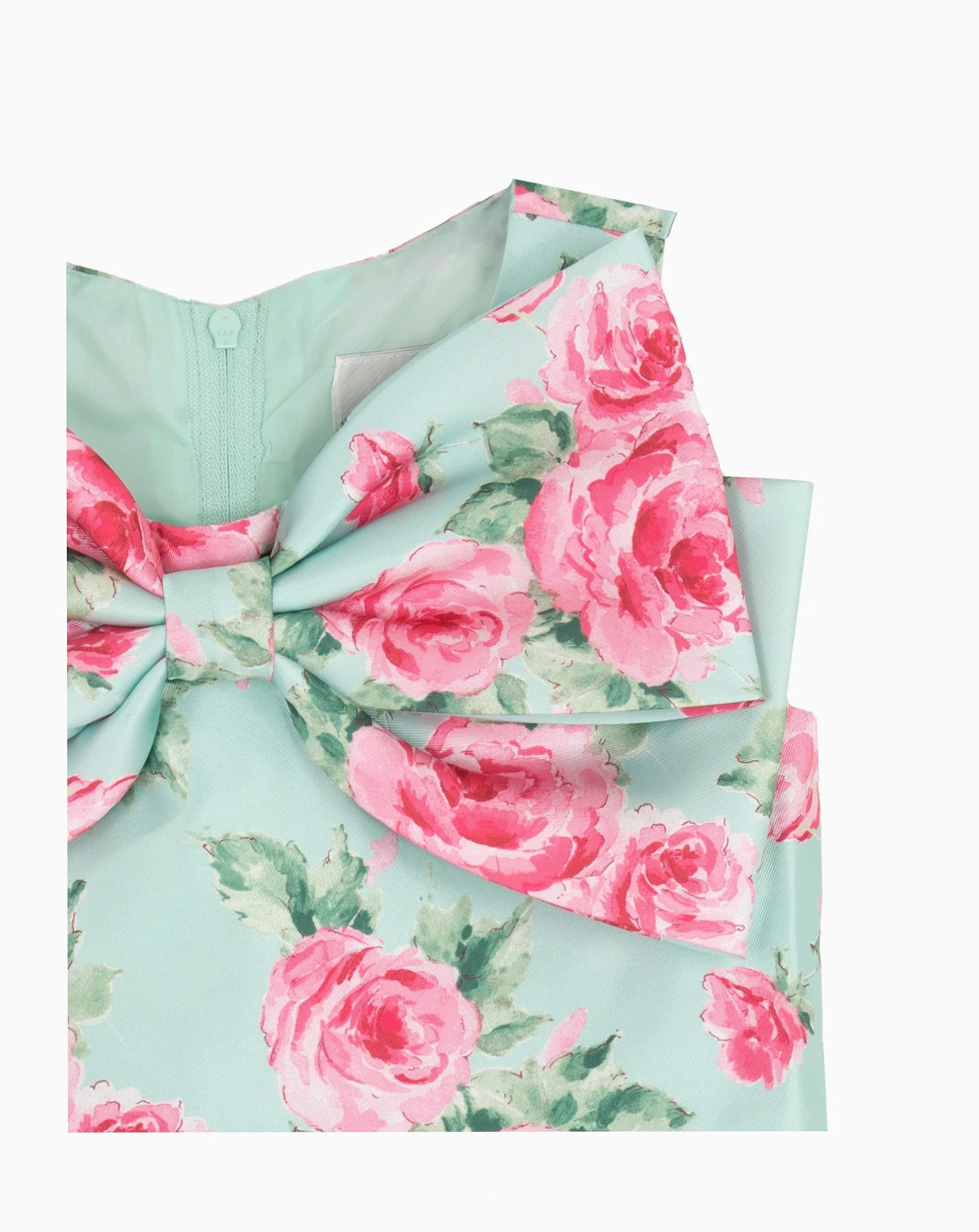 Girls' 2T-6X Printed Mikado Round Neck Bow Dress