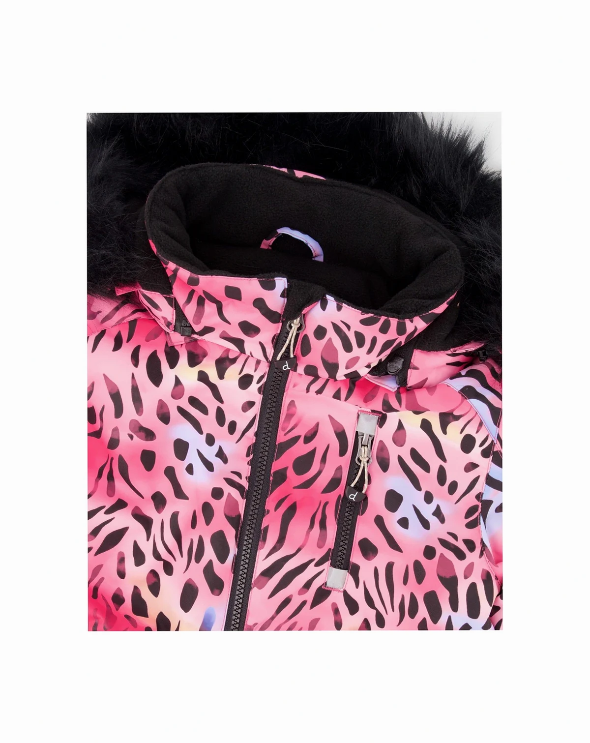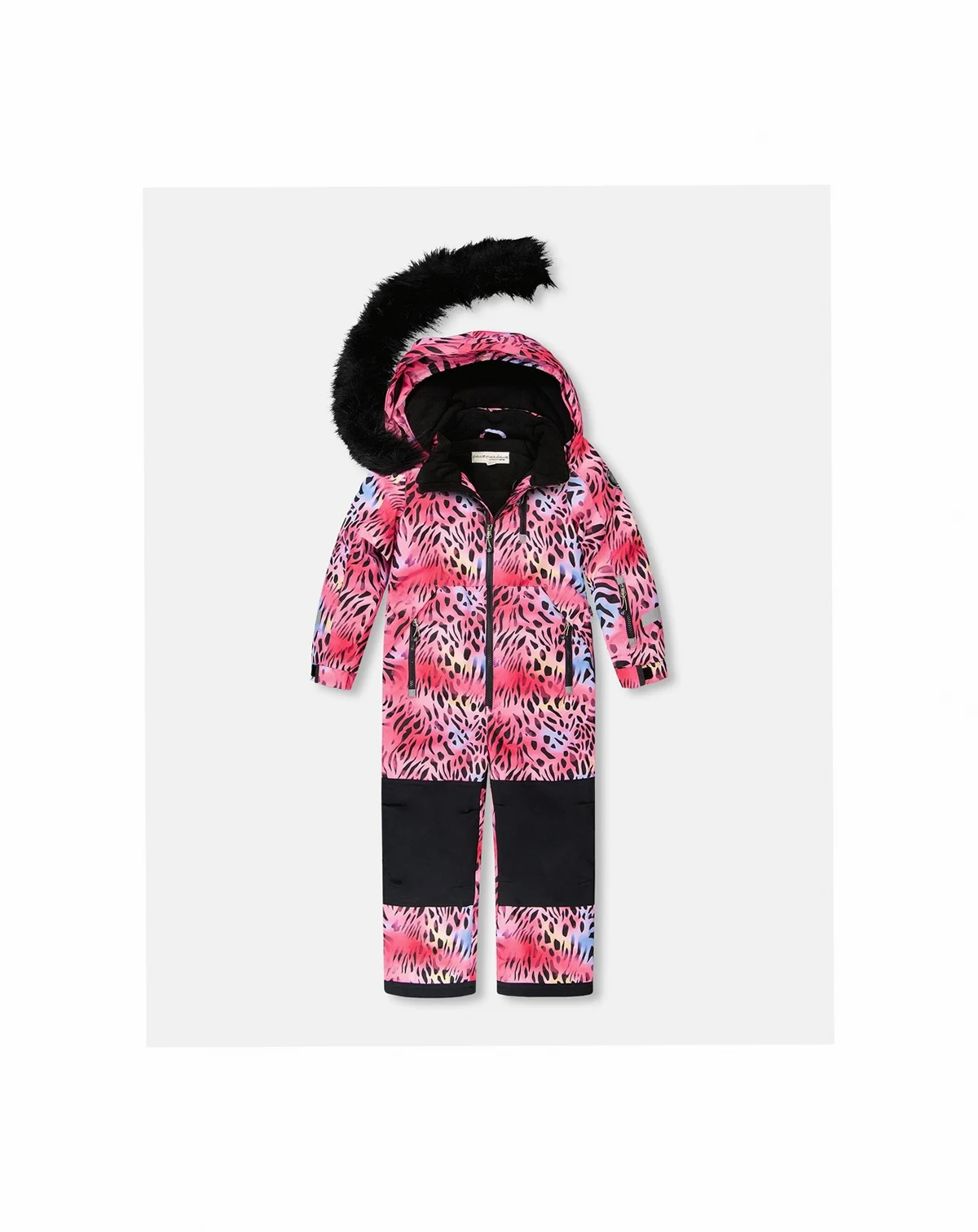 Every moment on the mountain is warmer and drier with our one-piece PLAY ski suit in multicolor leopard and zebra. Designed for maximum comfort and improved performance, this snowsuit features articulated knees and sleeves, adjustable hems and sleeves to accommodate growing kids, a detachable hood, and Cordura-reinforced panels for long-lasting durability. Elastic cuffs, snow guards, a wind flap, and a chin guard keep the elements out, while a waterproof coating and dirt-repellent finish keep little skiers and snowboarders clean and dry.