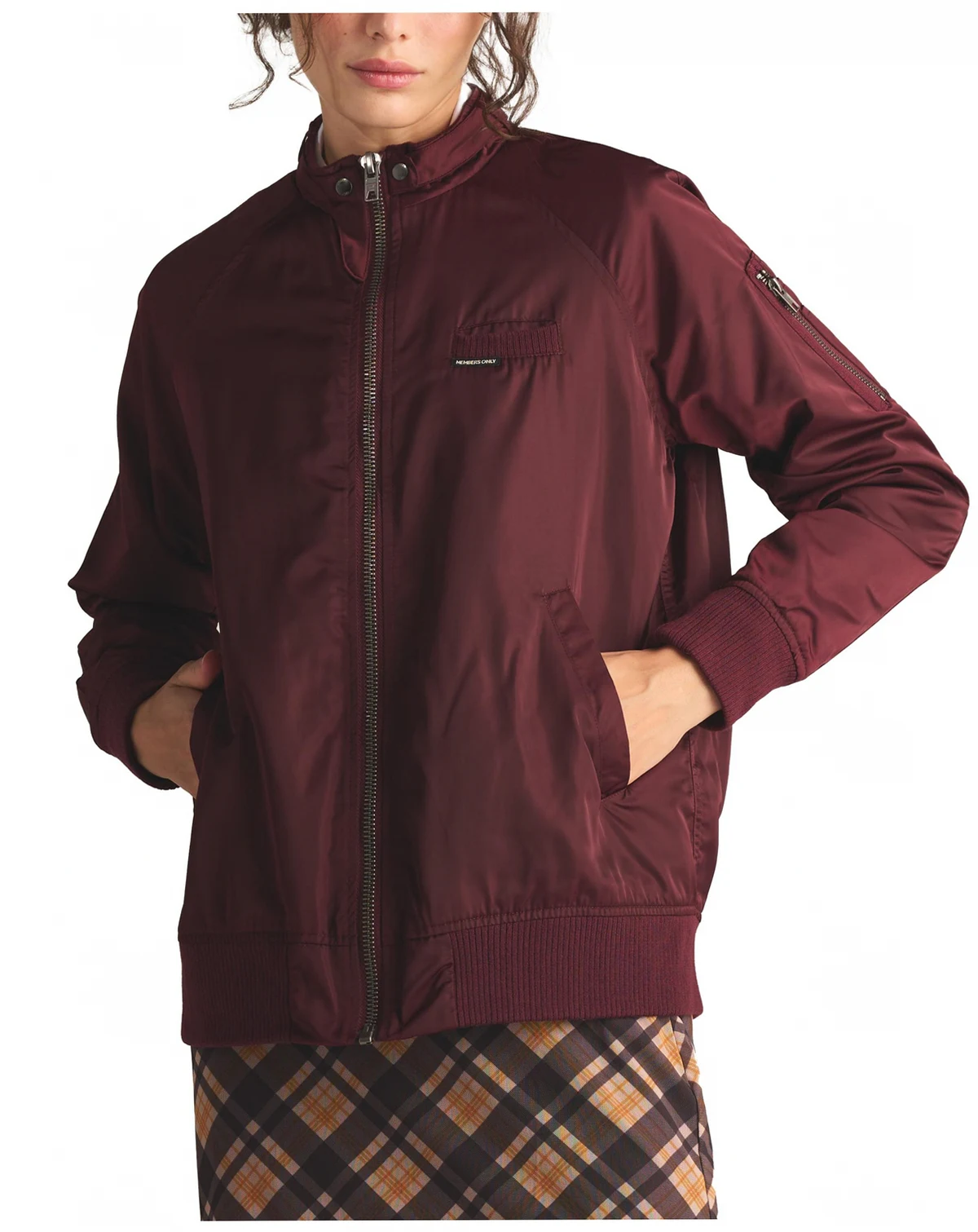 No look is complete without the perfect bomber jacket, and this one will instantly steal your heart. Designed by Members Only, it combines timeless style with modern details to create a must-have wardrobe staple. Crafted from premium satin fabric, it delivers a sleek, lightweight feel that pairs effortlessly with any outfit.