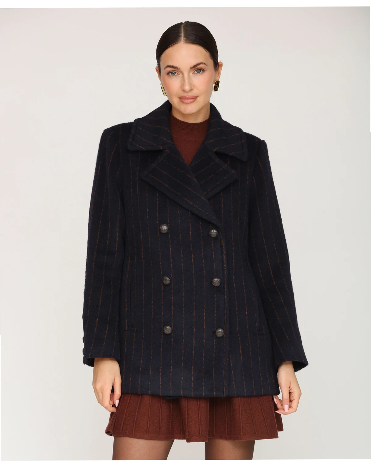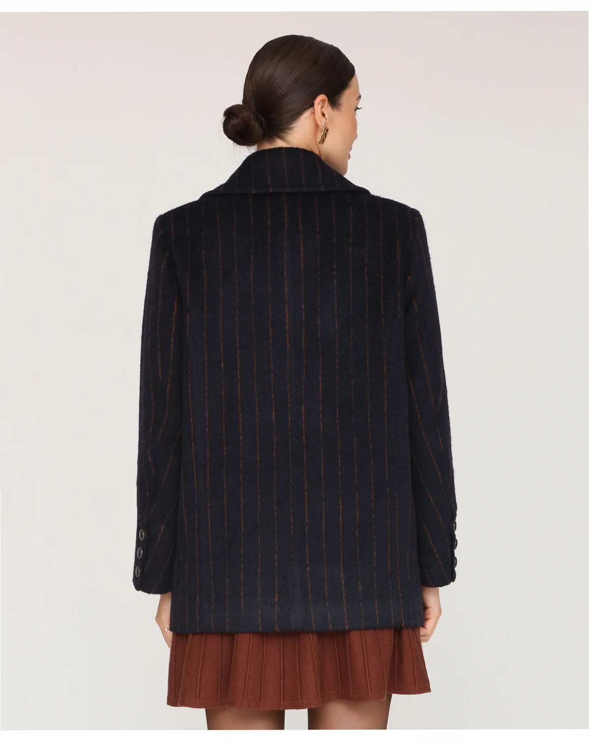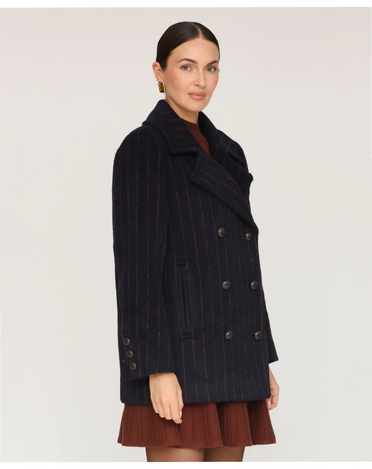 Add a touch of elegance with this Avec Les Filles short pinstripe coat, crafted with a classic notch collar and smooth full lining for a polished finish. Double breasted buttons add practicality, while two functional pockets keep essentials close without compromising style.