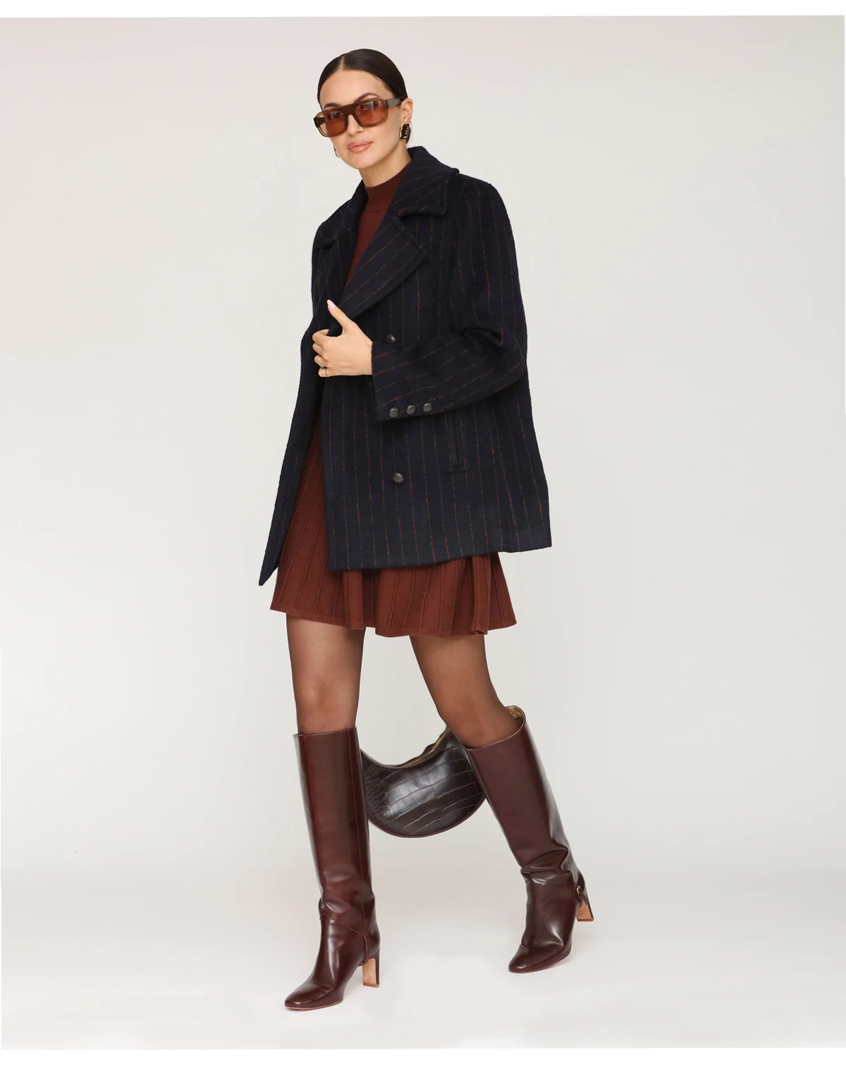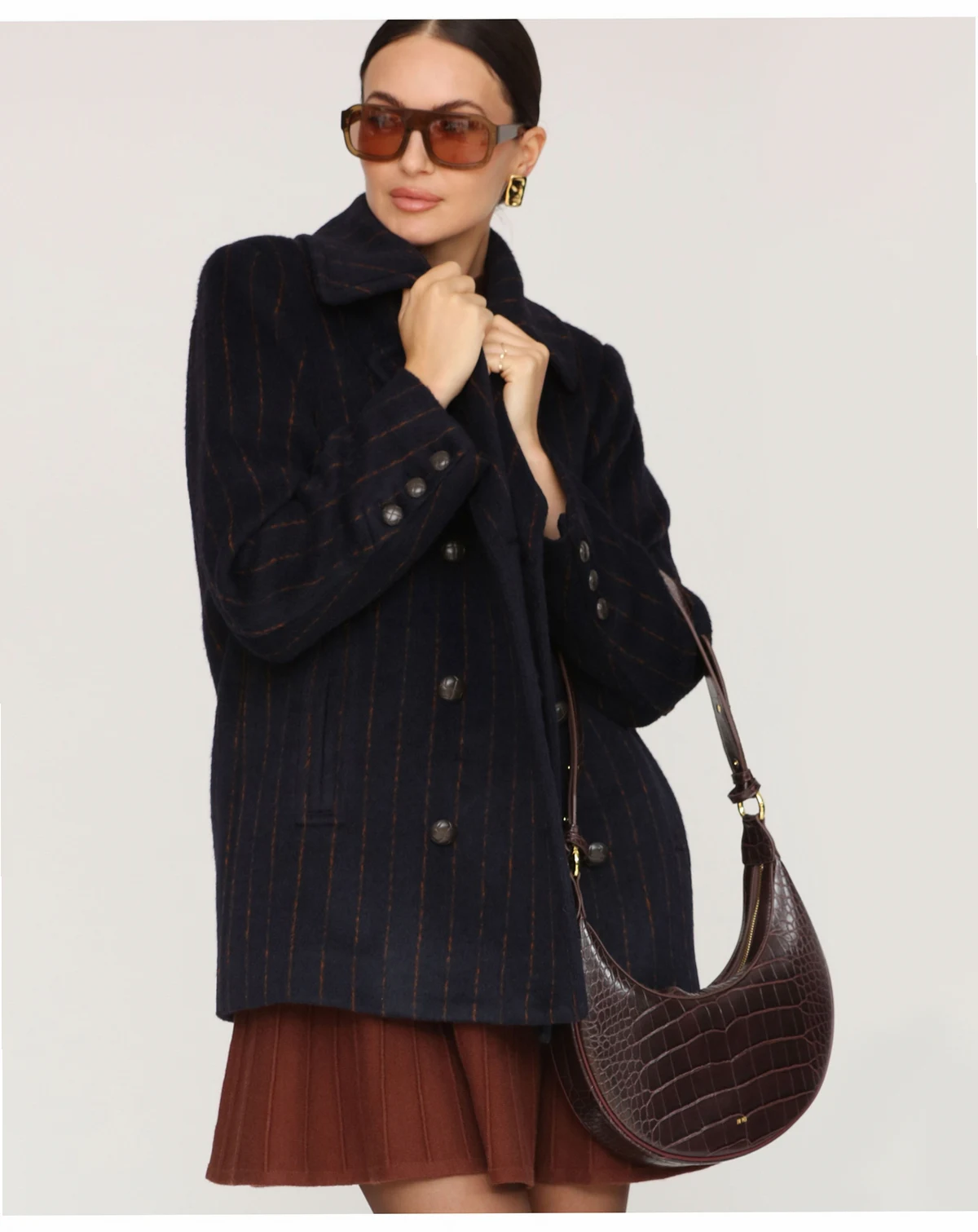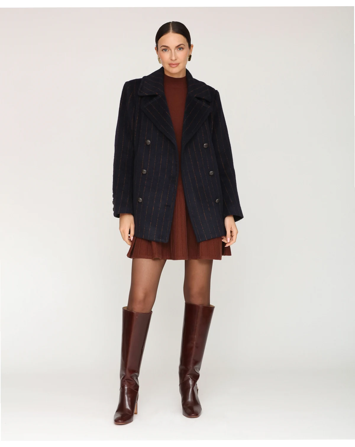 Add a touch of elegance with this Avec Les Filles short pinstripe coat, crafted with a classic notch collar and smooth full lining for a polished finish. Double breasted buttons add practicality, while two functional pockets keep essentials close without compromising style.
