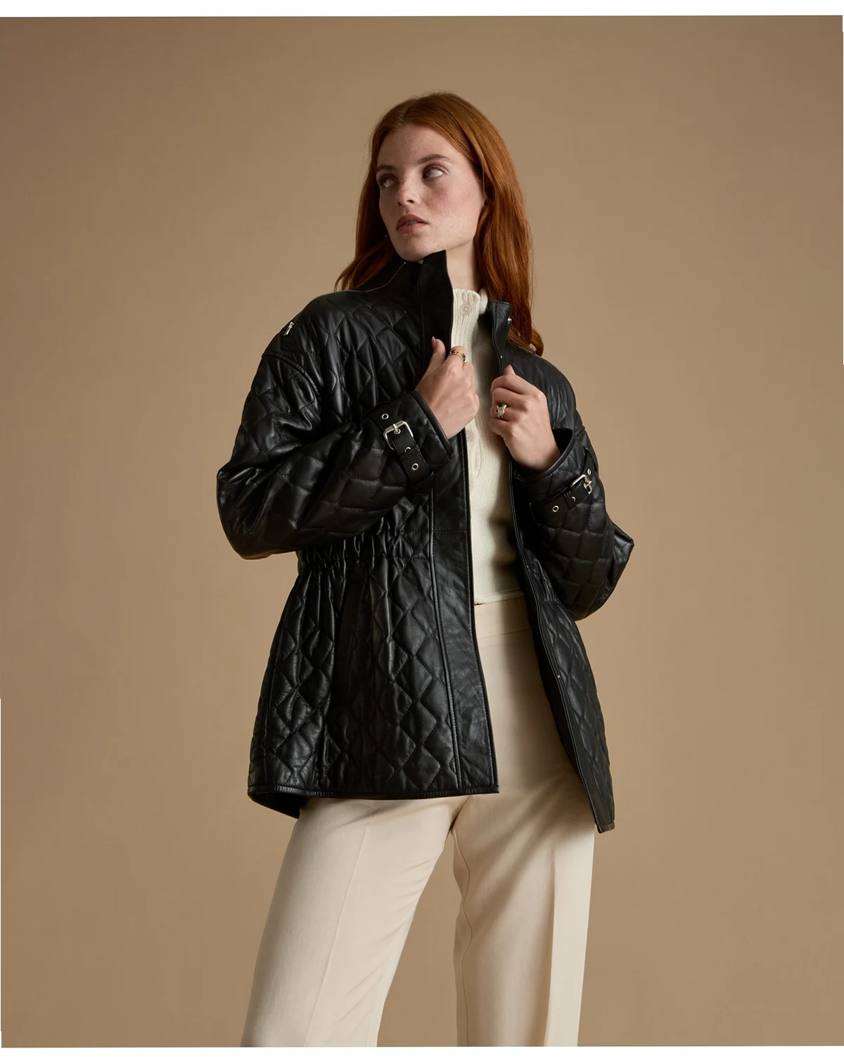 A sleek everyday essential, this women's black quilted jacket combines lightweight warmth with modern edge. Featuring a diamond-quilted finish, adjustable waist detailing and buckle-cuff accents, it delivers a flattering silhouette without compromising comfort. Perfect for layering, it brings effortless style to any look.