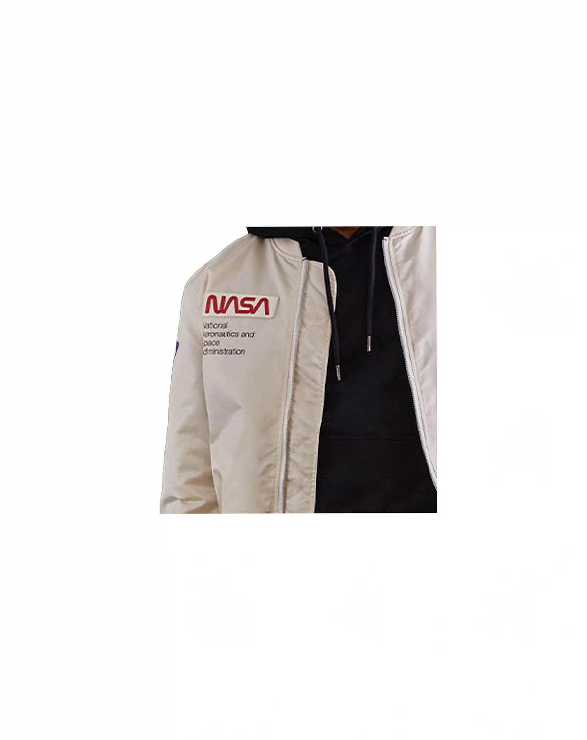 Show off your intergalactic style with this lightweight version of our popular NASA flight jacket, complete with NASA and American flag patches. It s water resistant and comes in two space-inspired colors, replica blue and off white, for that authentic astronaut look. A flight jacket with NASA logo patches.