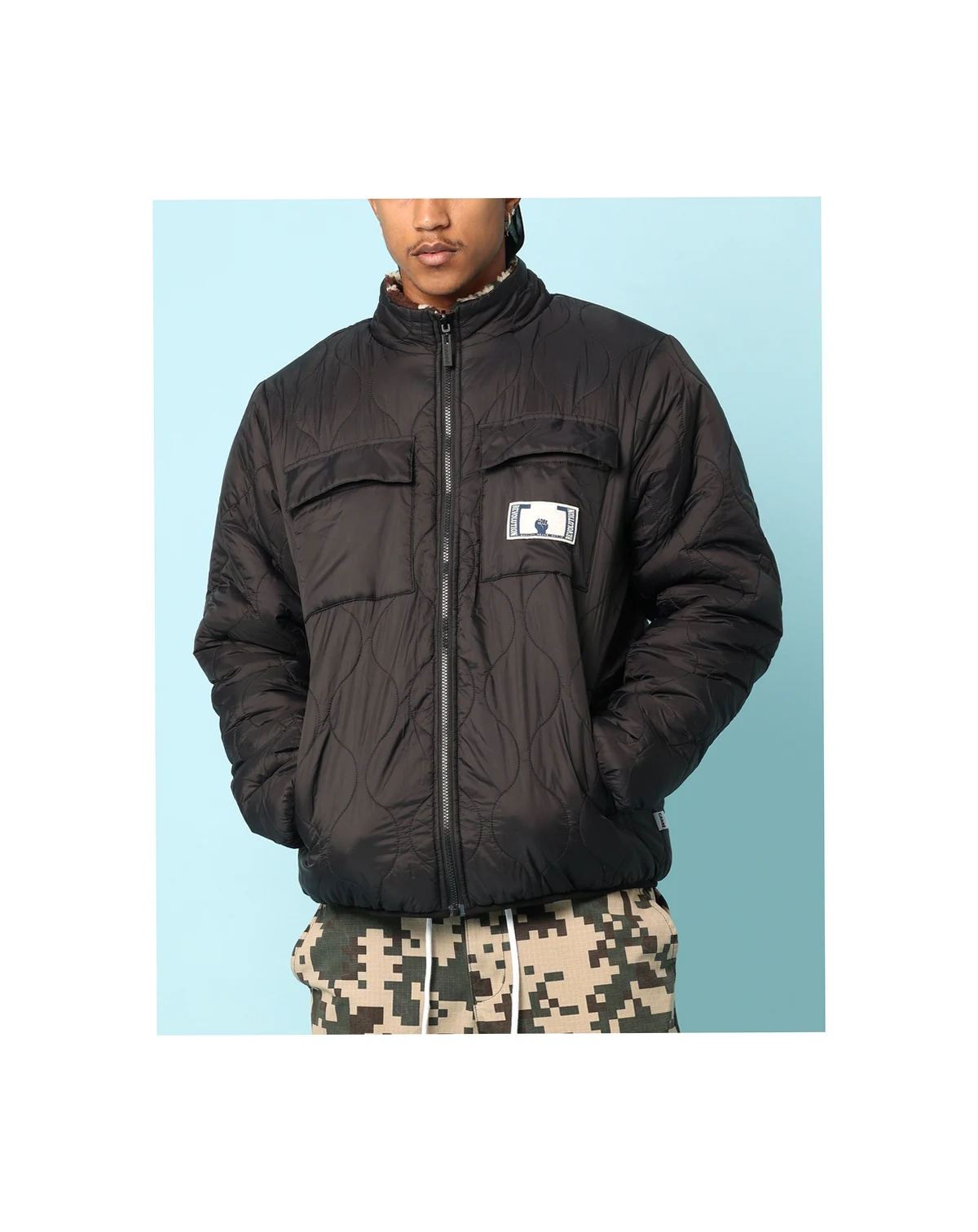Get two looks in one that you'll love with the Digi Sherpa Reversible Jacket. The incredibly cozy faux sherpa side features an all over print with dual front pockets for all your daily essentials, whilst the quilted side is decked out in pockets for all your essentials.