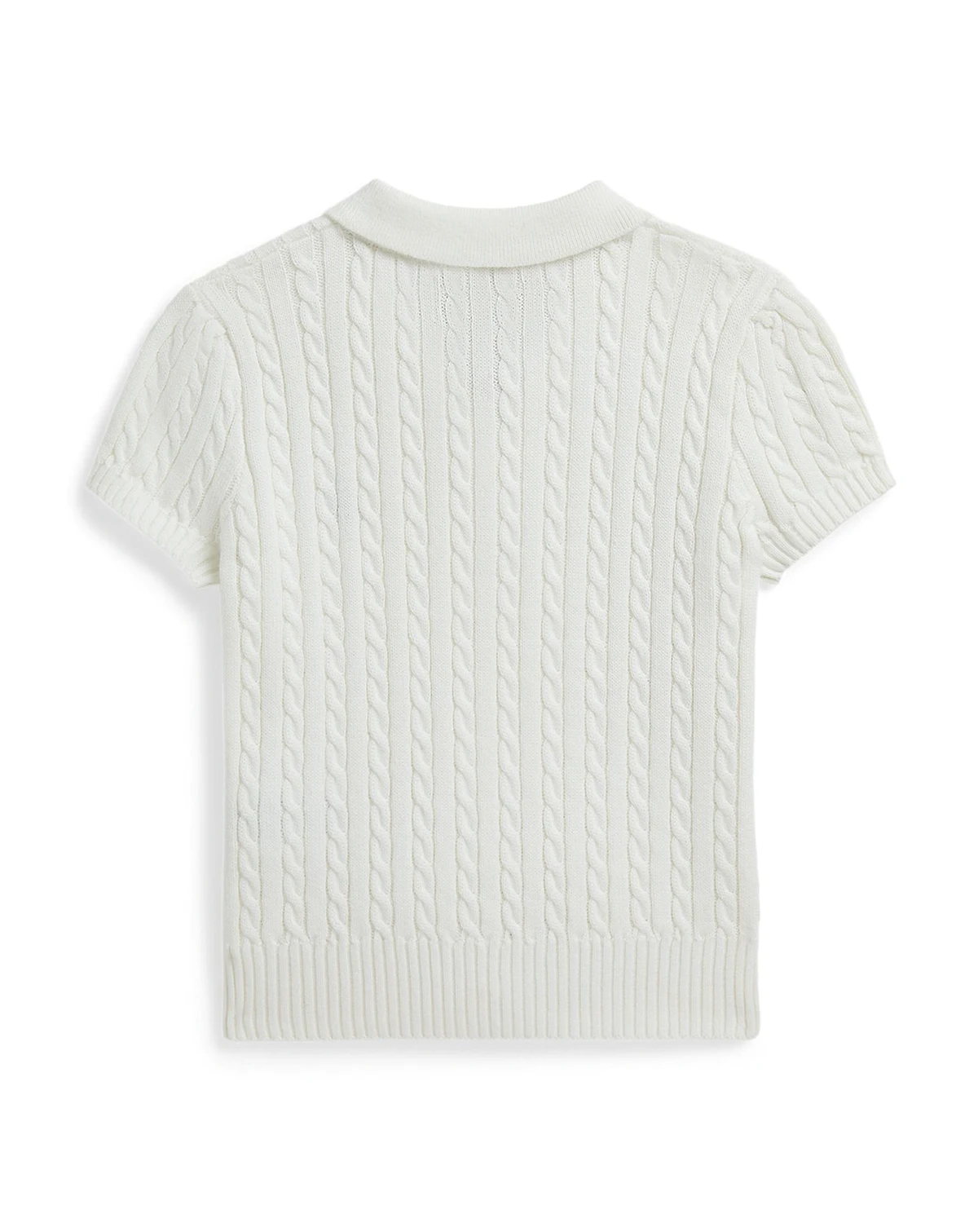 Blend classic Polo style with cozy texture in this Polo Ralph Lauren sweater, crafted from medium-weight combed cotton in a mini cable-knit pattern. The rib-knit Polo collar and two-button placket define the shape, while puffed short sleeves with rib-knit armbands add charming, structured detail.