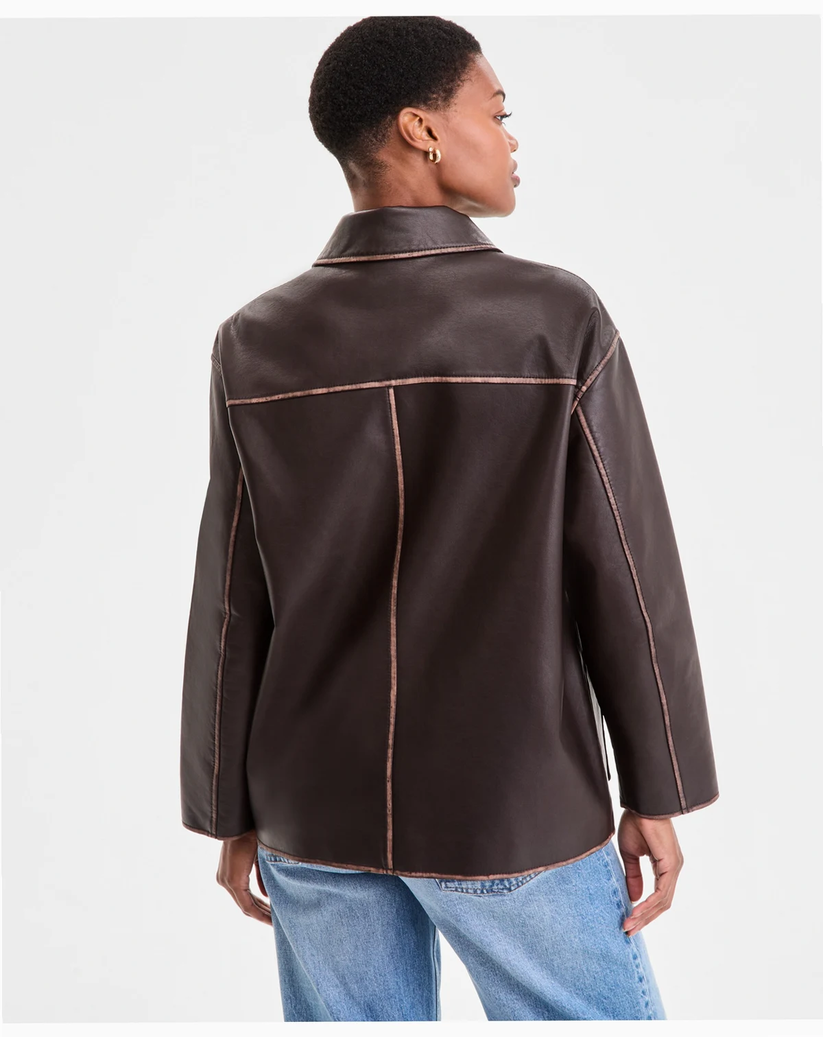 exposed-seam single-breasted coat