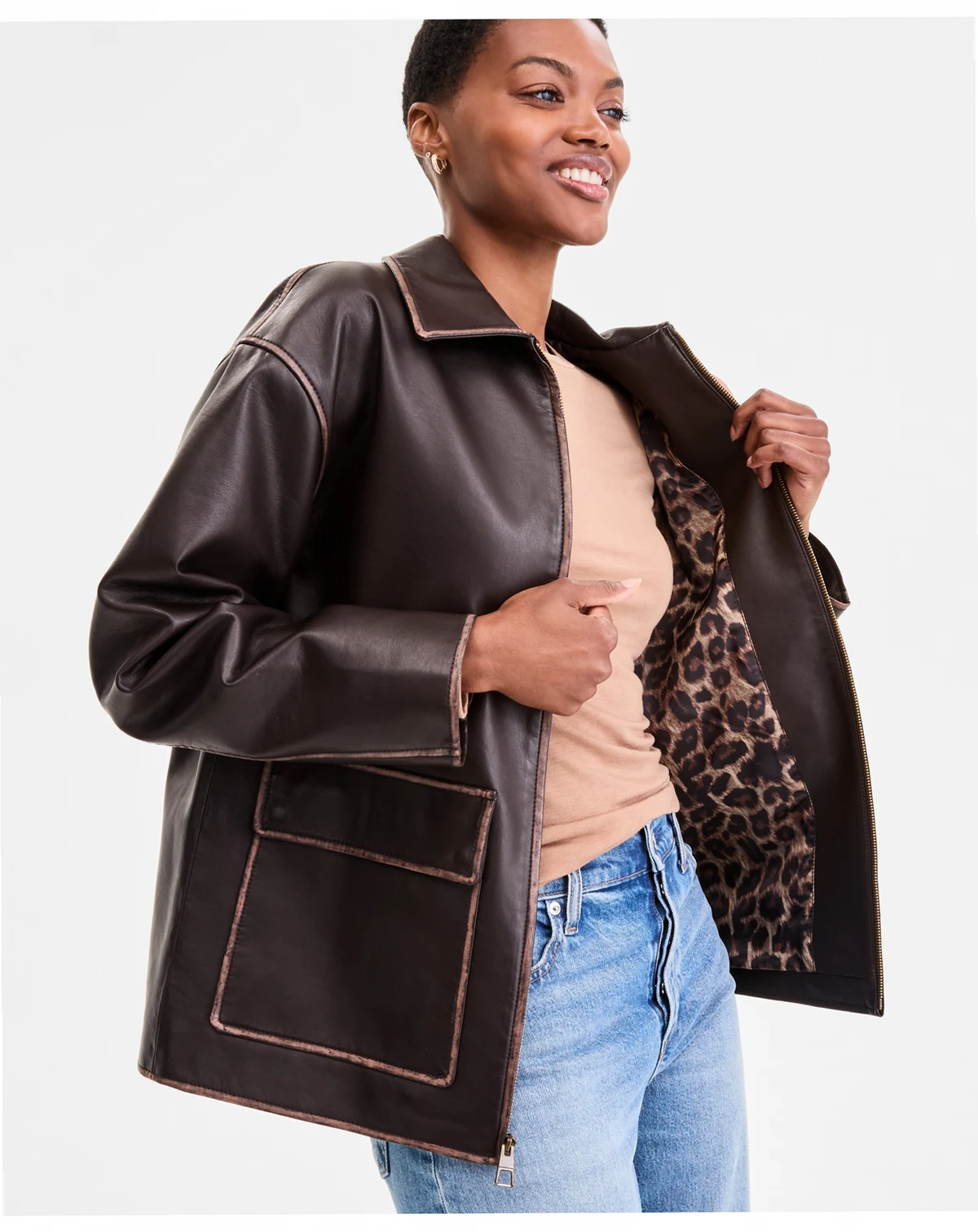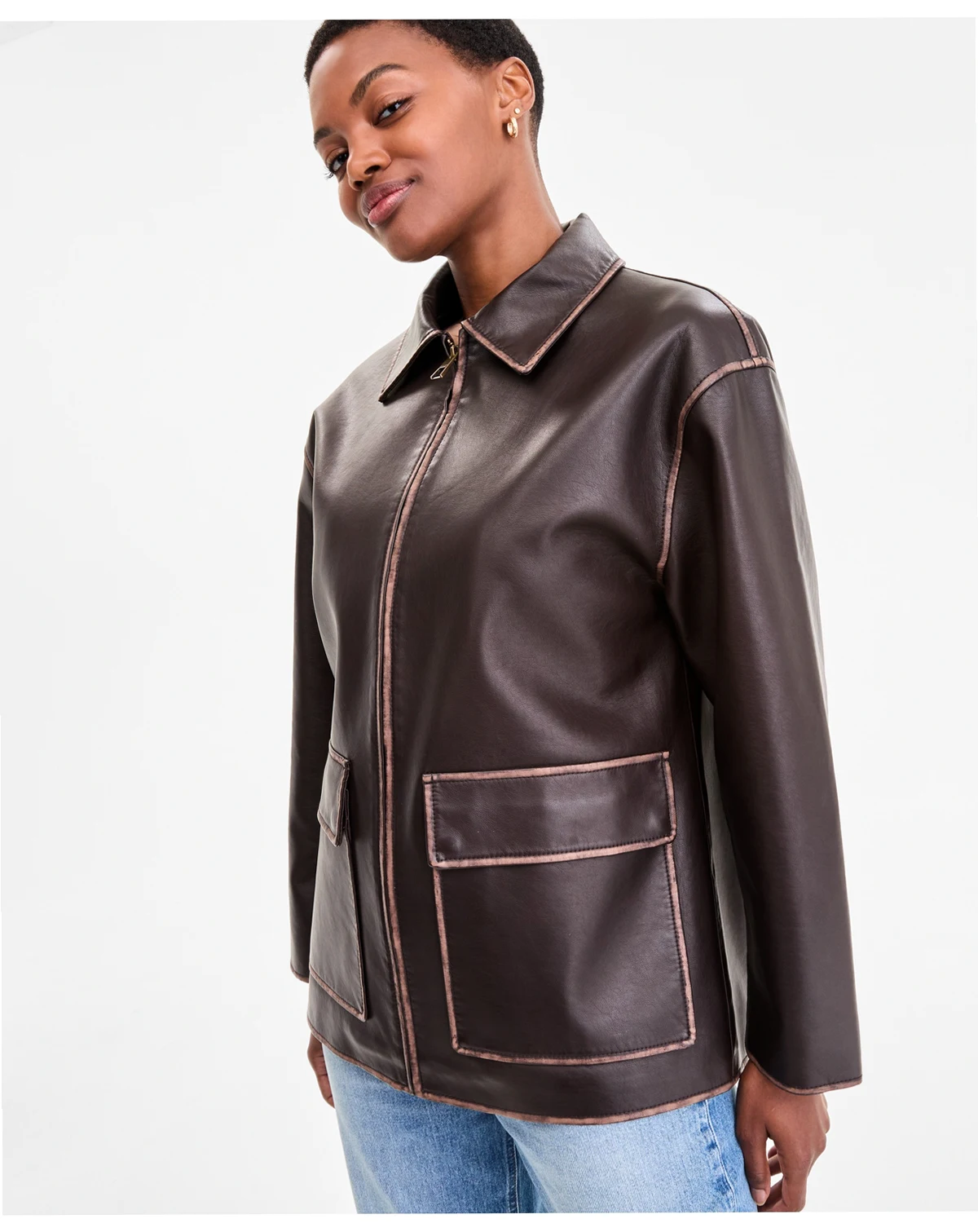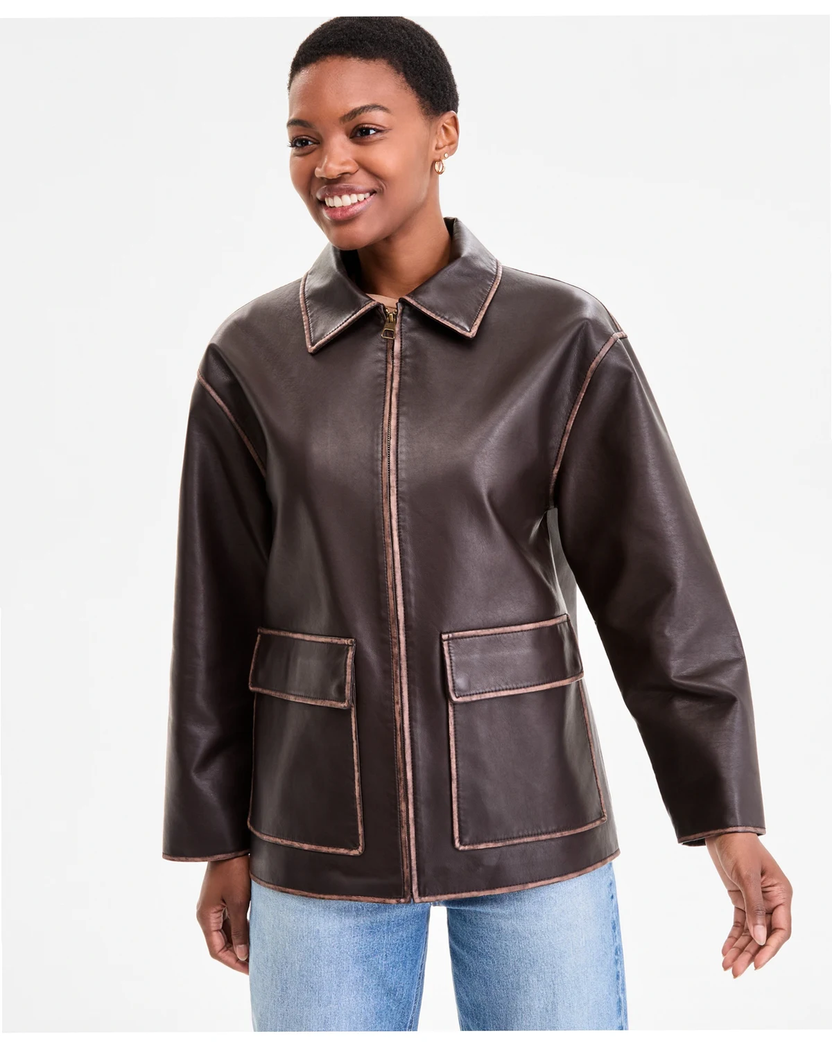 Women's Zip-Front Faux-Leather Coat