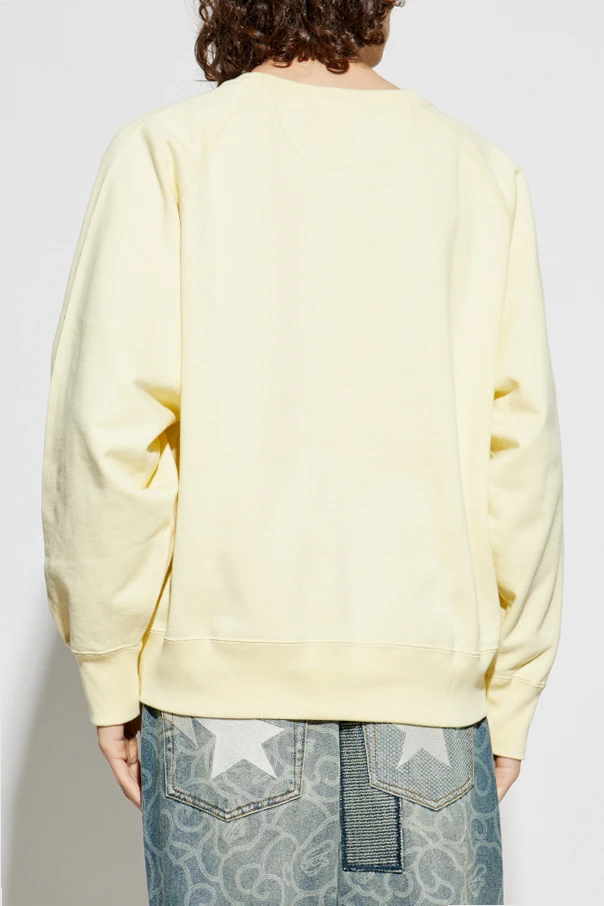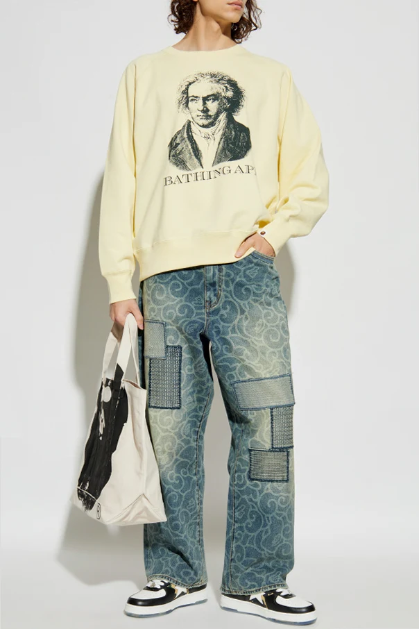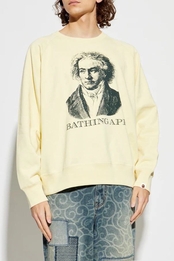 Elevate your wardrobe with this exceptional crewneck sweatshirt by A BATHING APE® . Crafted from soft, premium cotton, this piece radiates effortless sophistication with its refined pale yellow hue. The classic silhouette, featuring raglan sleeves and a relaxed, timeless cut, ensures comfort without compromising style.