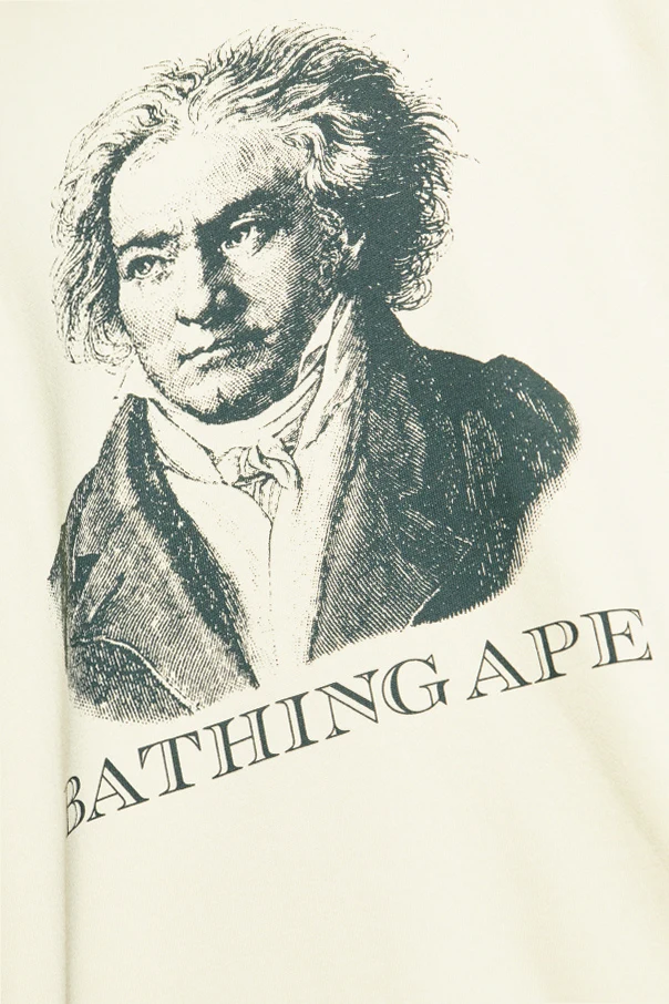The focal point of this sweatshirt is an impressive vintage-inspired portrait printed boldly across the front, rendered in elegant shades of black and gray. Beneath the artwork, the iconic BATHING APE inscription asserts the unique legacy and distinction of the brand.