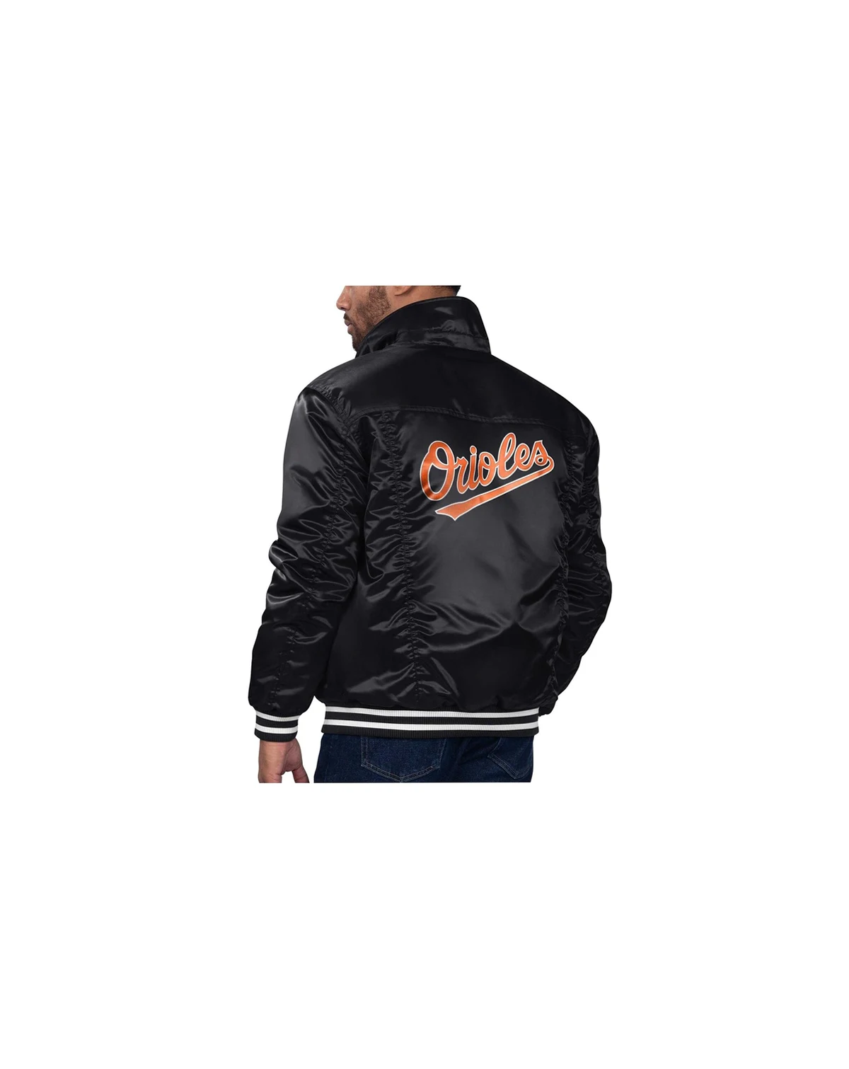 Two giants of the outerwear game, Starter and Levi's, have teamed up to knock it out of the park for Baltimore Orioles fans with this Silver Tab Satin Full-Snap Trucker Jacket. It is a winning combination of iconic elements from Levi's Truckers and Starter satin jackets, including striped ribbed cuffs and hem and branded metal hardware. Soft satin and quilted lining check off the comfort factor while you root, root, root for the Baltimore Orioles.