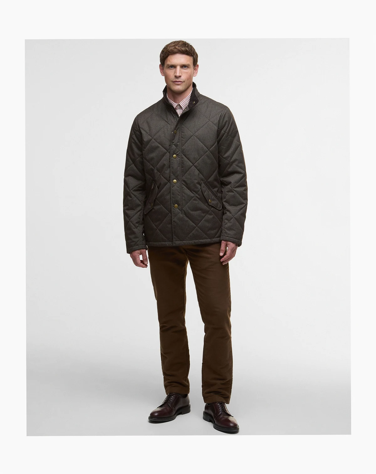 Give a warm welcome to the Barbour Shoveler jacket, featuring 4" box quilting and brushed fabric.