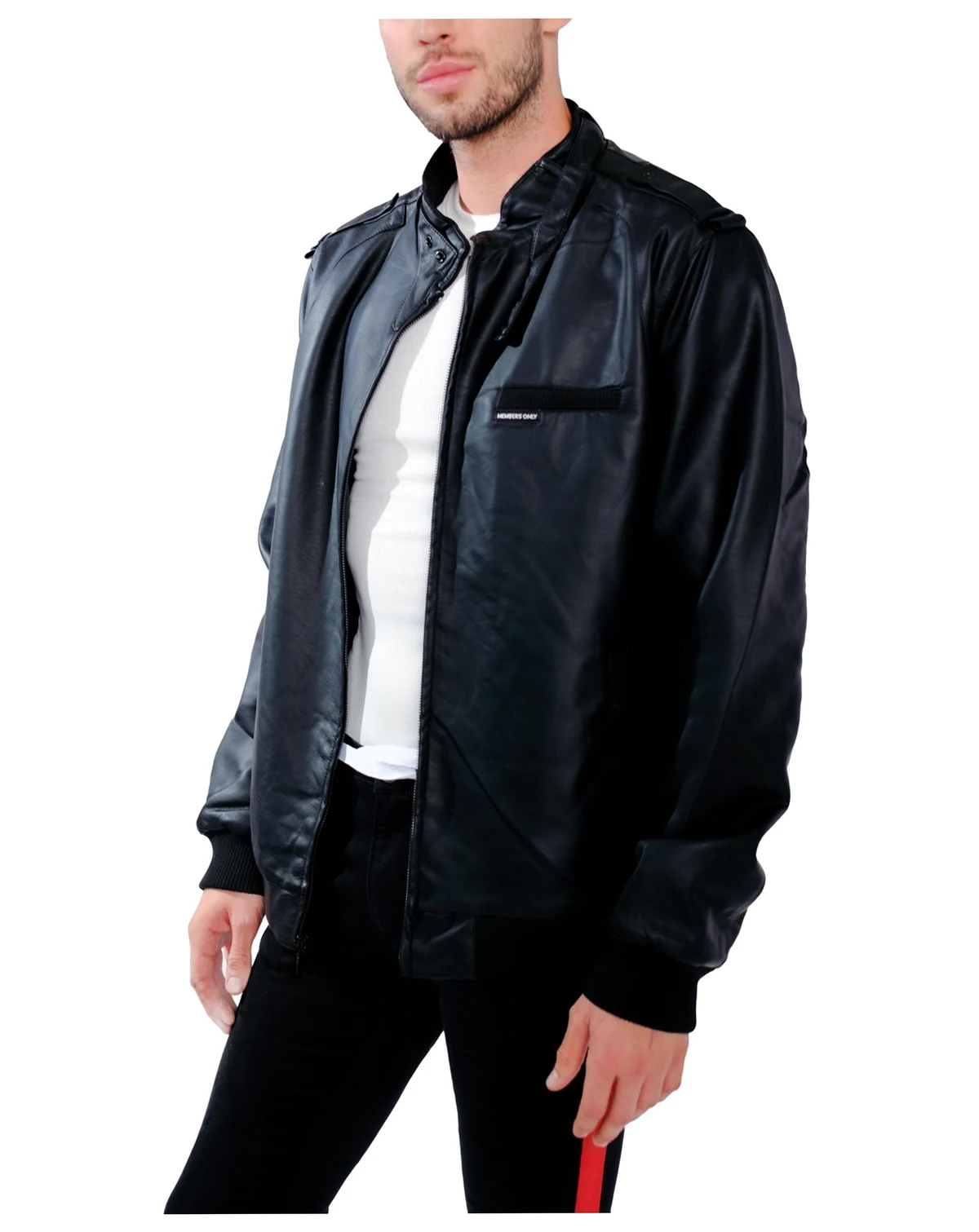 Dear upright citizen of the world, thank you for including us in your world. We are proud to have you as a member. Members only classic faux leather iconic jacket. Crafted from soft, durable fabric with a diamond quilted interior and lightweight poly fill for added warmth, this jacket is perfect for winter, fall, and spring. Signature details like the throat latch, shoulder epaulettes, and sleek chest pocket with logo give it a fresh, modern vibe. Zip closure and multiple pockets make it as functional as it is stylish—perfect for any occasion.