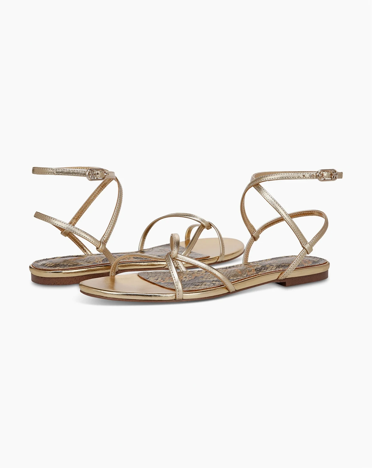 Skinny strapping takes twists and turns to deliver the effortless dress-up-or-down style of the Elina flat sandals from Sam Edelman.