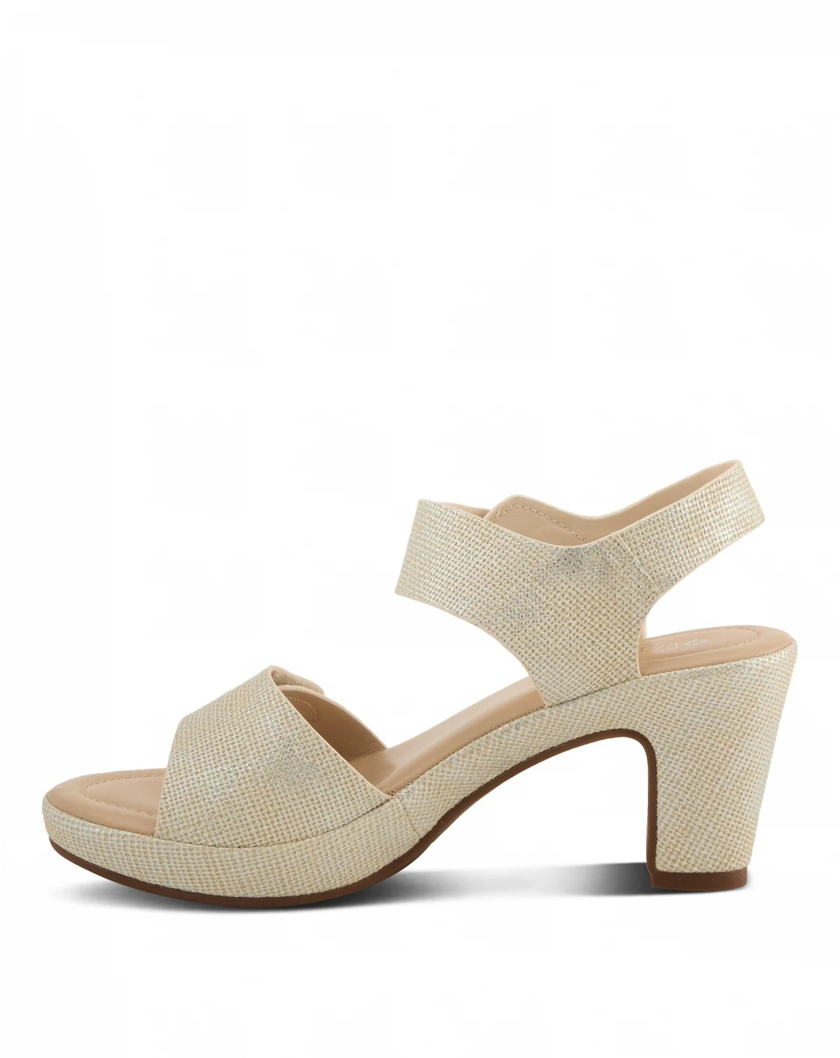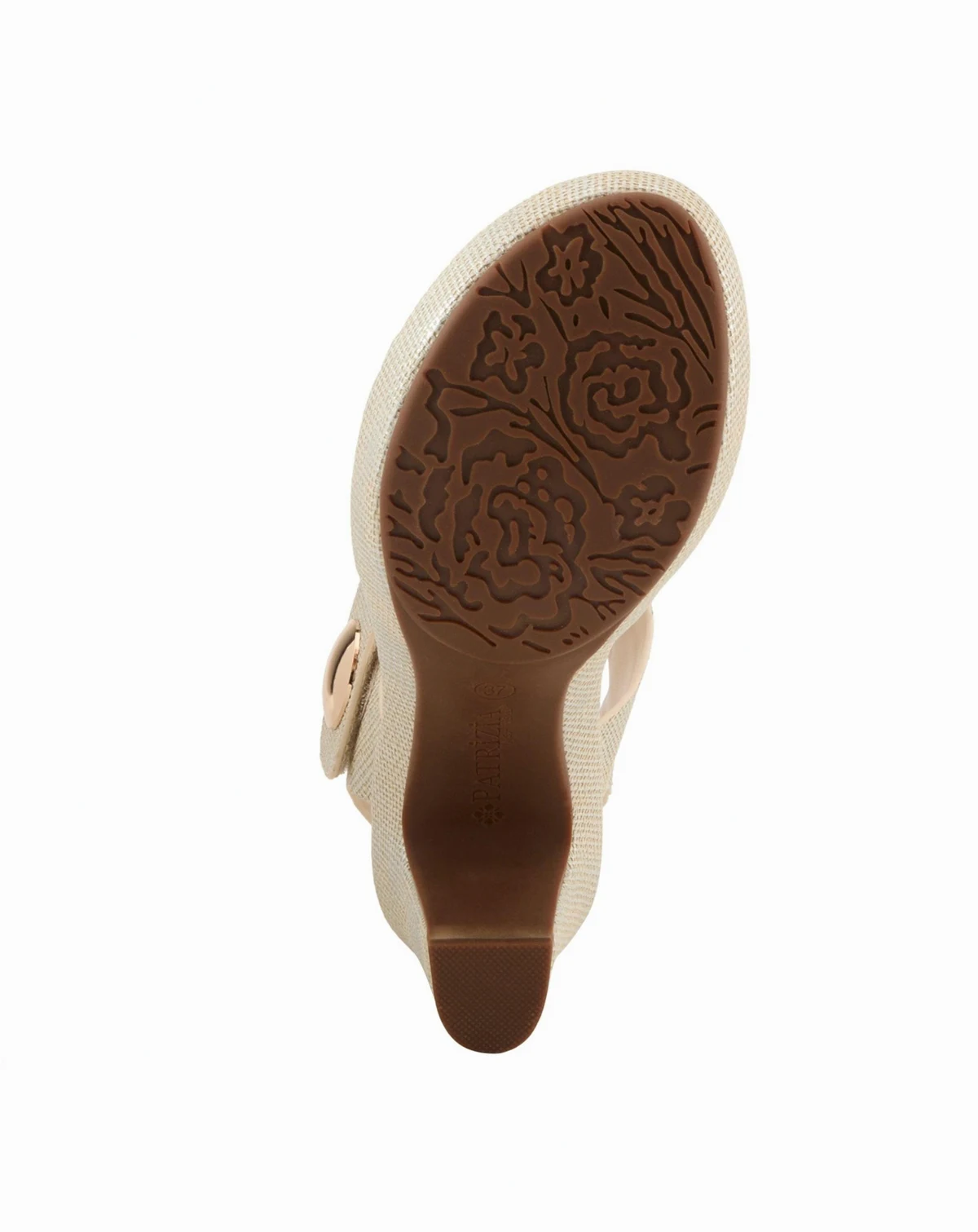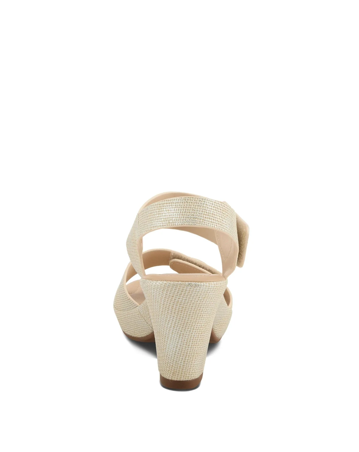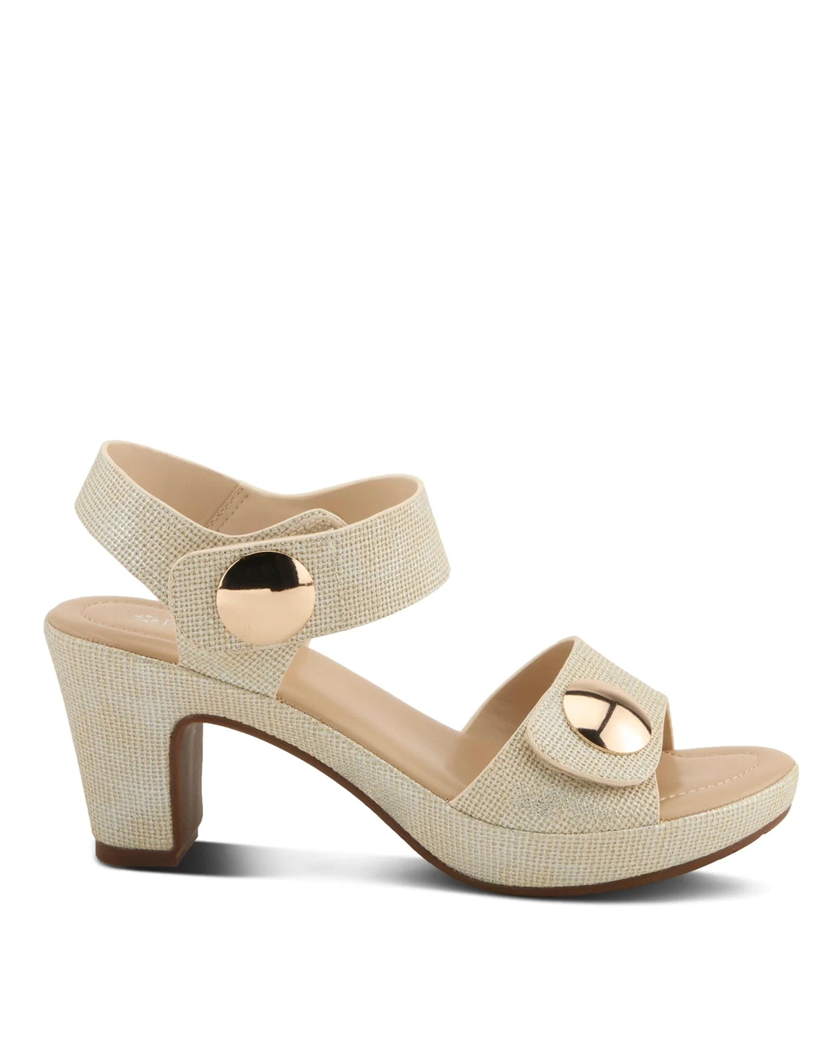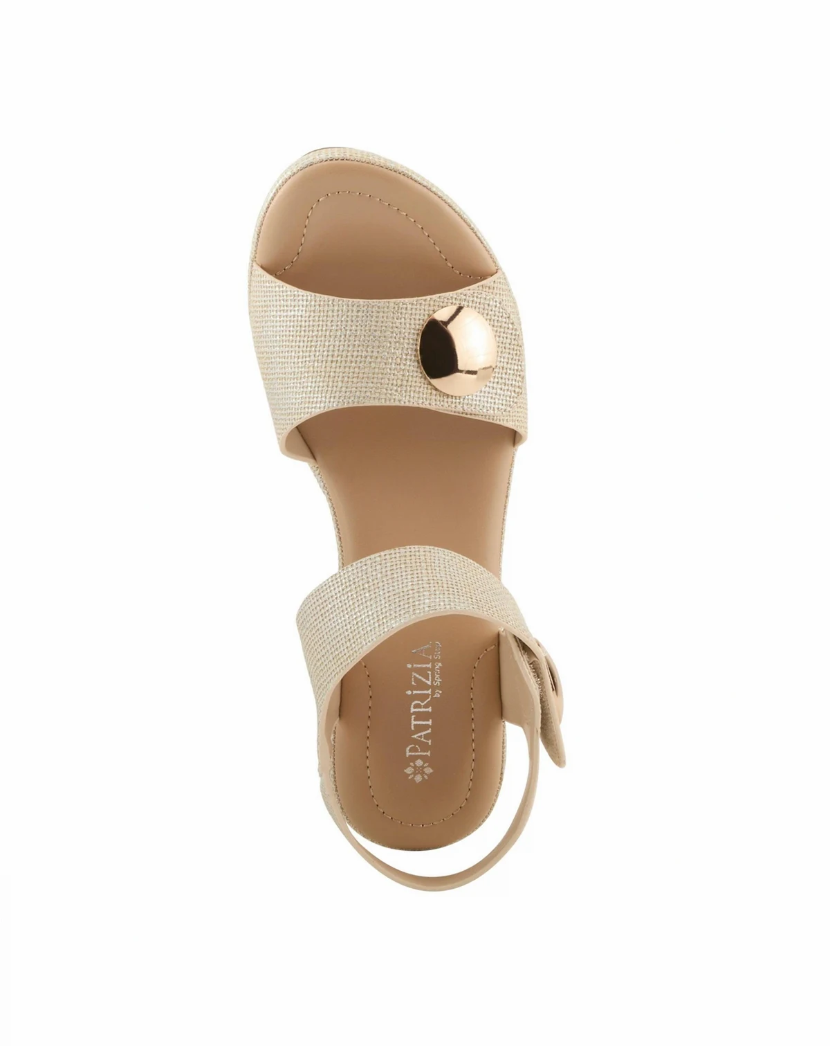 The Patrizia DADE-WOVEN sandals bring a fresh twist to timeless style with their richly textured faux leather upper and eye-catching metallic round buttons. Designed with fully adjustable hook-and-loop straps, these sandals offer a secure and personalized fit. The cushioned footbed and front platform ensure both comfort and balance, making them perfect for everything from everyday errands to special occasions. A modern heel adds just the right amount of height for a confident stride.