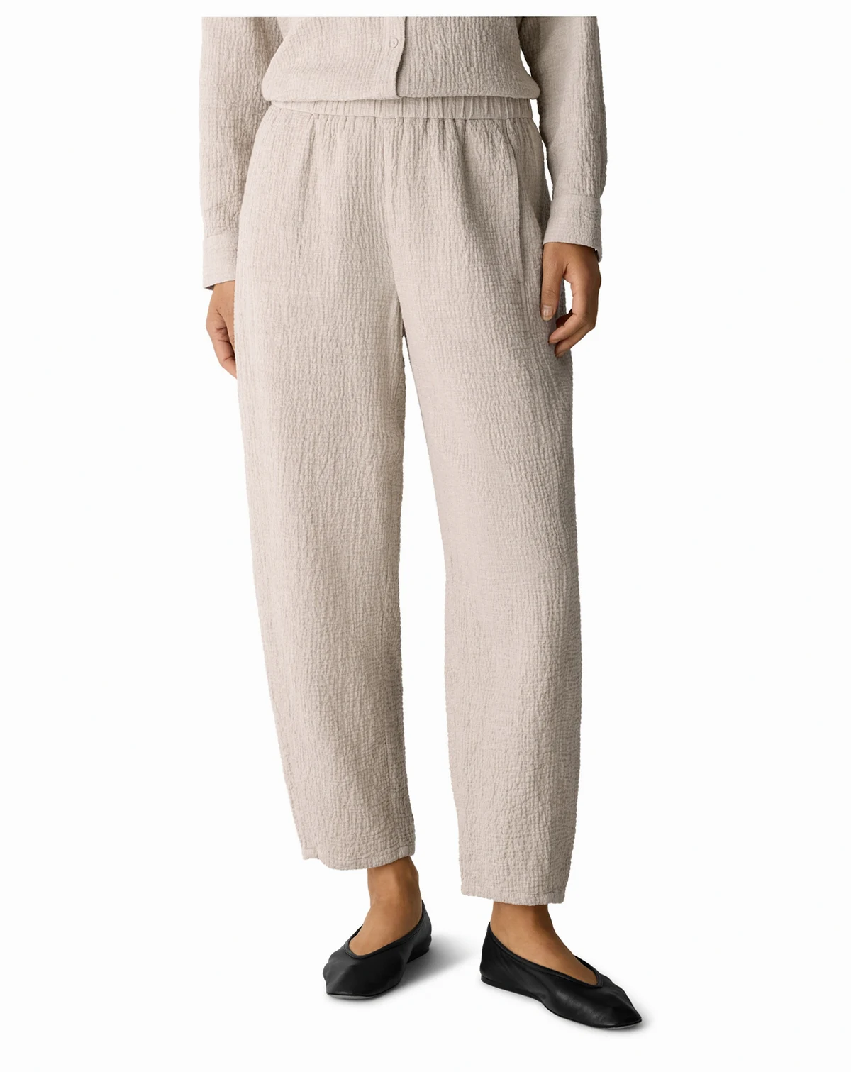 Lean into signature ease with these Eileen Fisher lantern pants, defined by a best-selling shape and distinctive crinkled texture. An elastic waistband and subtle side panel detail deliver comfort with softly curved lines.