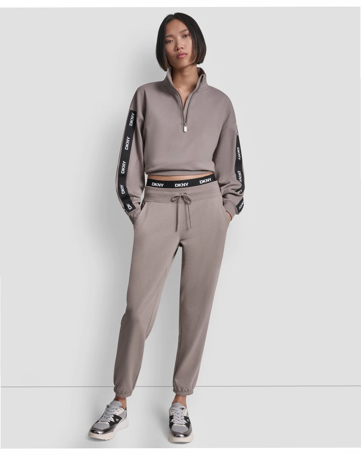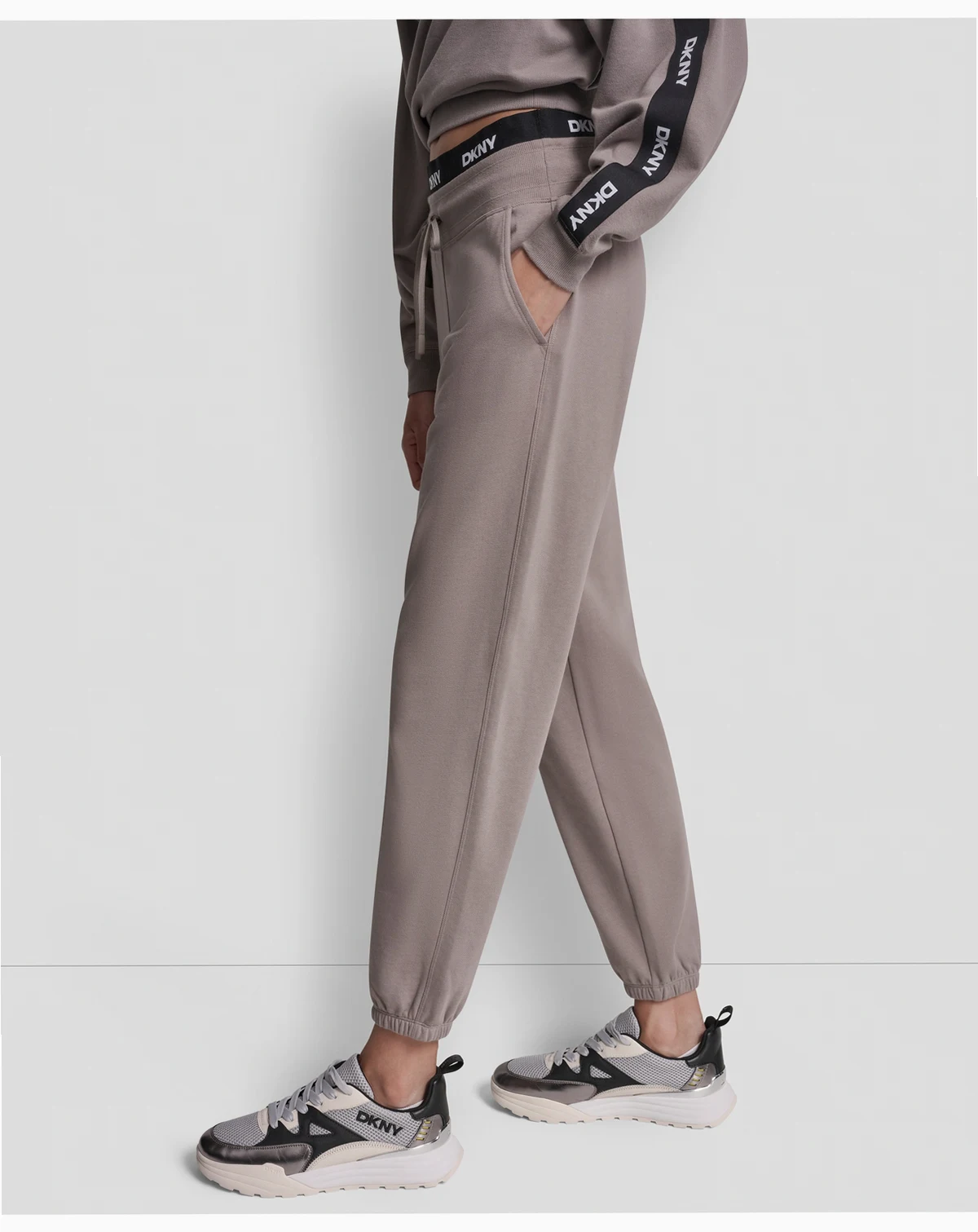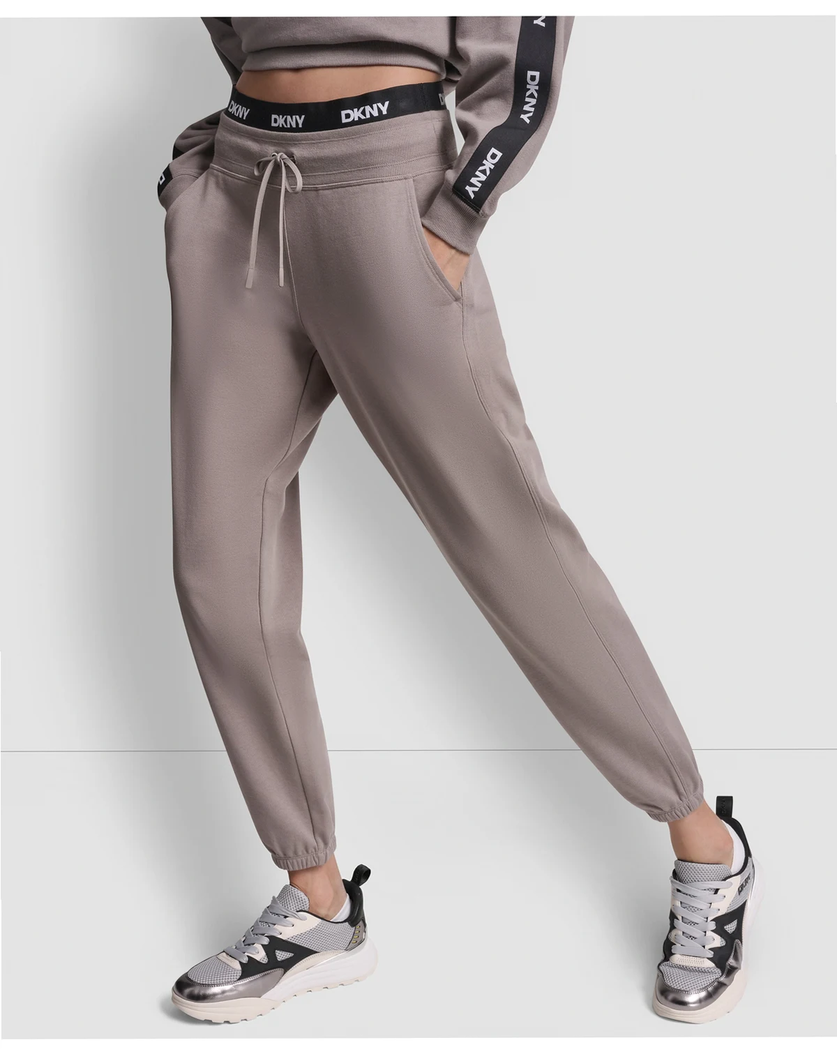 Designed with a comfortable elastic high-rise waist, these relaxed sweatpants from DKNY Sport offer a full-length silhouette for everyday wear. The pull-on style ensures easy wear, making these bottoms a versatile staple.