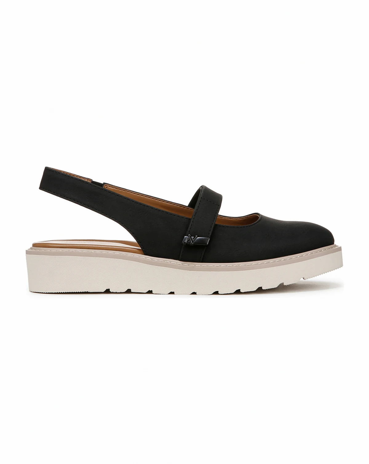 From our Lite Series // Classic, but better: A slingback strap, lightweight feel and wedge heel kicks these Mary Jane shoes up a notch. Slingbacks with Mary Jane inspired strap and Naturalizer "N" heritage ornamentation. Synthetic upper with linings and an almond toe. Adjustable hook-and-loop top strap. Contour+ Comfort technology for a premium fit and all-day comfort experience. Lug sole. Flexible and lightweight EVA sole. 0.75-inch platform, 1-inch wedge heel. WHY YOU'LL LOVE IT: Forever elegant silhouettes with all day wearability, available in an inclusive range of sizes and widths. Designed to the contours of a woman's foot. The Beautiful Fit. Since 1927.