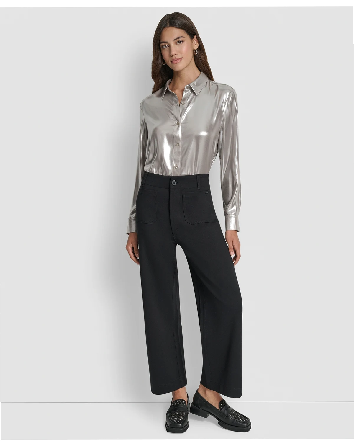Create a contemporary statement with these DKNY Jeans, featuring a wide-leg silhouette for a modern, on-trend look. Cropped and high-rise, they offer a flattering fit that pairs effortlessly with your favorite tops.