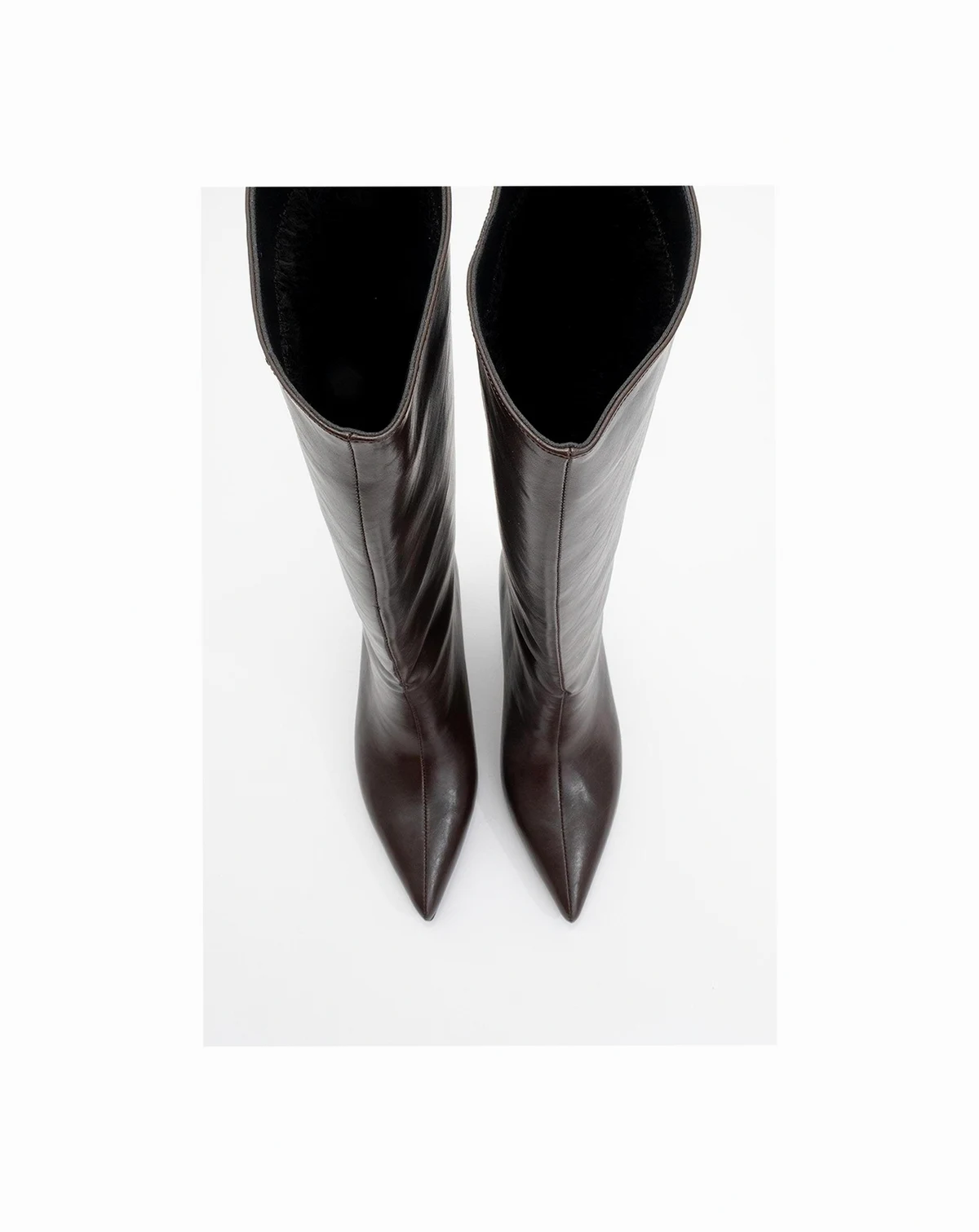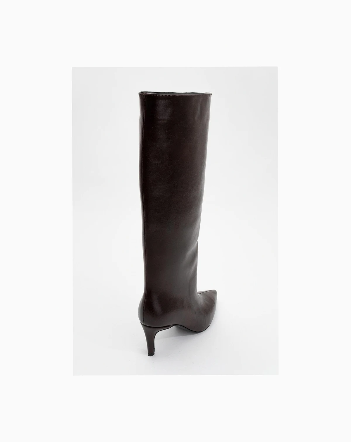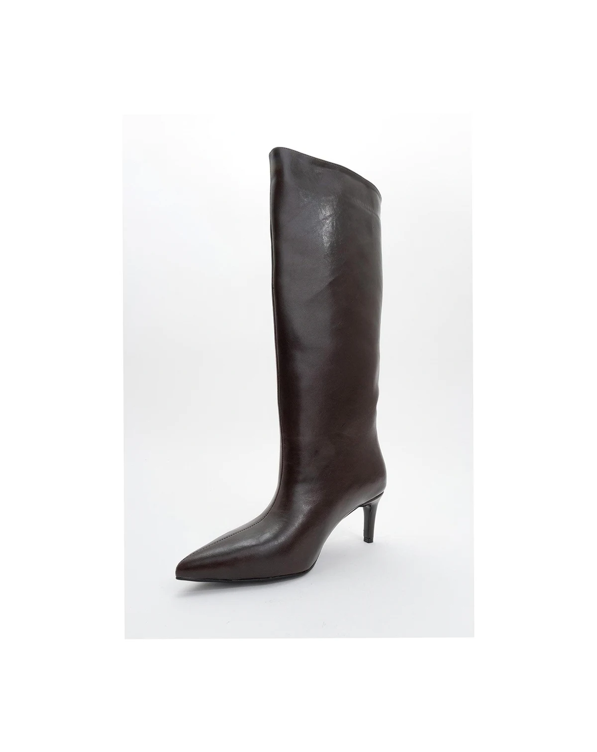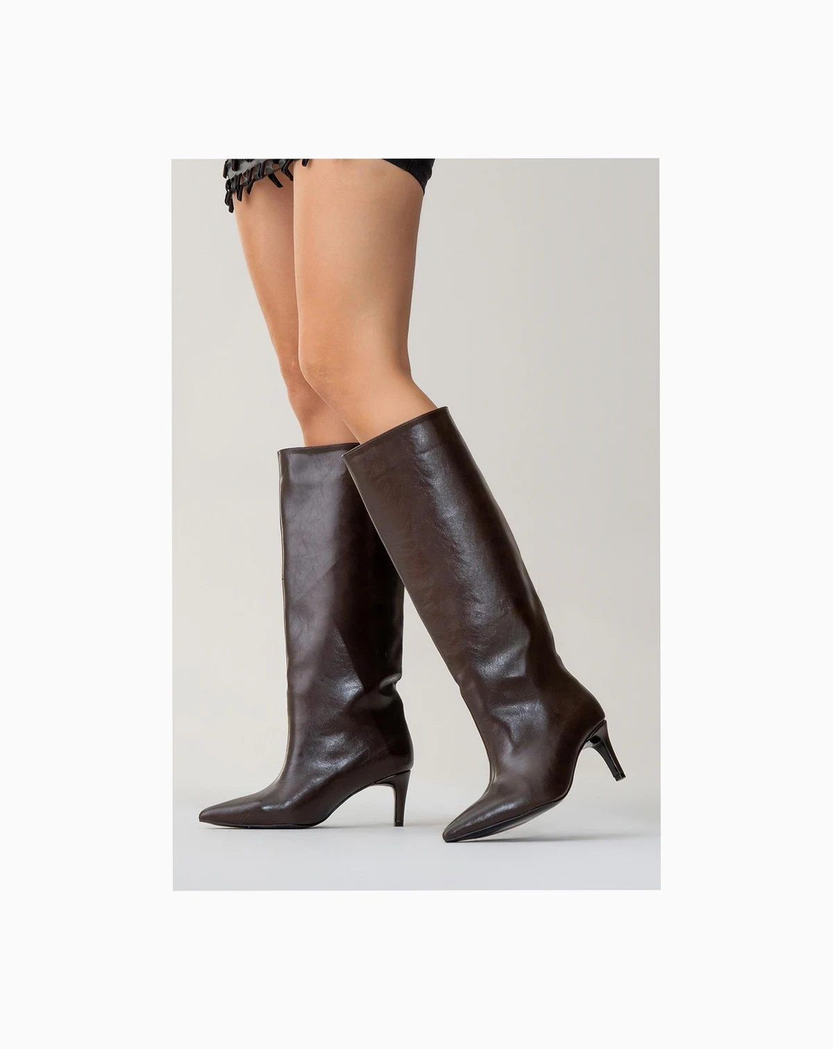 Cassandra Boots from Prologue Shoes by Forever and Always Shoes blend structured elegance with dependable comfort. Crafted from high-quality faux leather, they feature a sleek, knee-high design with a pointed toe and a 6.5 cm (approximately 2.56 inches) slim heel that delivers poised sophistication without sacrificing wearability. Built with a slip-on style (no zipper), the boots are designed for effortless entry while maintaining a clean silhouette. They rest on a duarable Neolit sole, offering reliable traction across various surfaces—ideal for both day and night. Handmade in Turkey with meticulous attention to detail, the Cassandra Boots run true to size, ensuring a consistent and flattering fit. Whether worn with tailored outerwear or skinny jeans, they bring a polished and modern touch to any wardrobe.