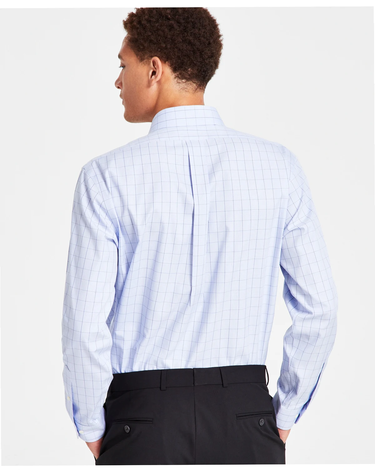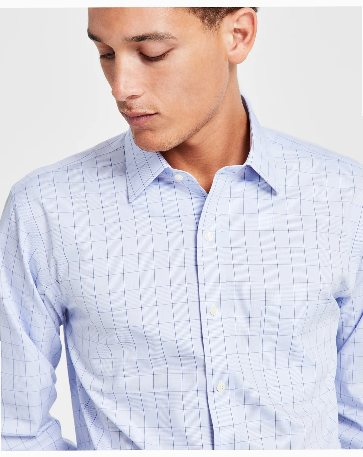 Men’s Regular Fit Non-Iron Spread Collar Check Pinpoint Dress Shirt