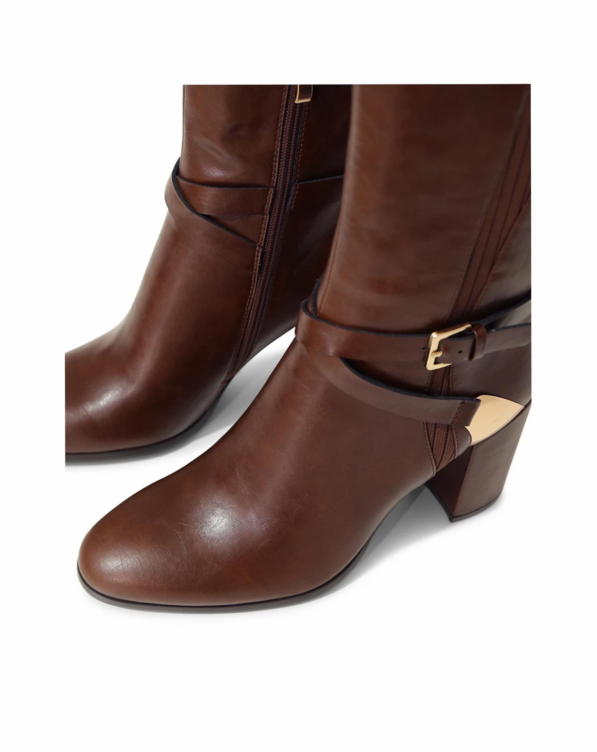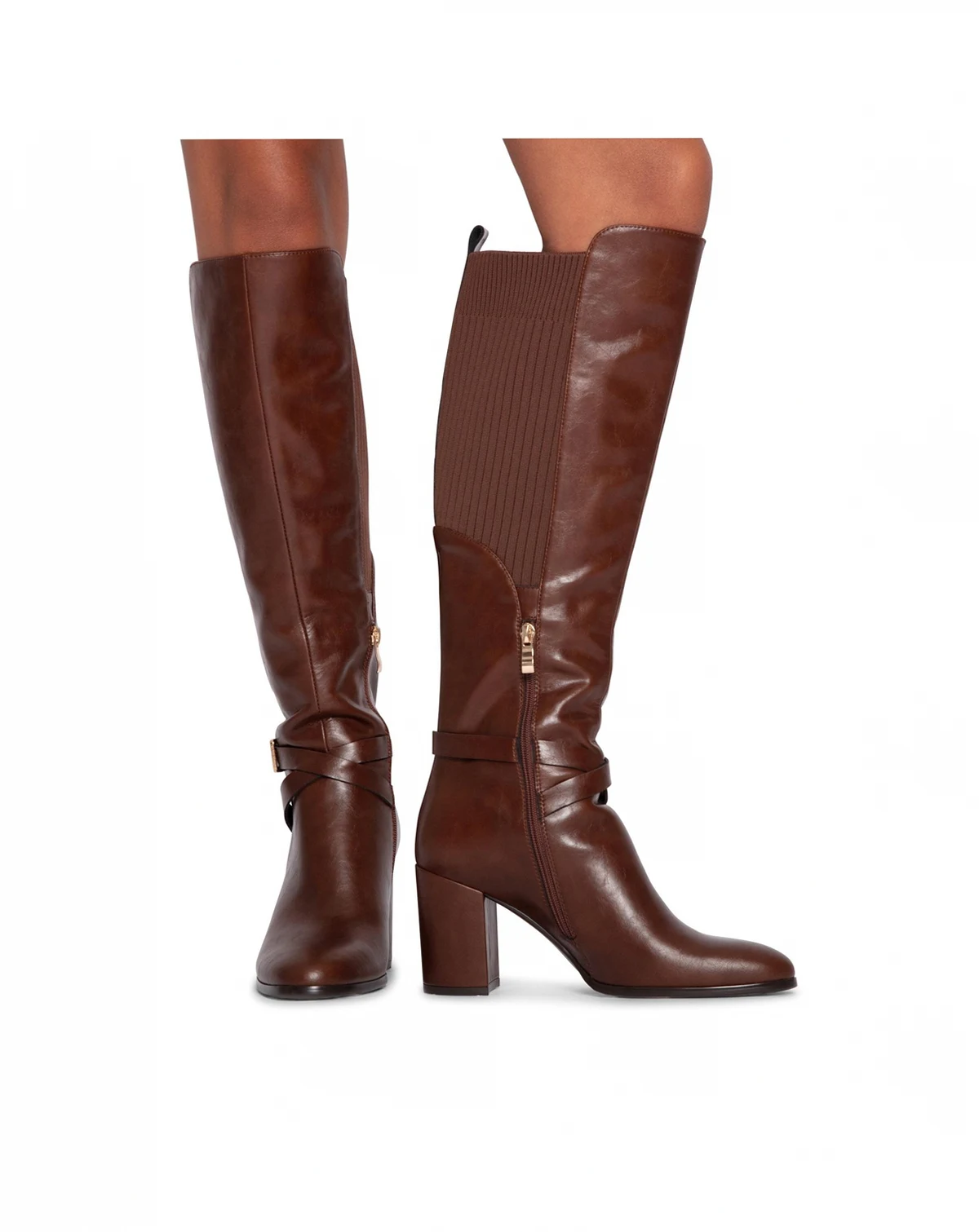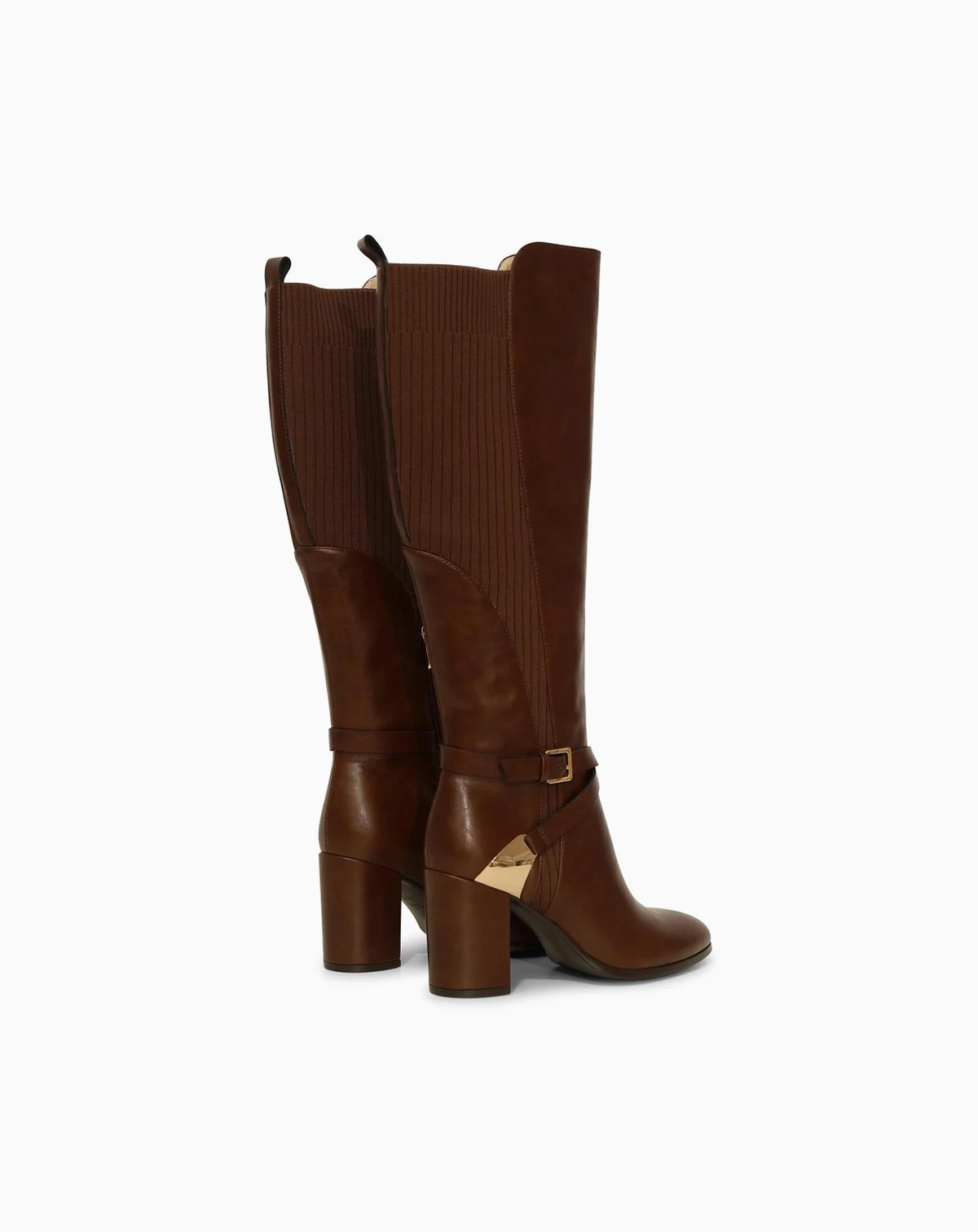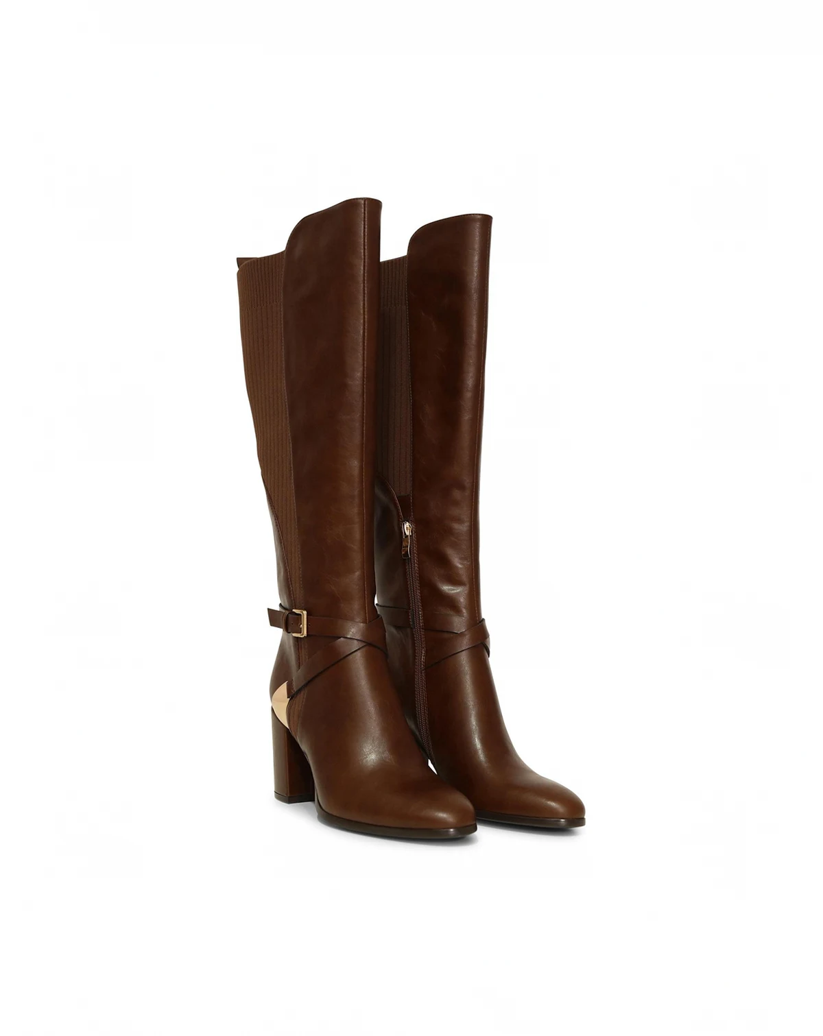 Polished gold hardware, slender leather straps and ribbed panels add an equestrian edge to the Breton Knee-High Boot in smooth leather with the perfect height heel to take you comfortably from day to night.