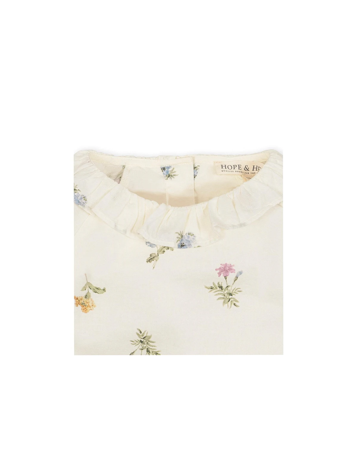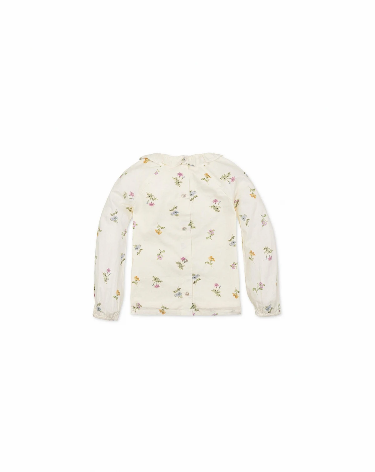 A ruffle collar on this flowy top adds just the right amount of whimsy to your girl's looks. Crafted from soft organic cotton, this top features raglan sleeves with gathered cuffs and a pearlized button closure down the back for a sweet and feminine feel. Pairs nicely with our collection of organic cotton skirts, jumpers, and sweaters.