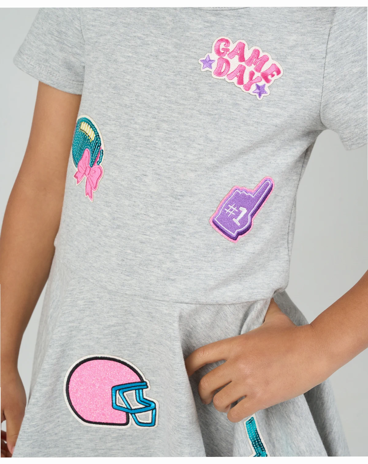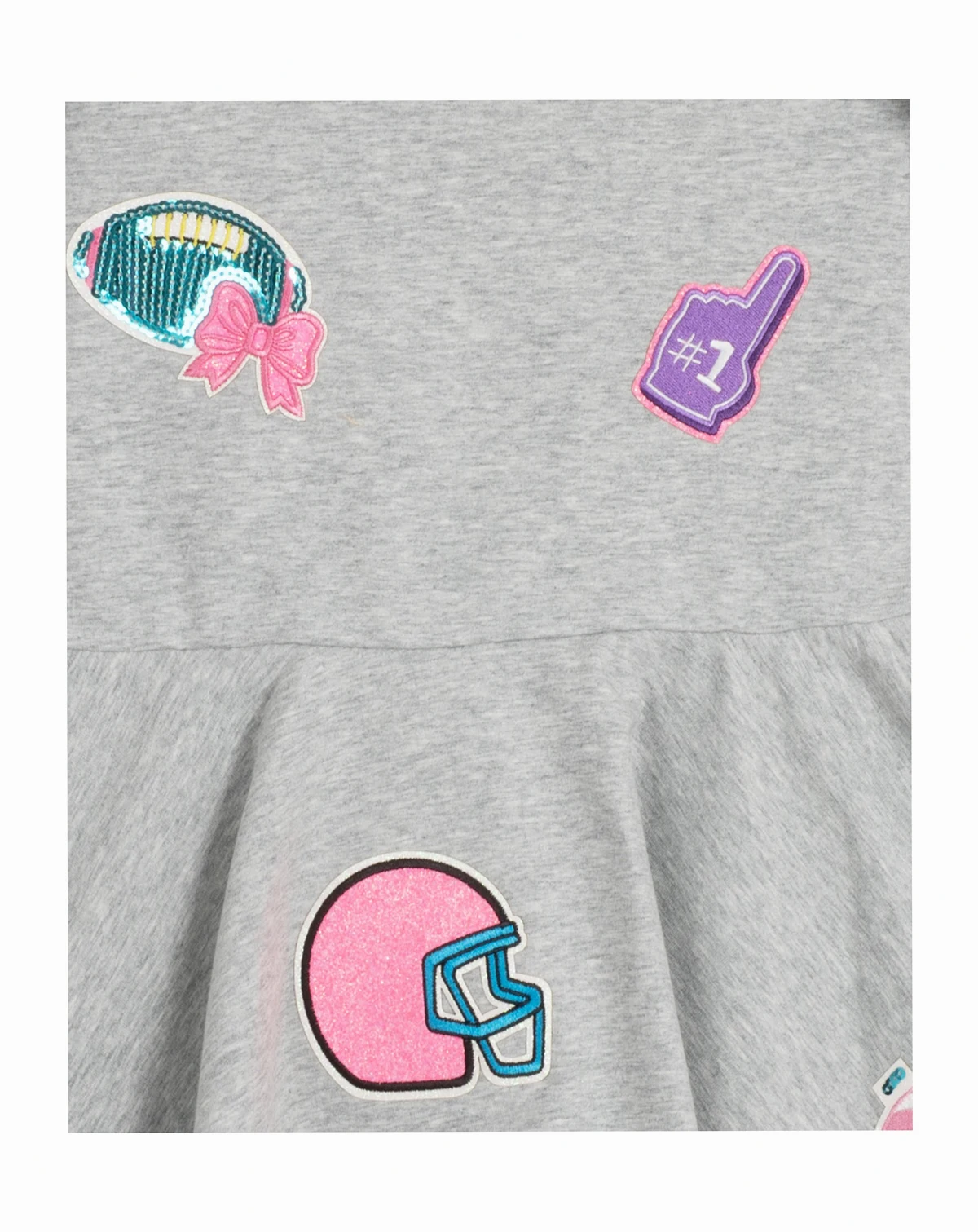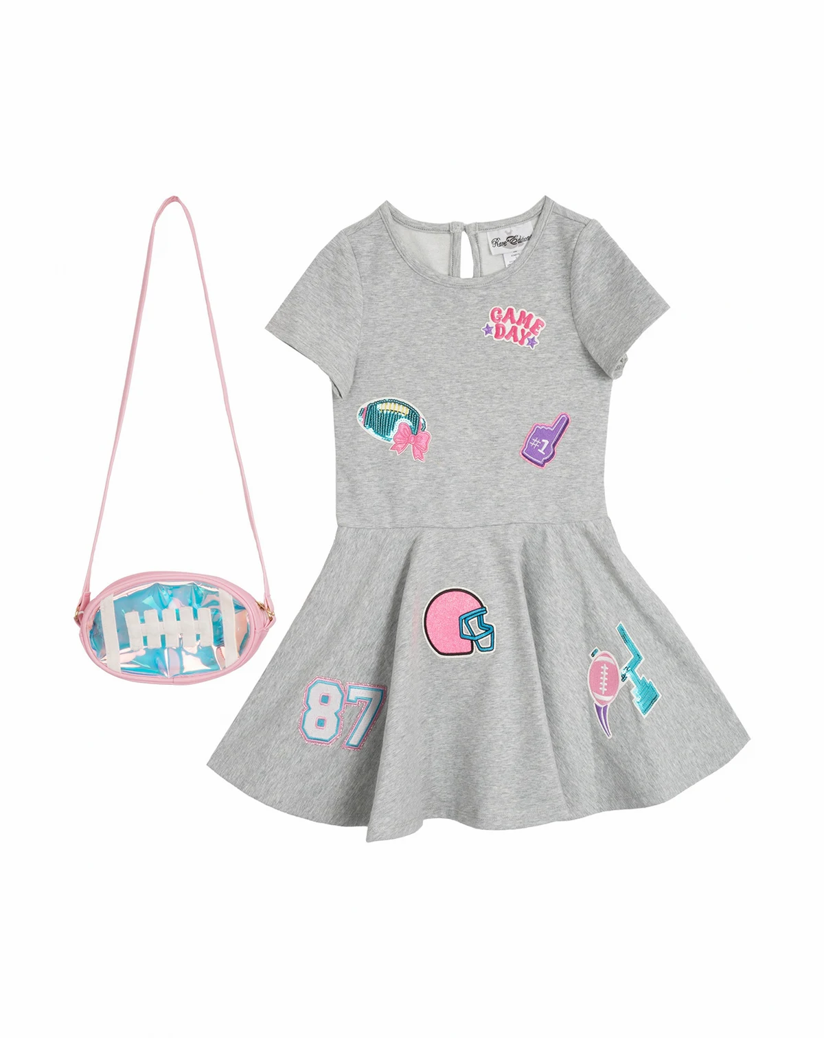 Score major style points in this Rare Editions dress, playfully decked out with football-themed appliqués for a sporty-meets-sweet look. A holographic crossbody bag is included for an extra dash of game-day glam.