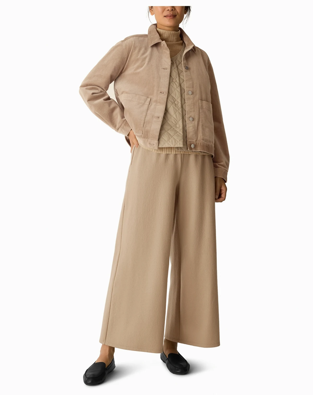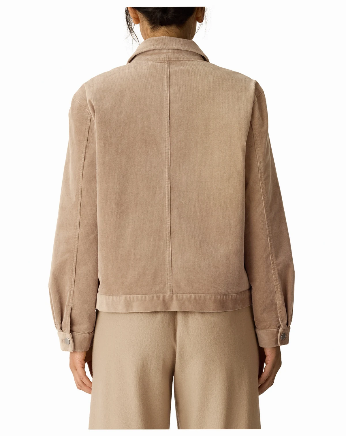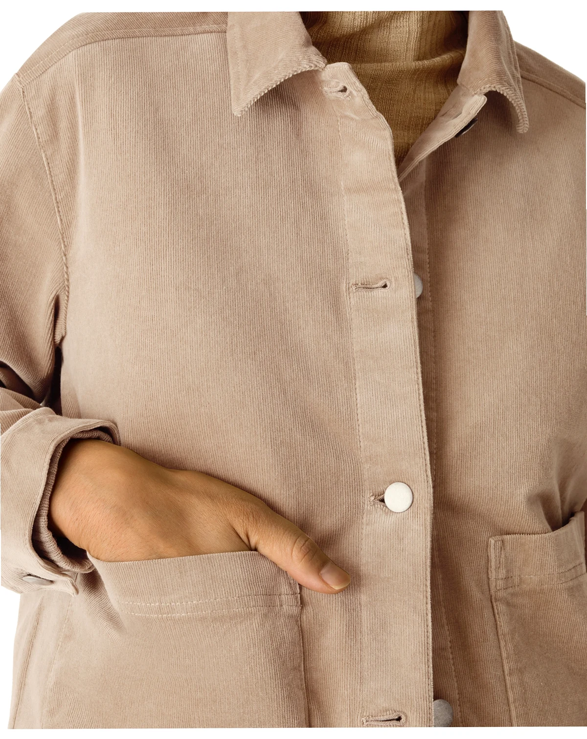 Enjoy velvety soft texture with the classic collar jacket from Eileen Fisher. Fine rows of corduroy and a touch of stretch provide all-day comfort and easy movement. A timeless design with front patch pockets offers both style and functionality.