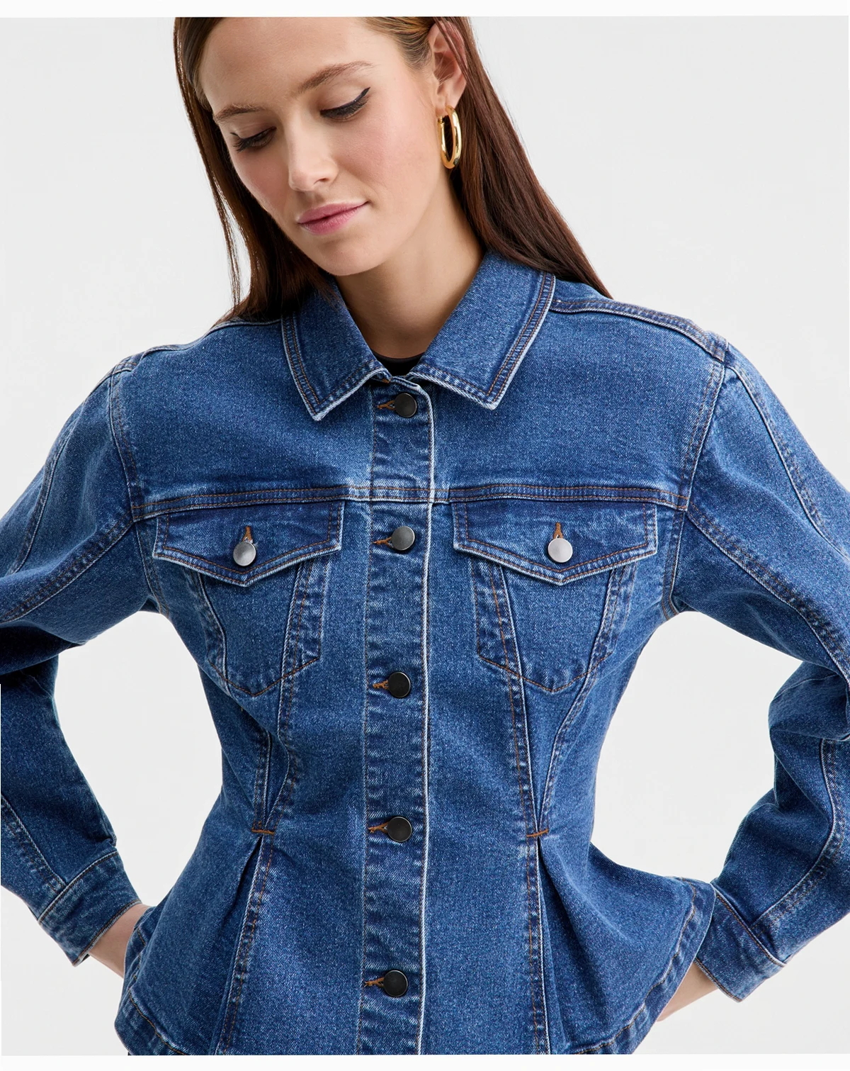 Bar III revamps the classic denim jacket with this sculpted version designed with inverted pleats at the hem.
