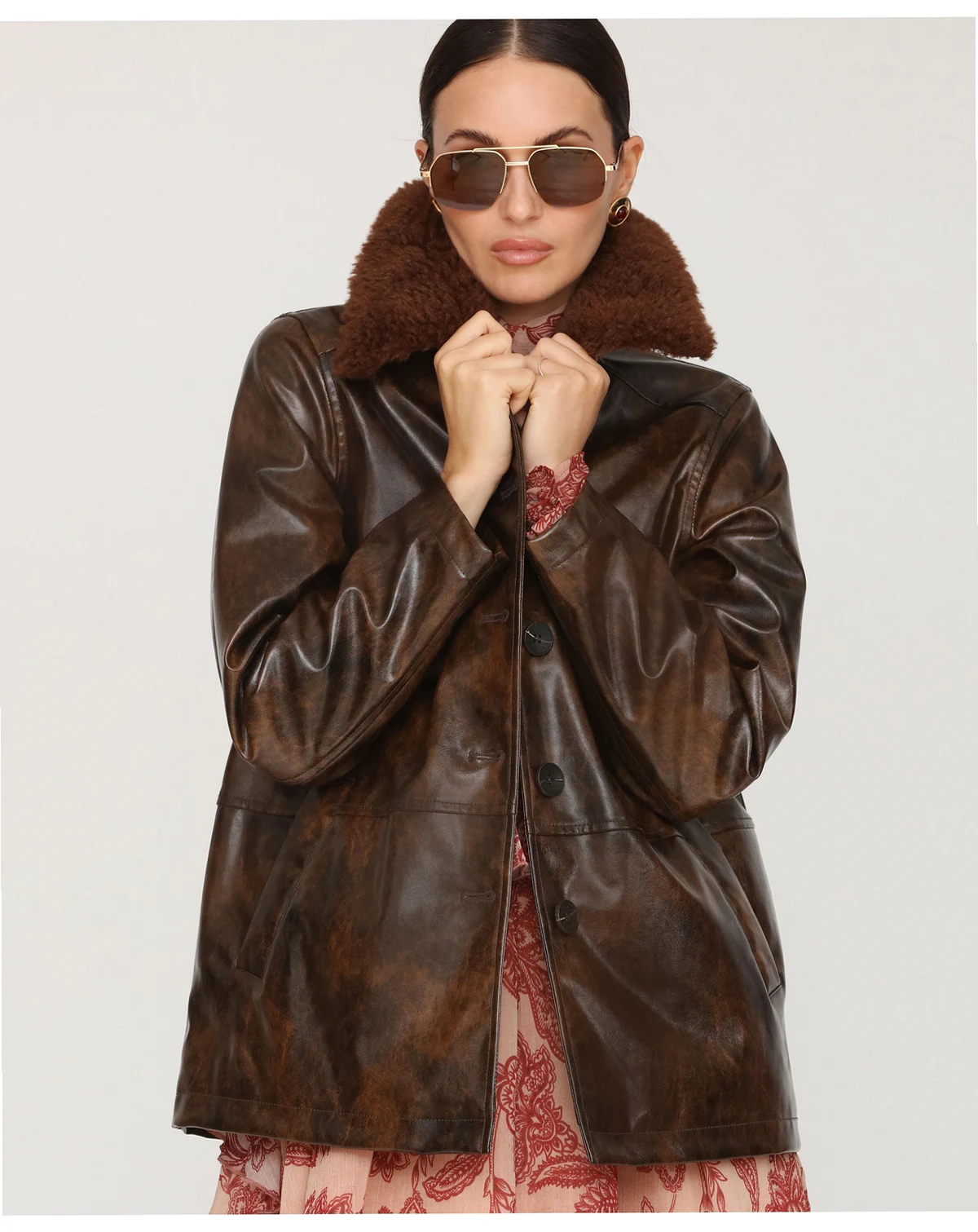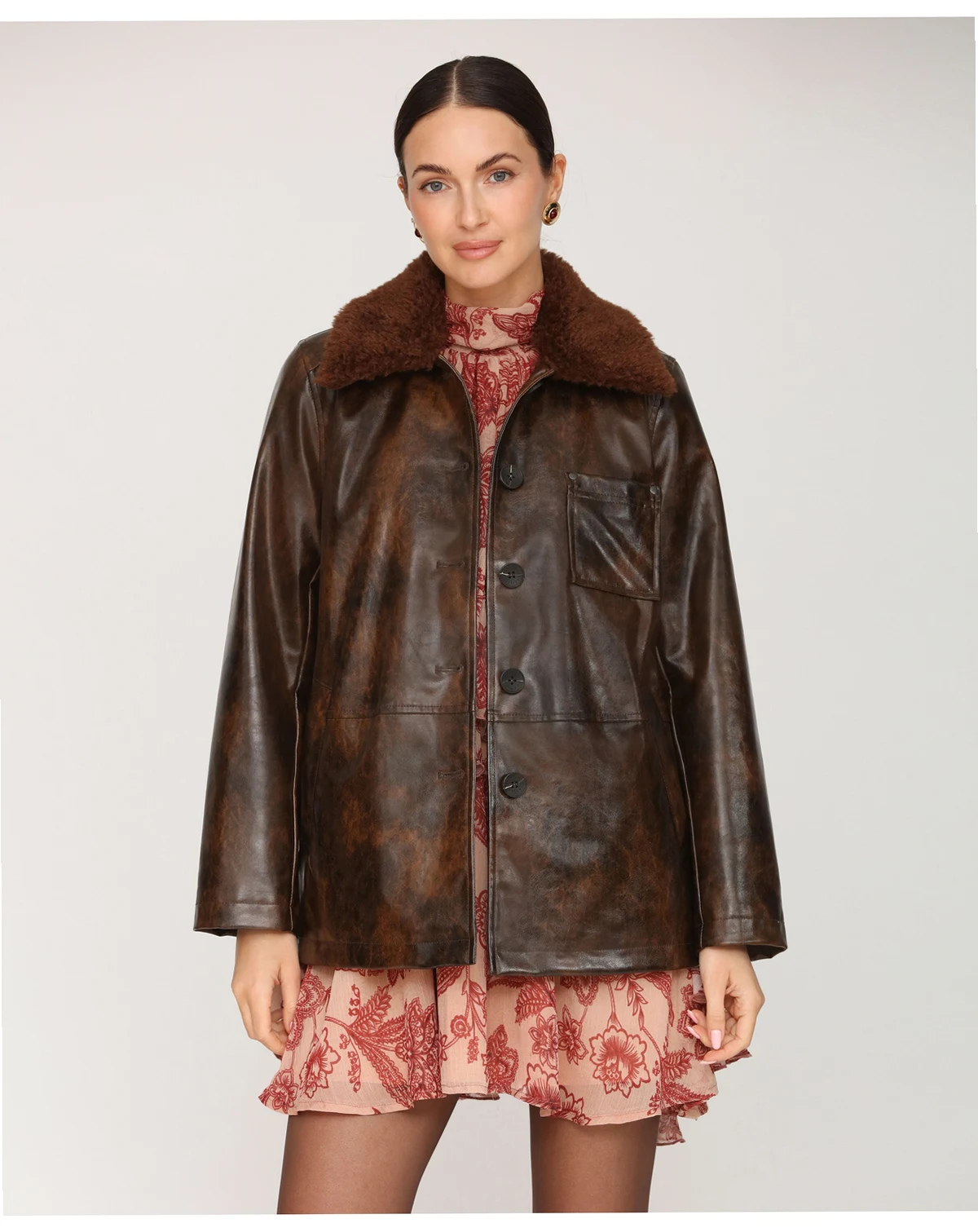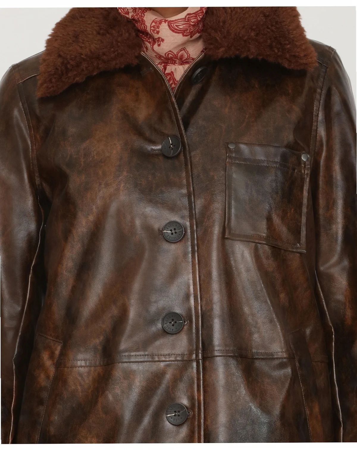 Stay chic and cozy with this Avec Les Filles coat, featuring a stylish spread collar. It has long sleeves and is fully lined for comfort and warmth. The front button closure and two functional side pockets add practicality.
