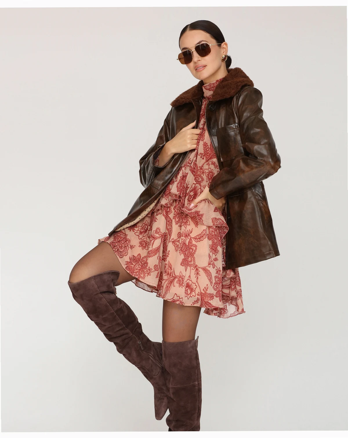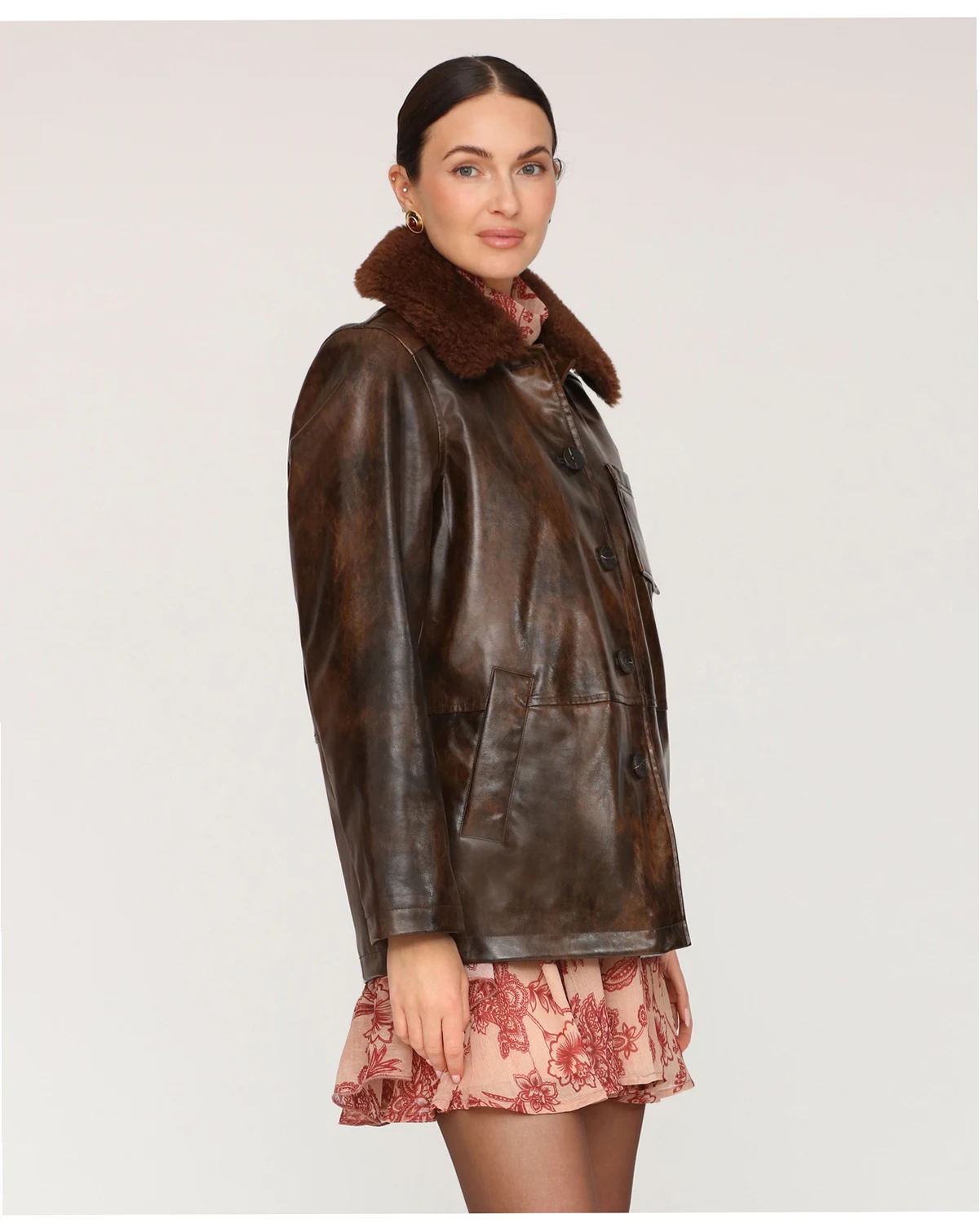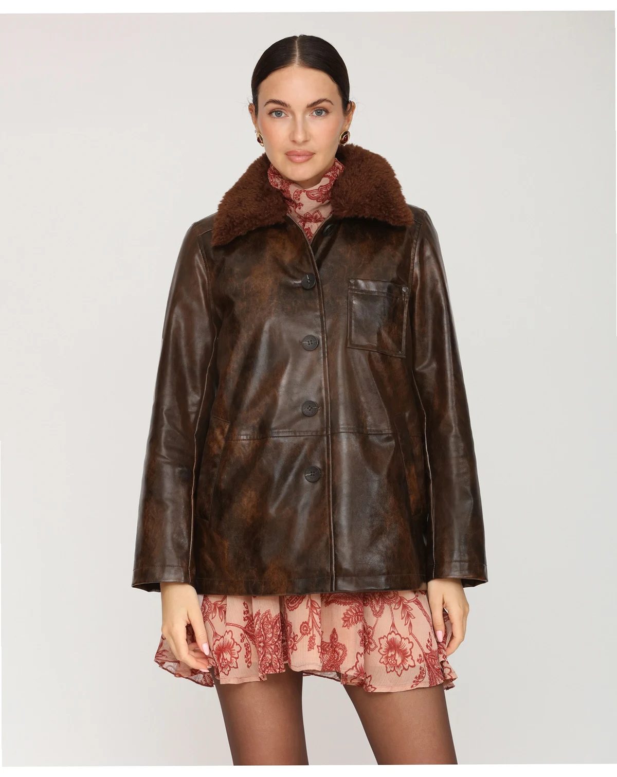 Stay chic and cozy with this Avec Les Filles coat, featuring a stylish spread collar. It has long sleeves and is fully lined for comfort and warmth. The front button closure and two functional side pockets add practicality.