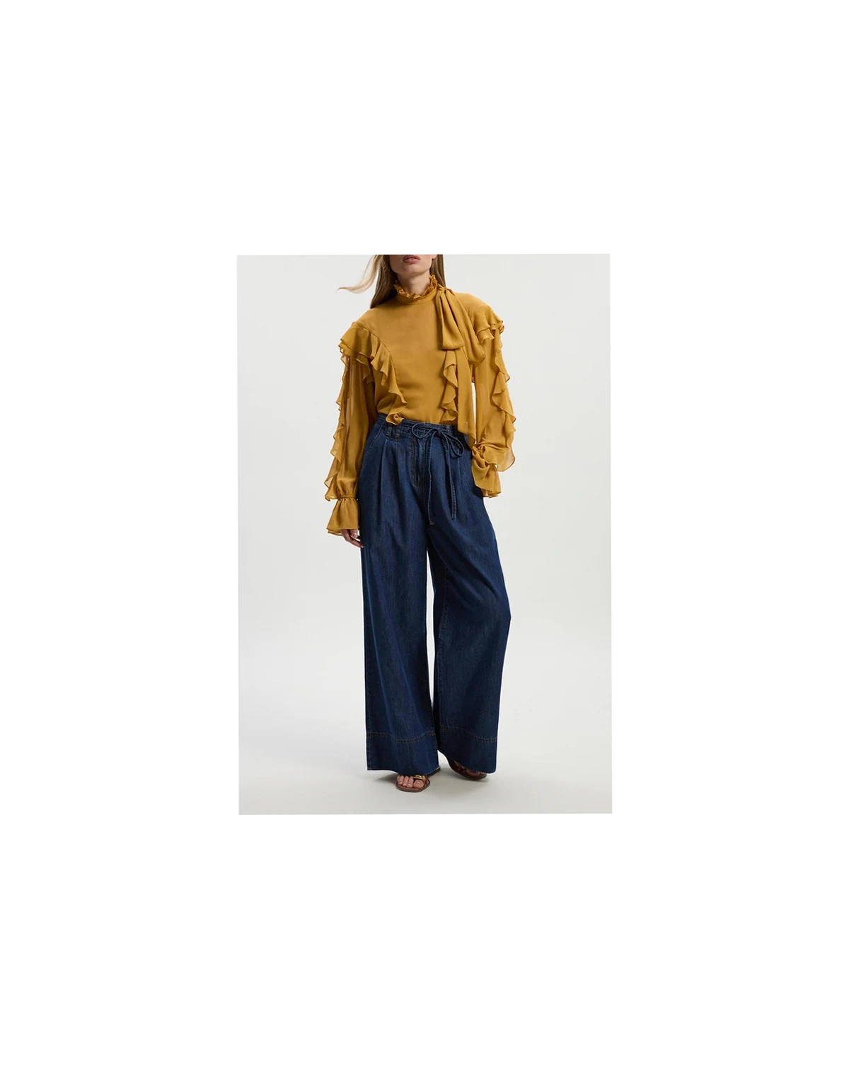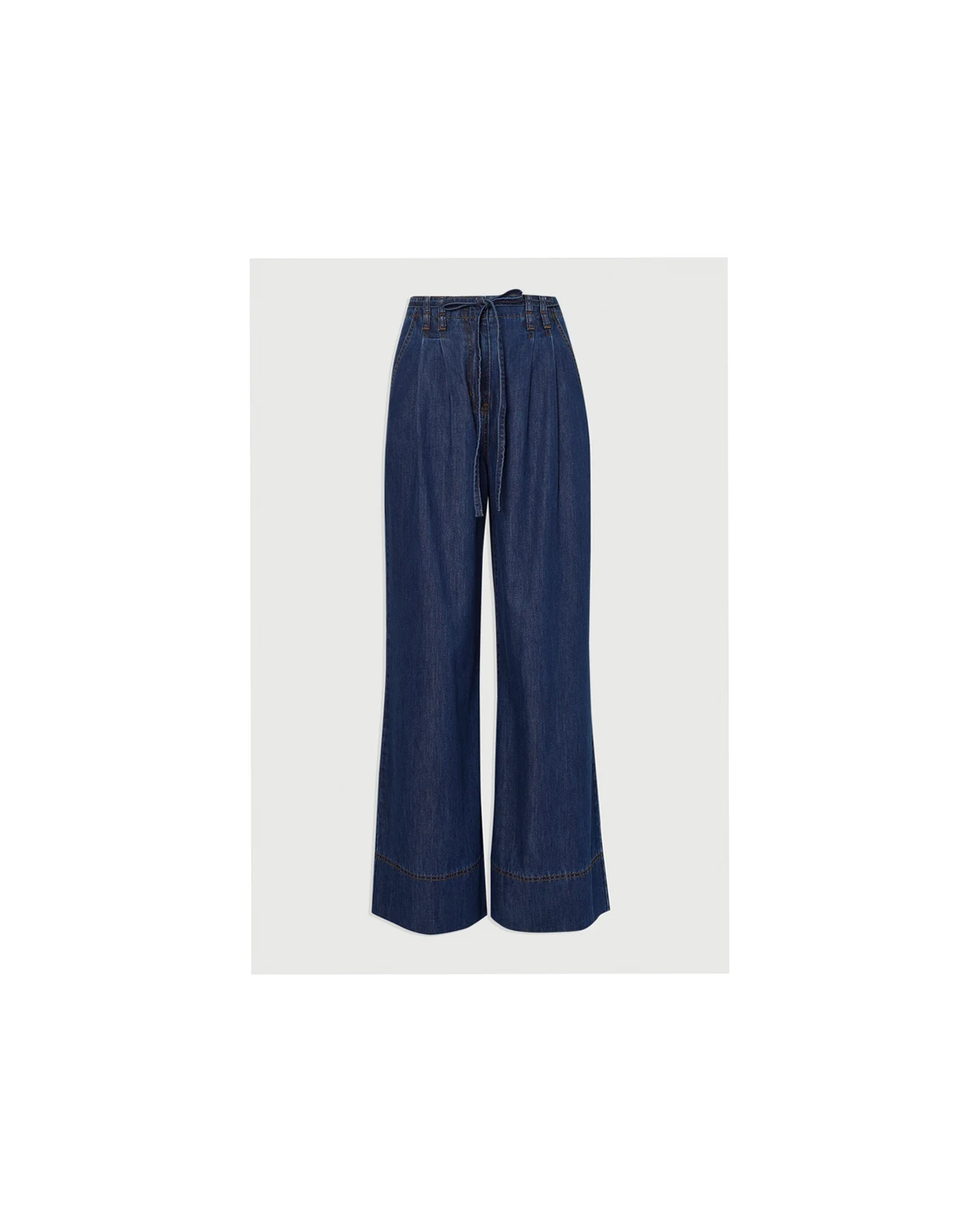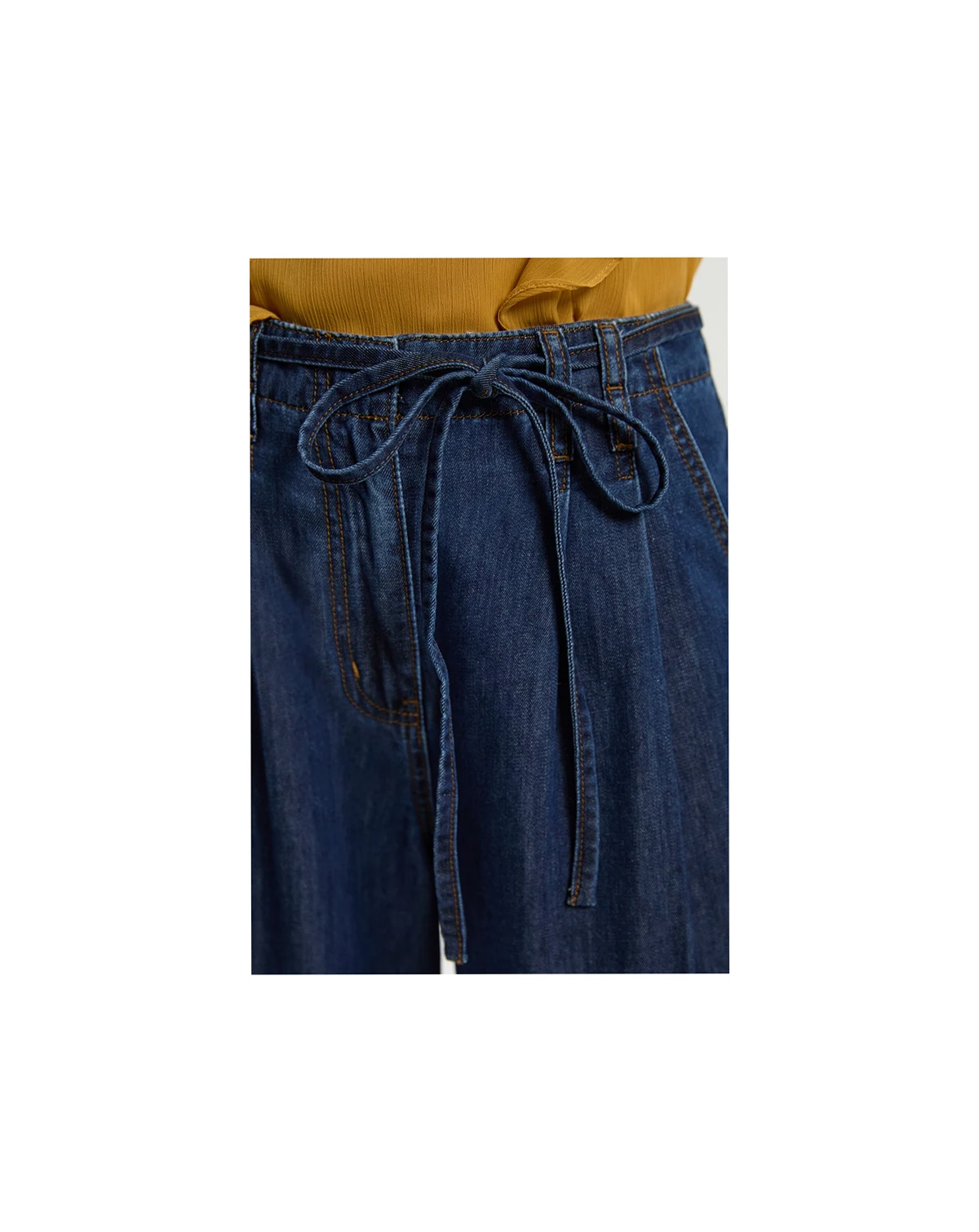 Wide leg silhouette with tailored pleating for a flattering shape. Tie waist detail offering adjustable comfort and a feminine touch. Practical side pockets for everyday functionality. Distinctive wide hem detailing for a contemporary finish. Cotton fabric providing breathable comfort for all-day wear. These karen millen denim wide leg trousers combine relaxed comfort with tailored sophistication.
