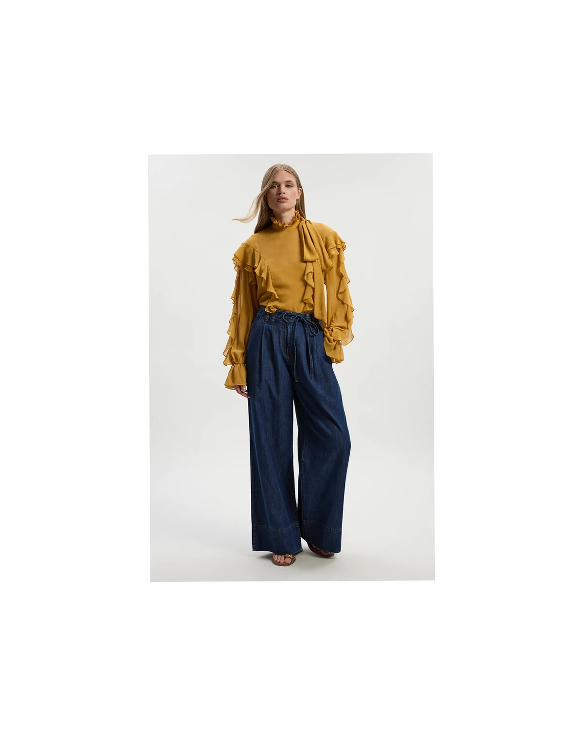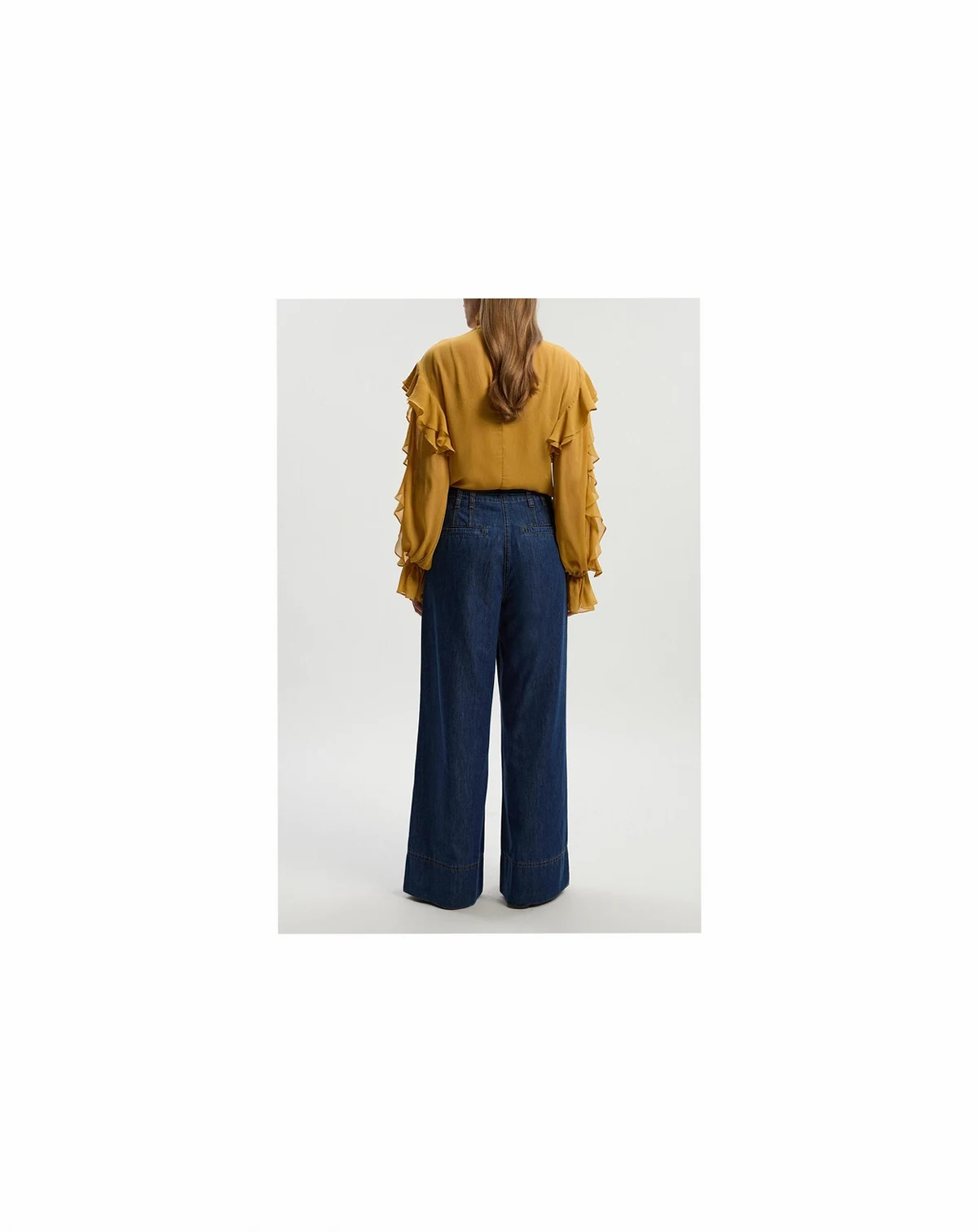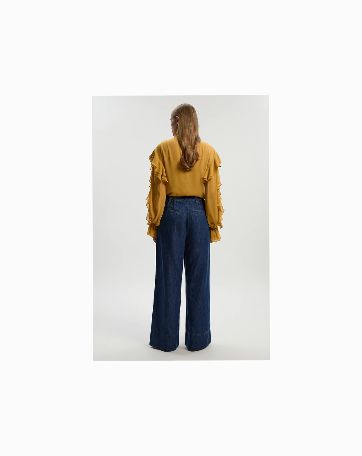 Wide leg silhouette with tailored pleating for a flattering shape. Tie waist detail offering adjustable comfort and a feminine touch. Practical side pockets for everyday functionality. Distinctive wide hem detailing for a contemporary finish. Cotton fabric providing breathable comfort for all-day wear. These karen millen denim wide leg trousers combine relaxed comfort with tailored sophistication.