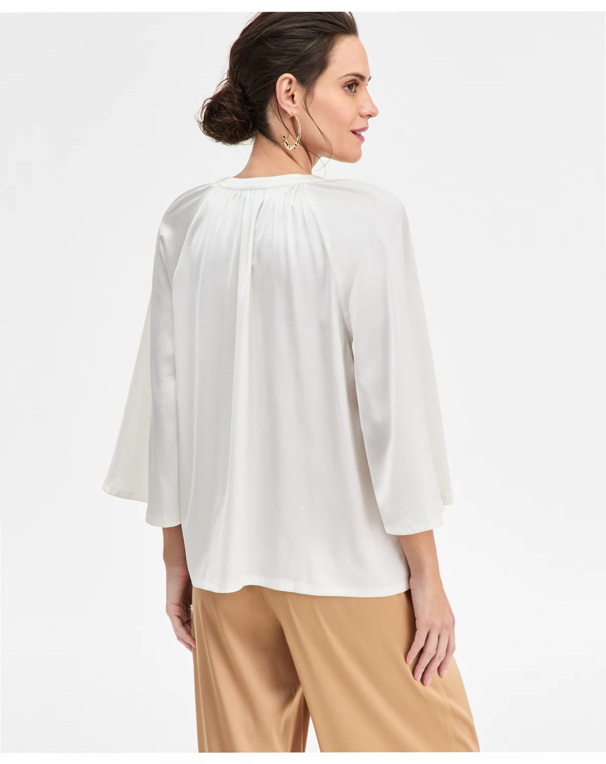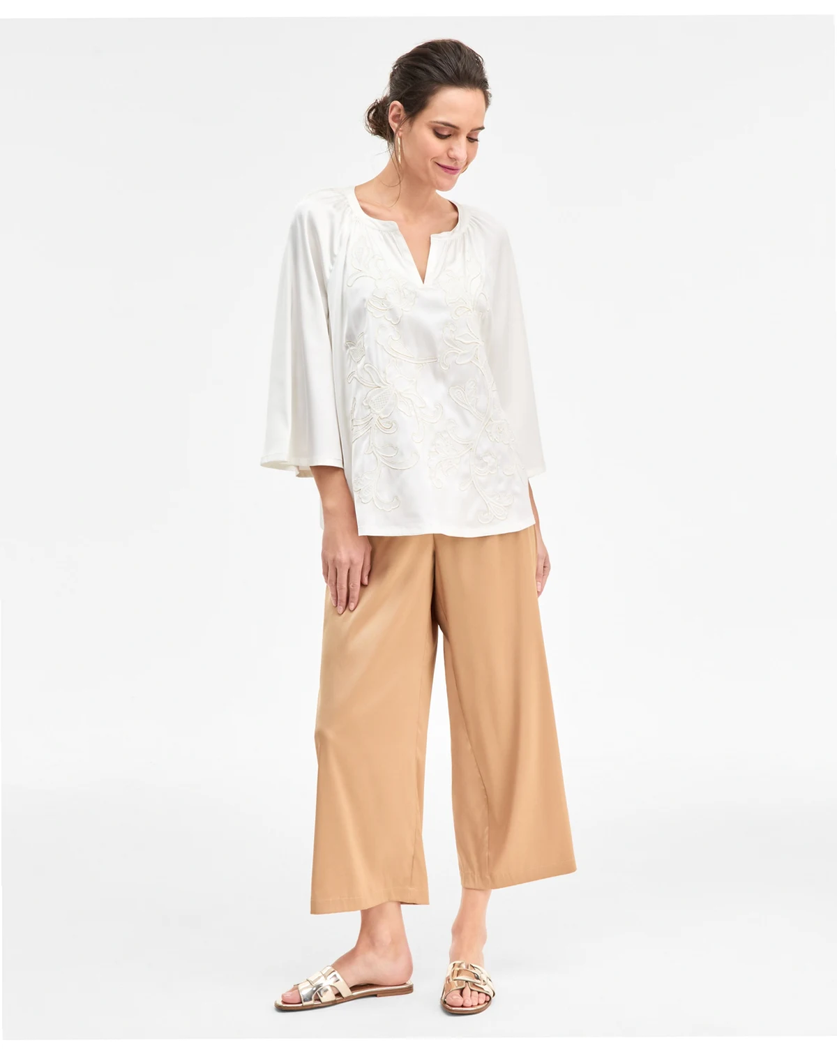 Add instant elegance to your look with this JM Collection top, framed in fluid 3/4-sleeves and detailed with understated tonal embroidery.