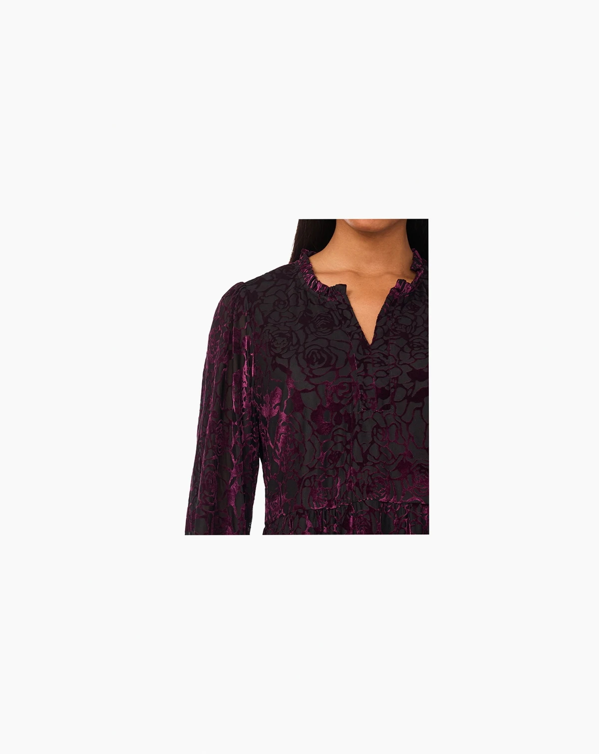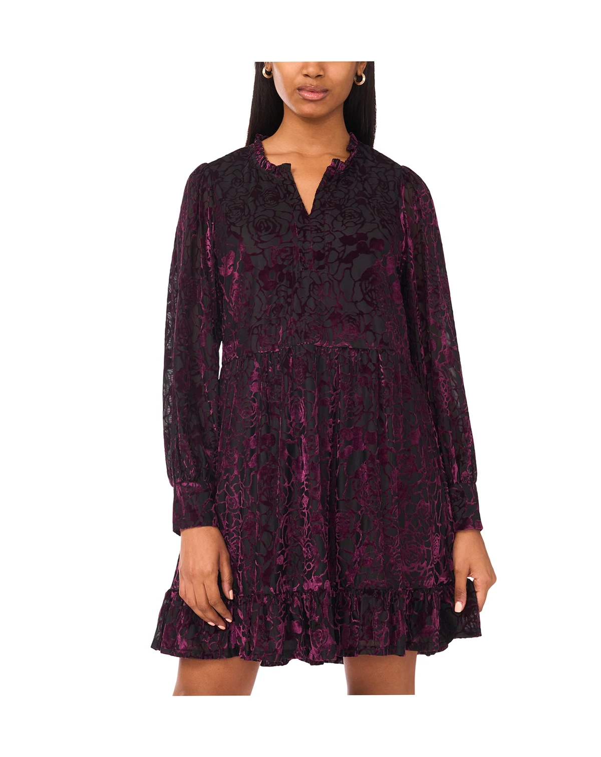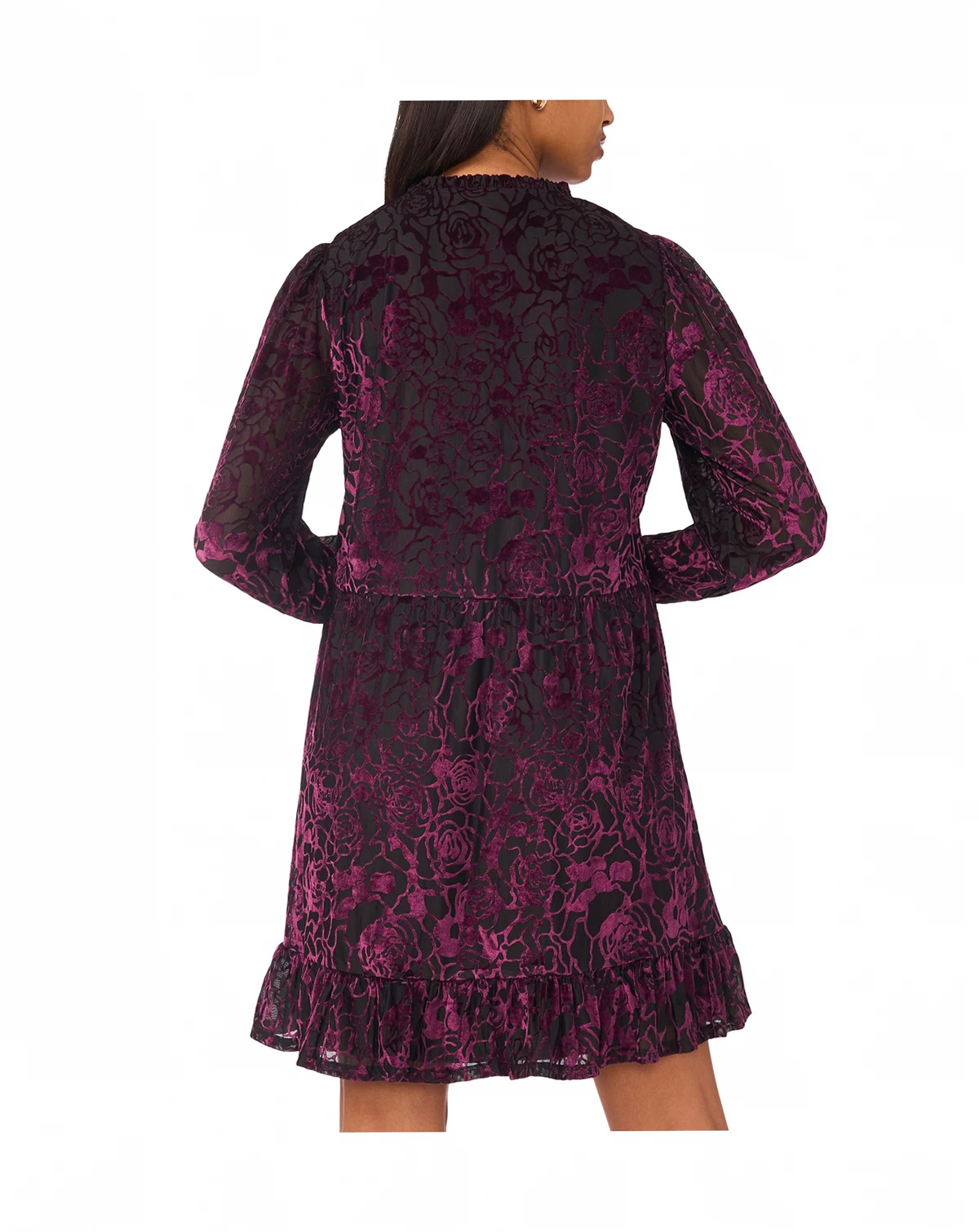 Timeless and chic, this MSK babydoll dress is designed with a graceful split neckline and an easy pullover closure. Crafted from smooth, soft velvet, it offers an elegant touch, making it suitable for celebrations such as baby and bridal showers, or engagement parties.