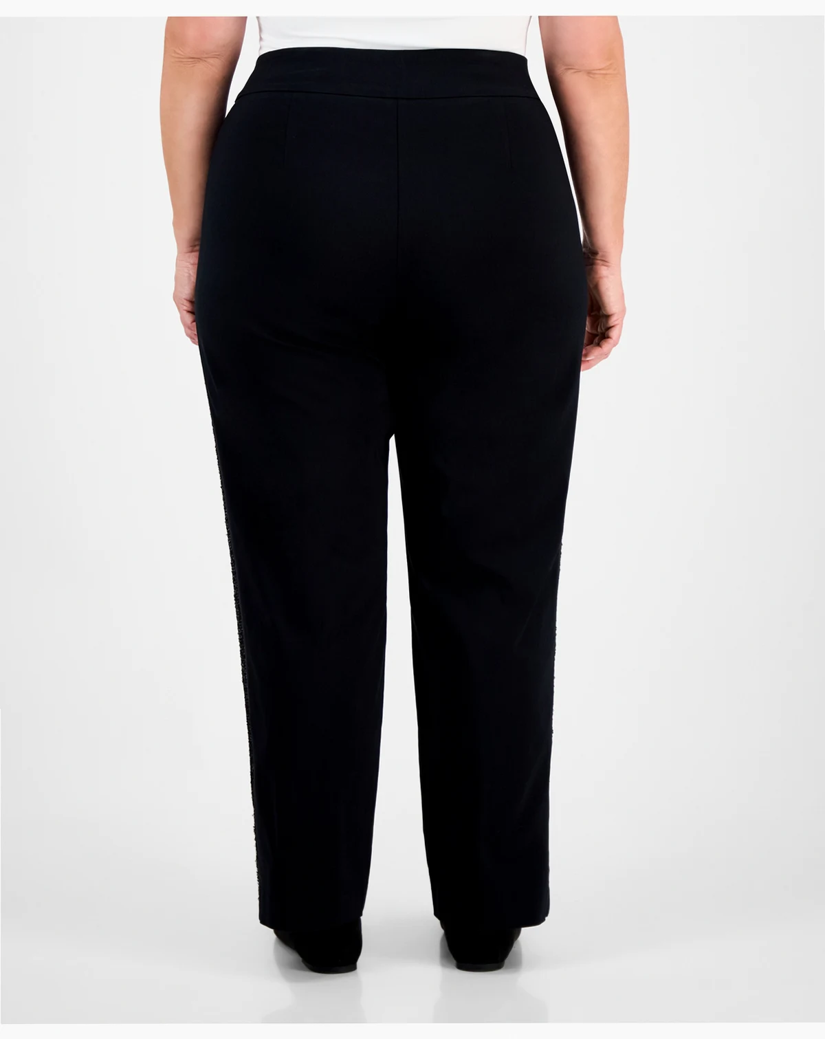 Step into the light with a confidence sparkle thanks to these side sequin, plus size pants by JM Collection, designed to hold a little magic in every stride.