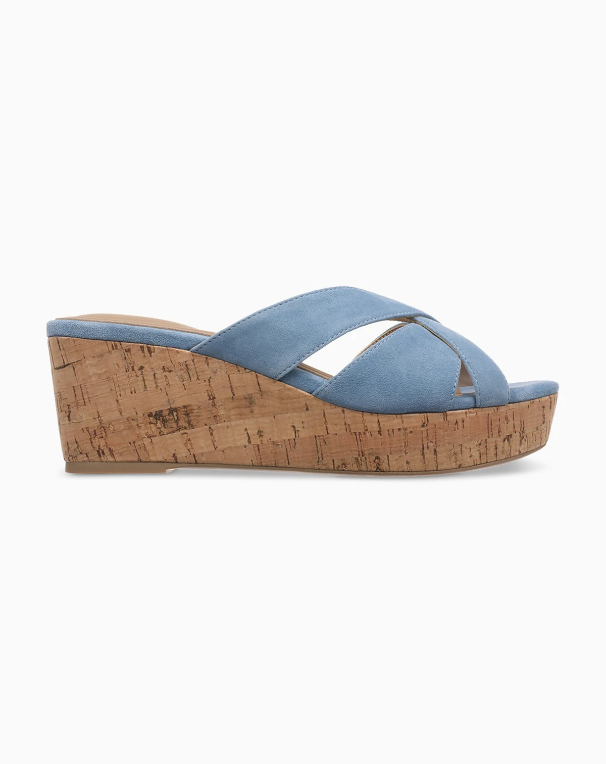 Lofted on cork-like platform heels, the crisscross design and easy slip-on style of the Juliaa sandals from Giani Bernini elevate a fresh warm-weather look.