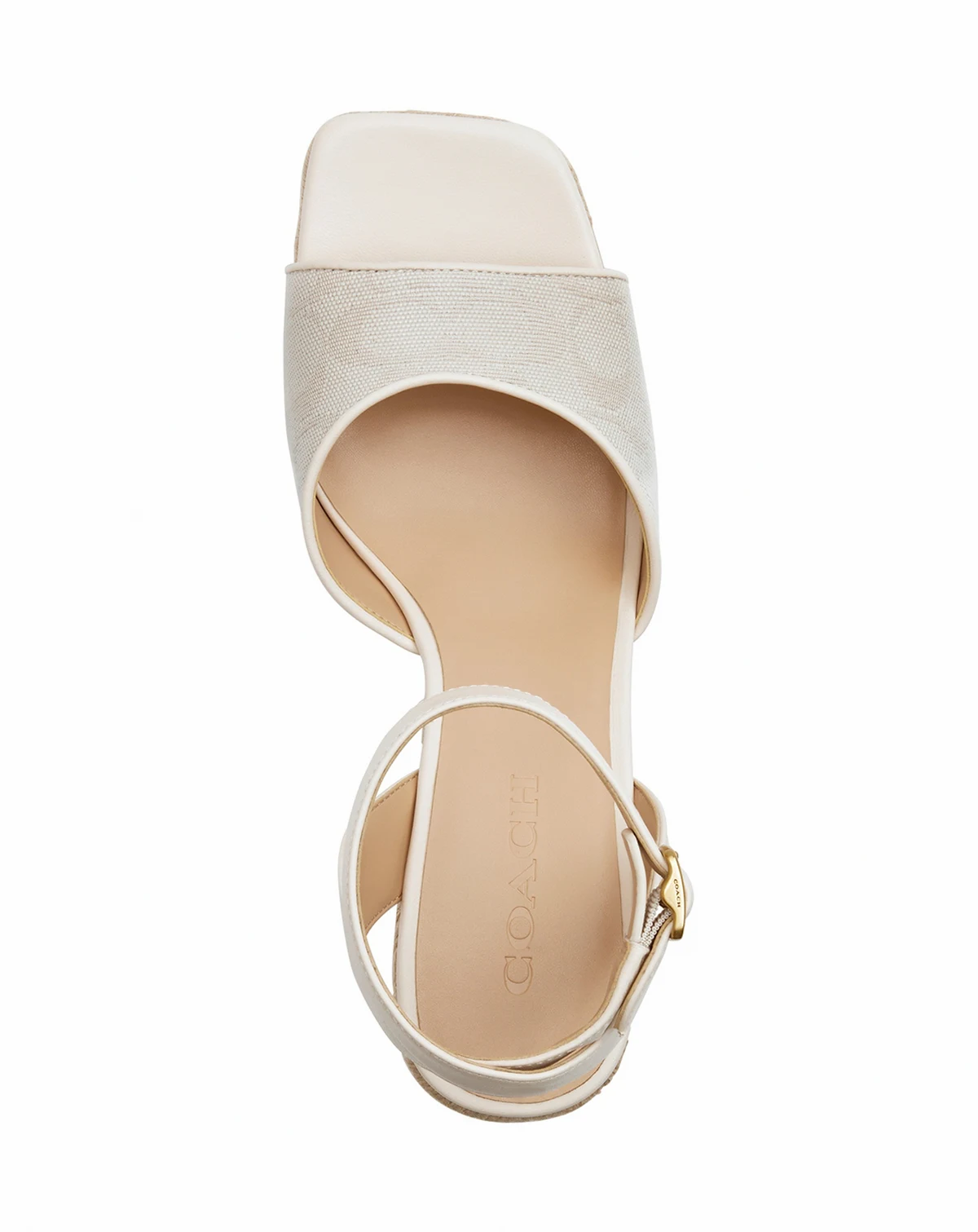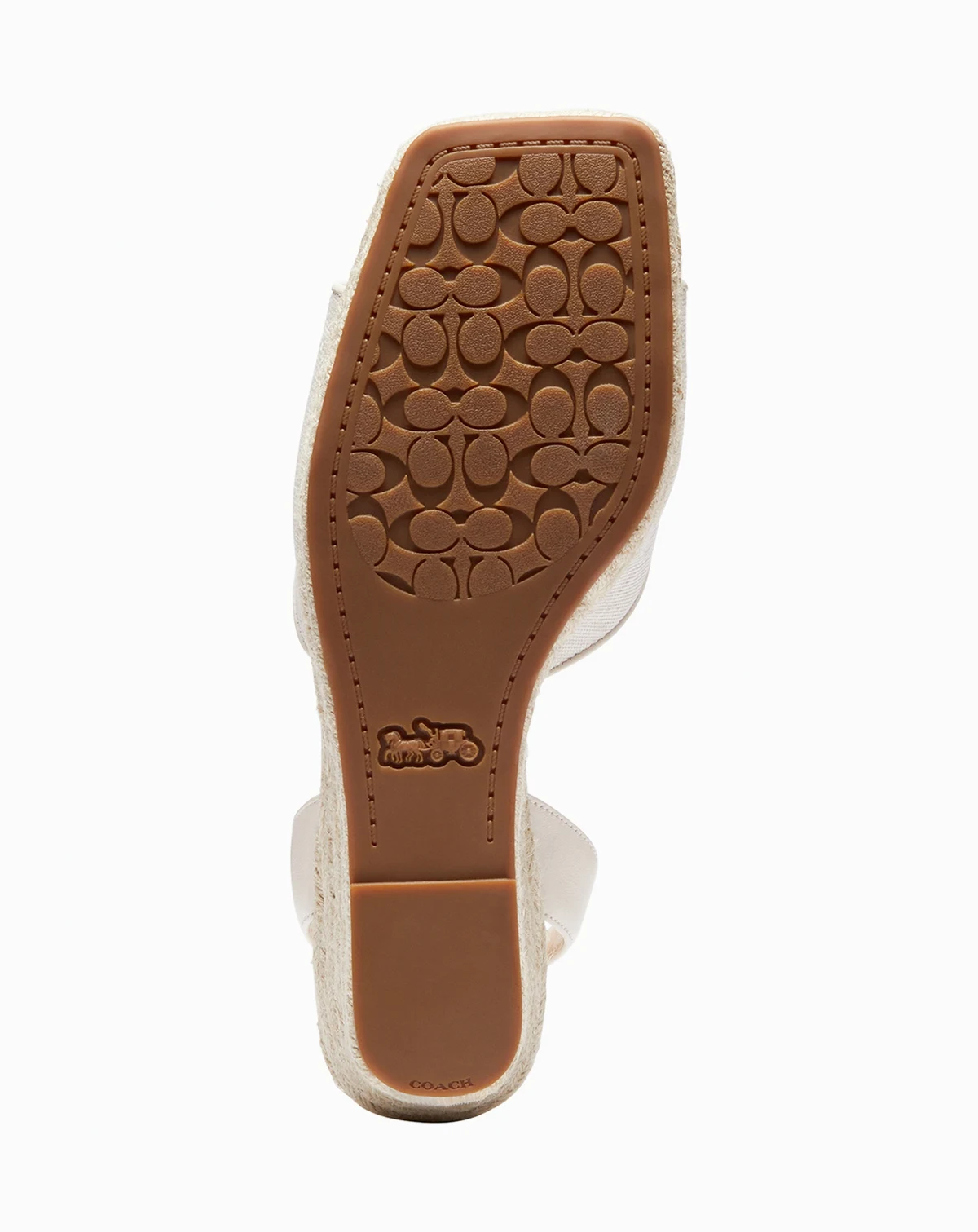 COACH takes a retro-inspired platform to breezy heights on espadrille wedges and a sturdy ankle-strap profile in the Signature C sandals.