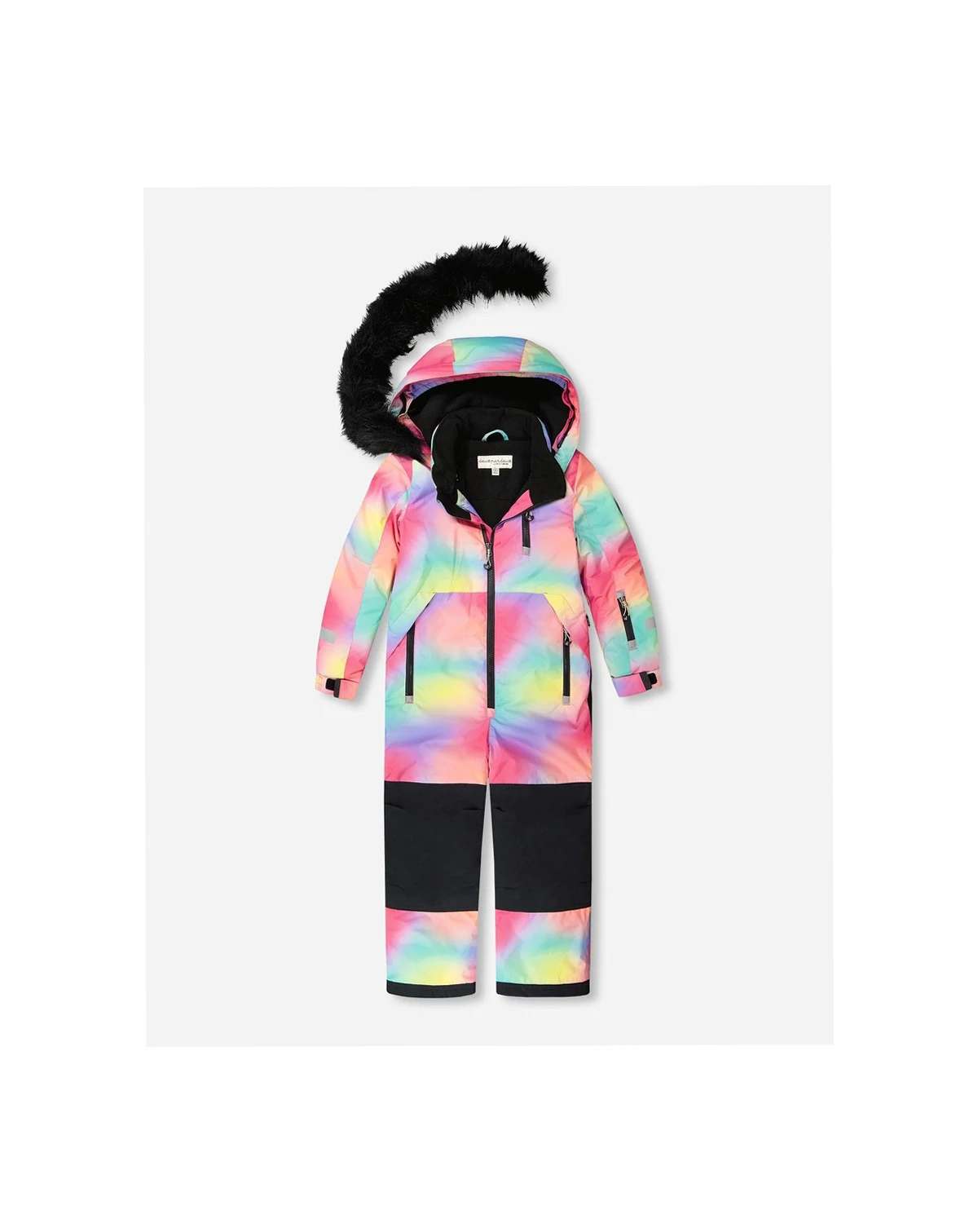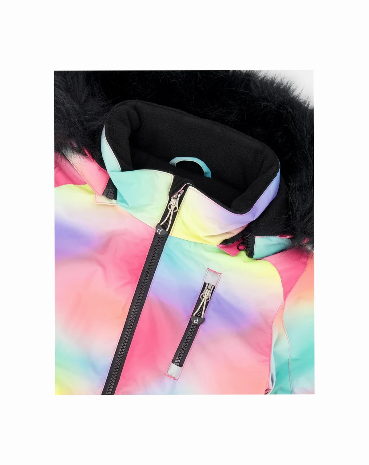 Every moment on the mountain is warmer and drier with our one-piece PLAY ski suit in multicolor. Designed for maximum comfort and improved performance, this snowsuit features articulated knees and sleeves, adjustable hems and sleeves to accommodate growing kids, a detachable hood, and Cordura-reinforced panels for long-lasting durability. Elastic cuffs, snow guards, a wind flap, and a chin guard keep the elements out, while a waterproof coating and dirt-repellent finish keep little skiers and snowboarders clean and dry.