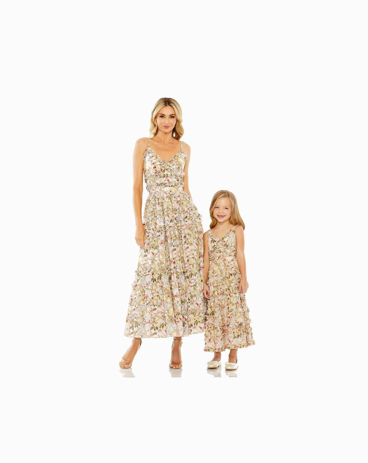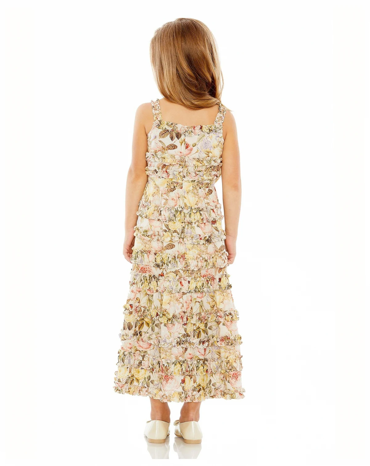 Big Girls Floral Print Ruffle Tiered Midi Dress