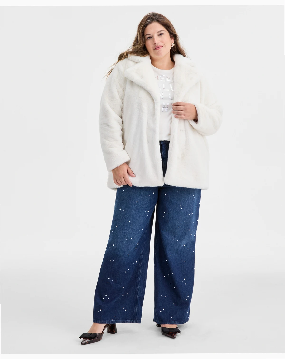 Luxuriously soft faux fur instantly dresses up this plus size coat from On 34th, making the notched collar design a perfect choice whenever you need to elevate an outfit. ABOUT THE BRAND: Our brand was designed for, and with women like you. Made for your body, your style, and your truth. As your wardrobe's best friend, these mix-and-match pieces work with everything in your closet.