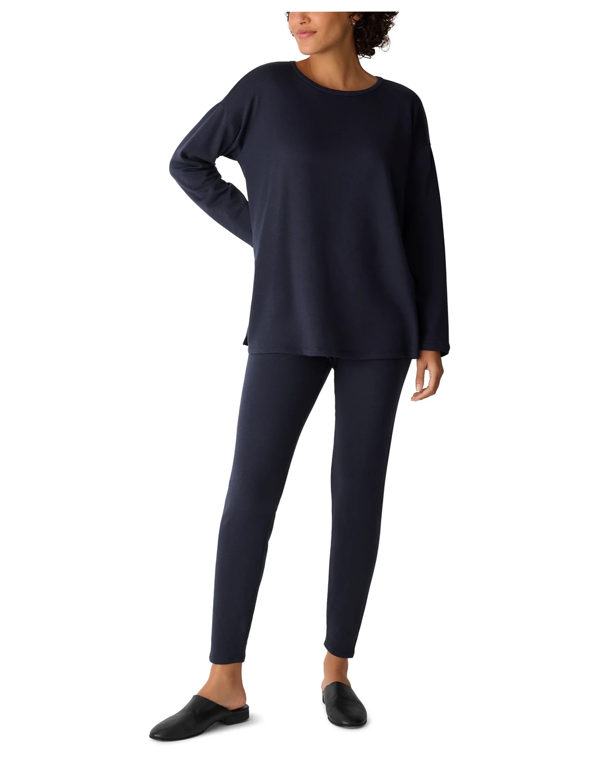 Achieve a smooth, comfortable fit in these Eileen Fisher ankle leggings, featuring a high-waisted design and a brushed interior for a cozy feel. The snug silhouette offers versatile wear for everyday outfits.